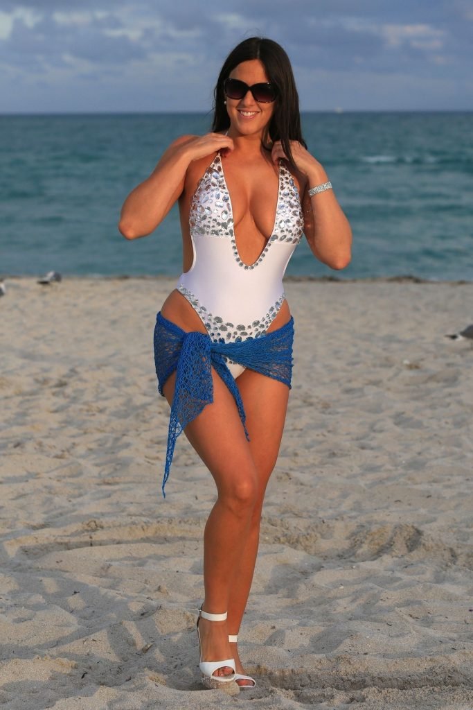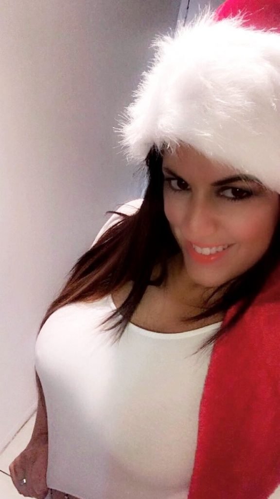 Modèle italienne et star de la télé-réalité française Claudia Romani, 35 ans, est vue portant un maillot de bain et un long bonnet de Père Noël à Miami, le 17/12/2017.