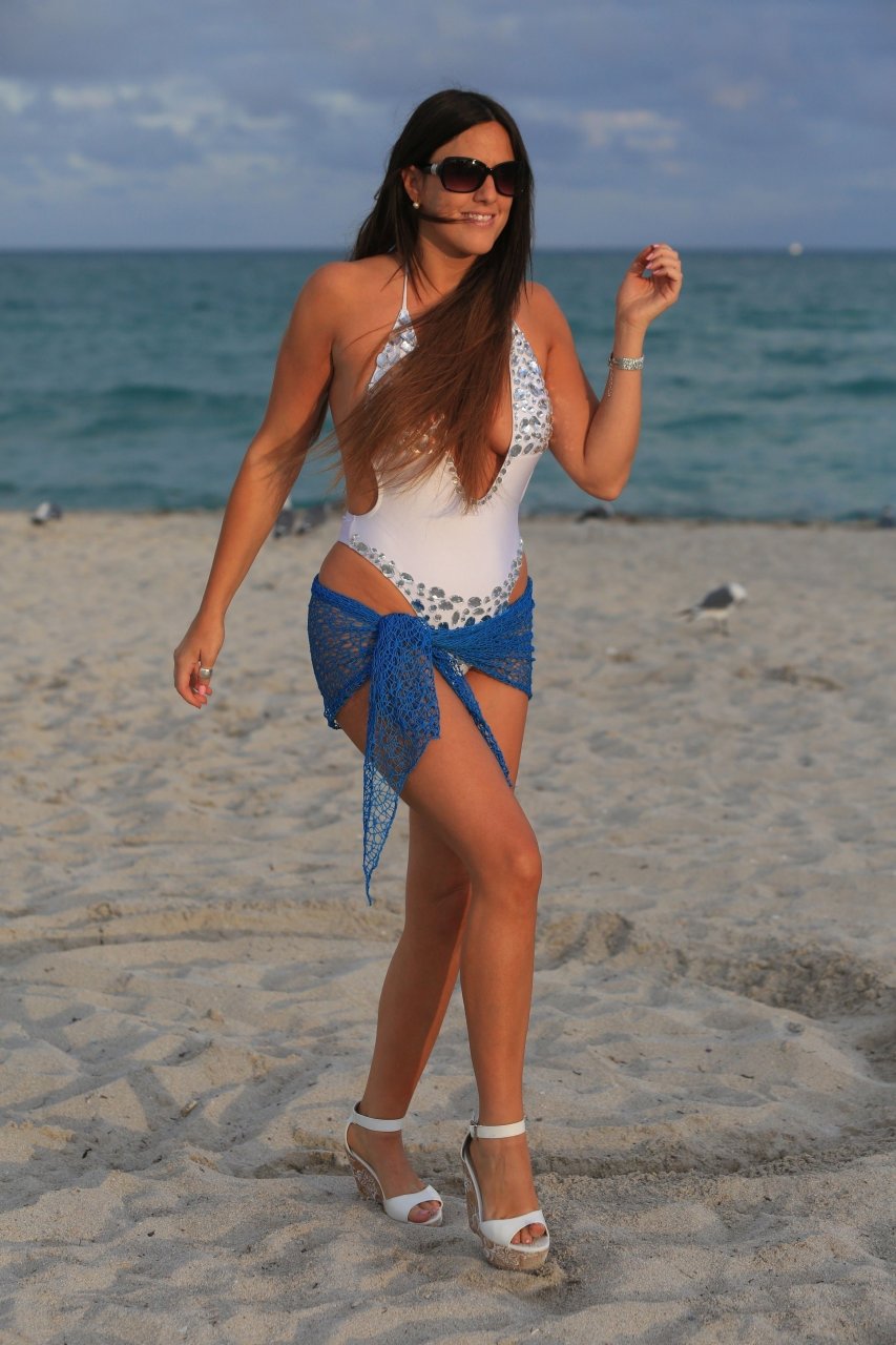 Modèle italienne et star de la télé-réalité française Claudia Romani, 35 ans, est vue portant un maillot de bain et un long bonnet de Père Noël à Miami, le 17/12/2017.
