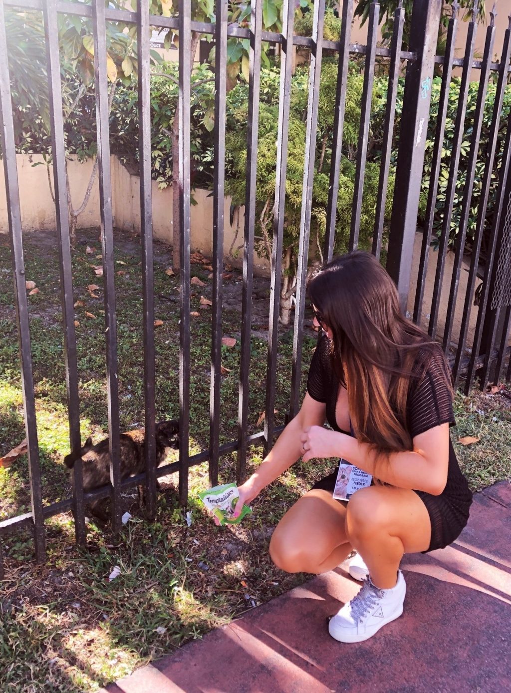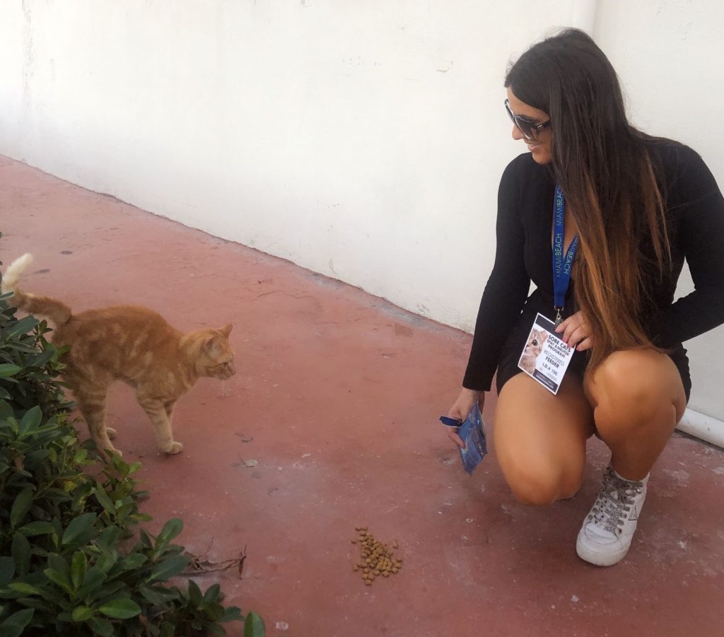 Le mannequin portait une petite robe noire et des talons tueurs. La star de la télé-réalité a ensuite été aperçue en train de faire ce qu’elle fait tous les jours, nourrir les colonies de chats de Miami Beach, affichant fièrement son badge de nourrisseuse enregistrée !