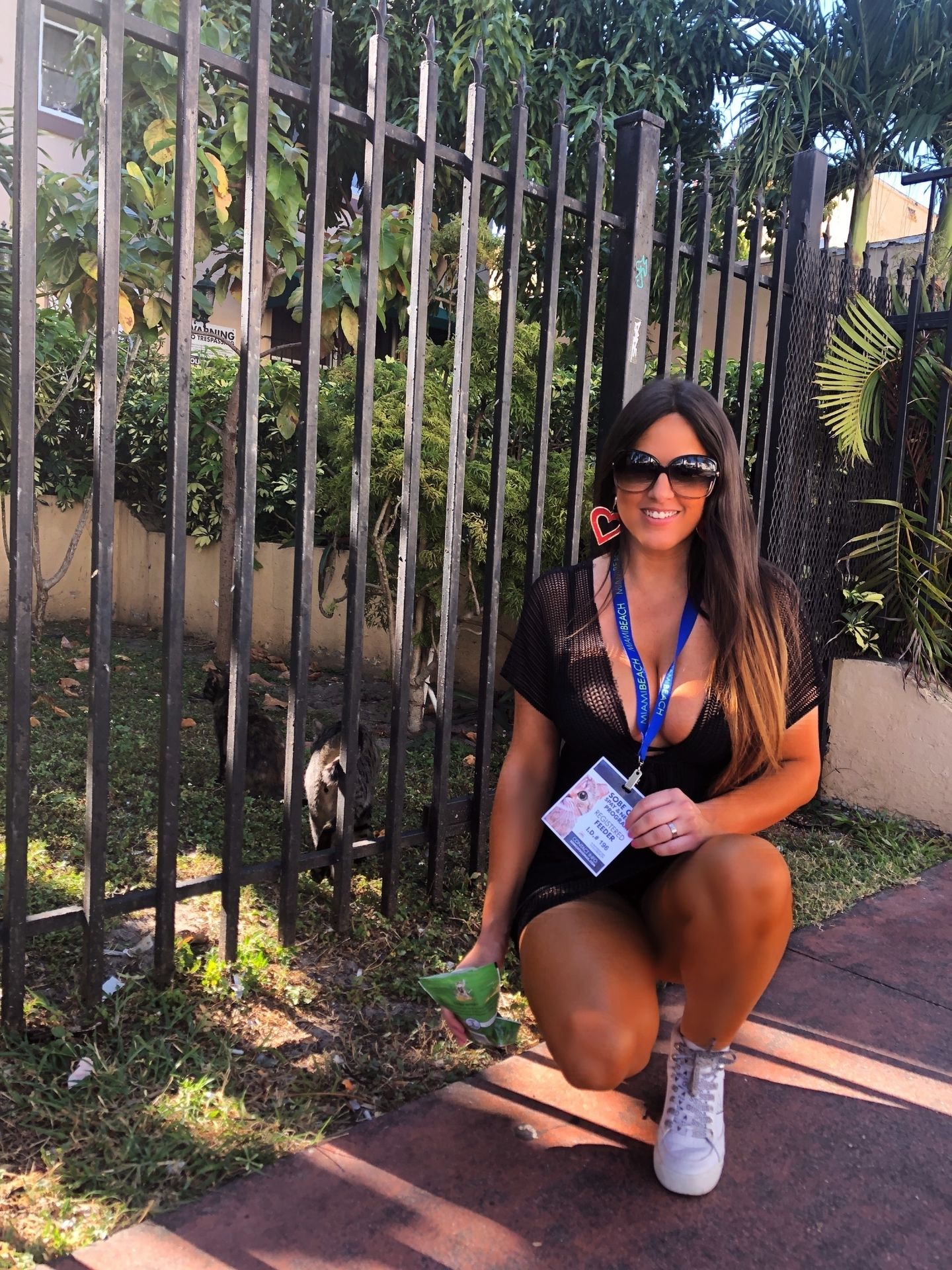 Le mannequin portait une petite robe noire et des talons tueurs. La star de la télé-réalité a ensuite été aperçue en train de faire ce qu’elle fait tous les jours, nourrir les colonies de chats de Miami Beach, affichant fièrement son badge de nourrisseuse enregistrée !