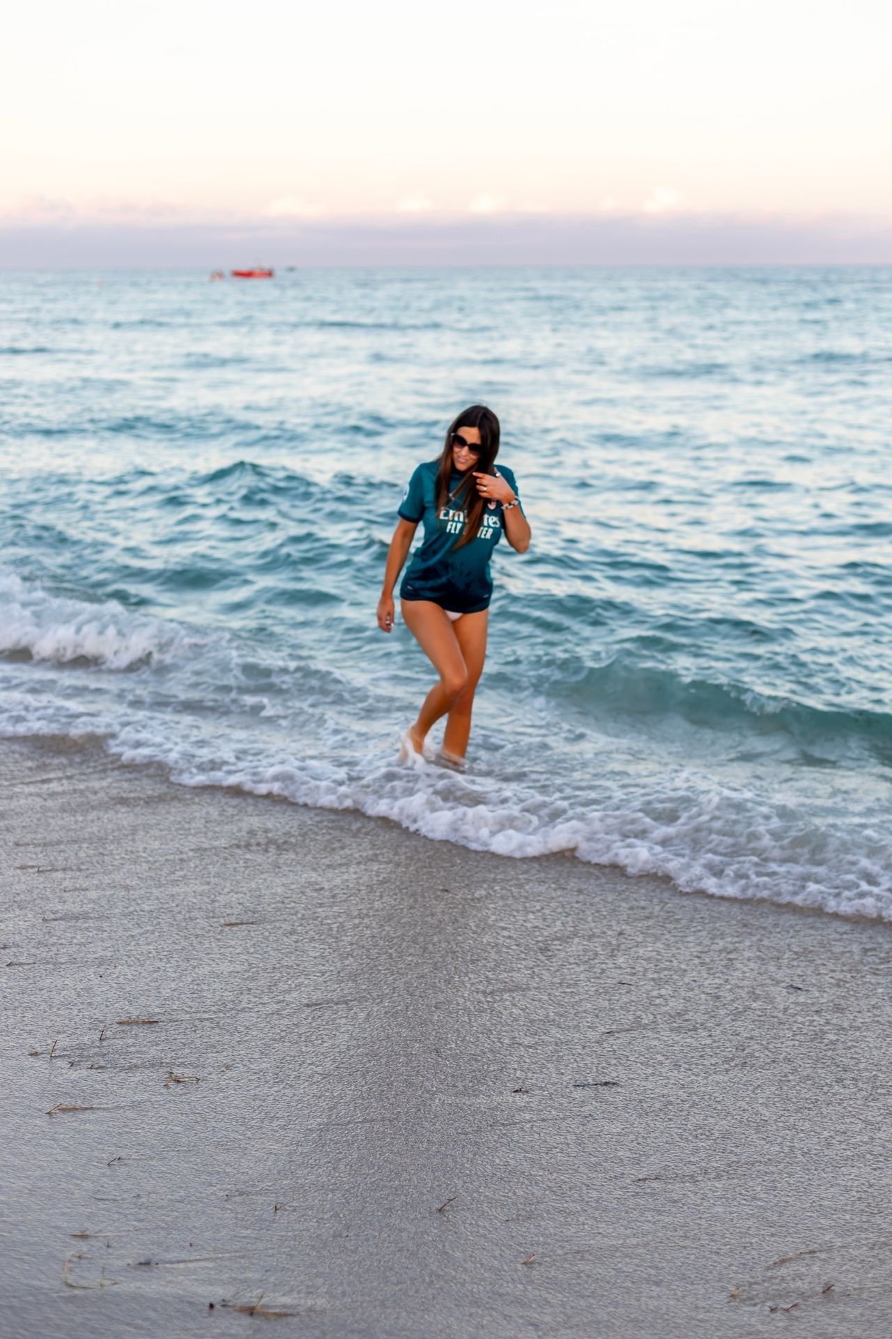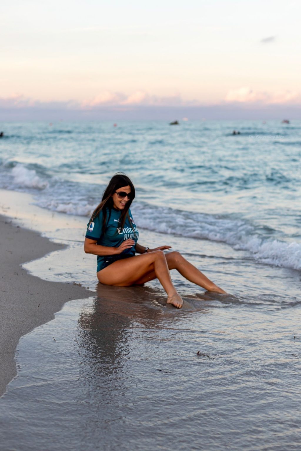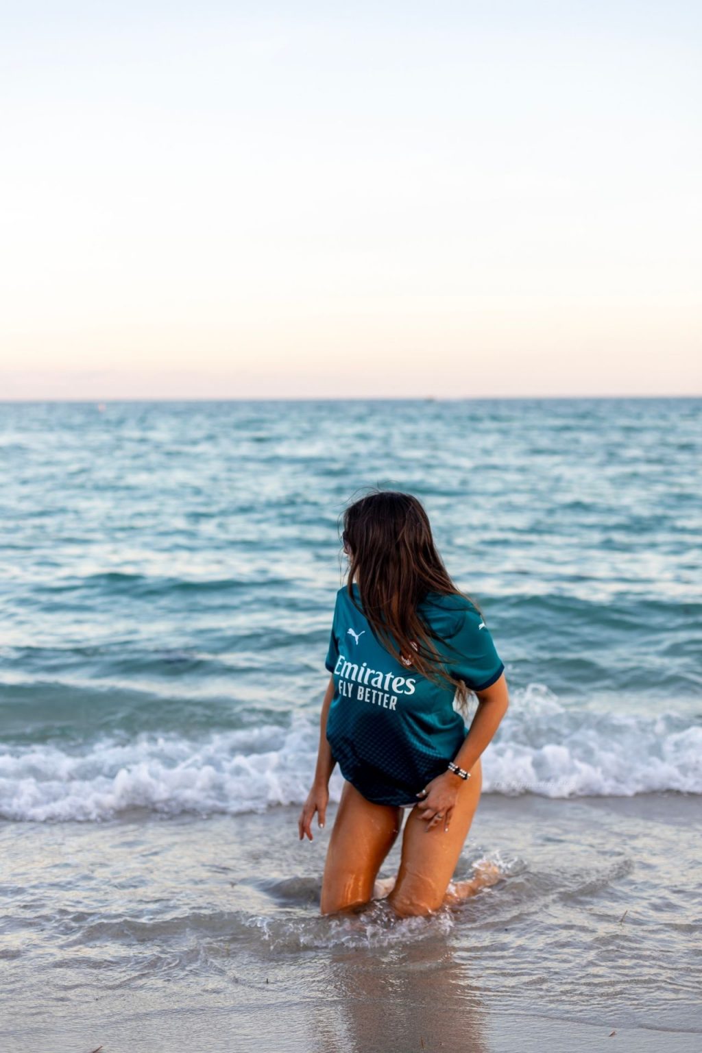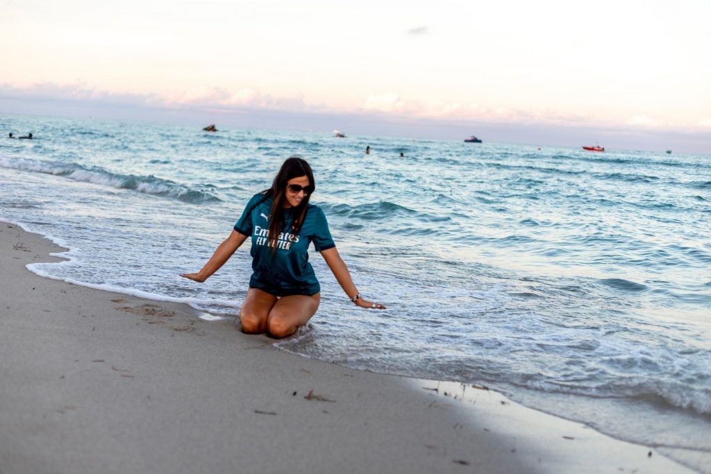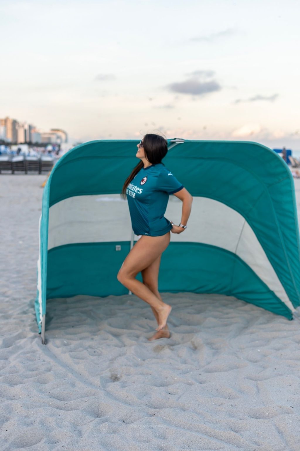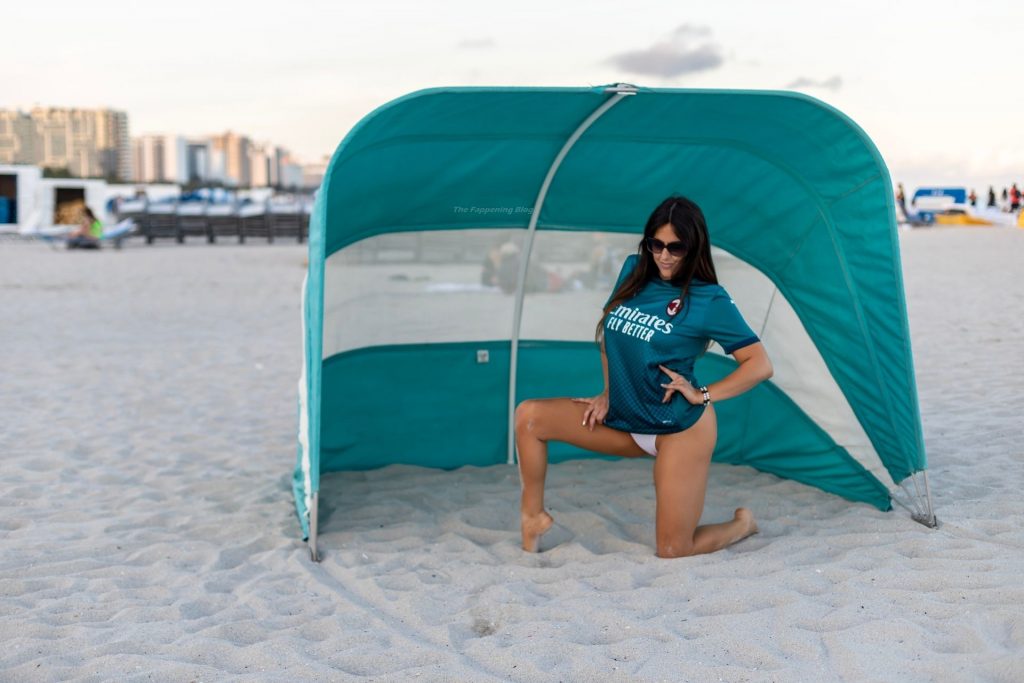 Le mannequin international et personnalité télé Claudia Romani est vue à South Beach portant son troisième maillot bien-aimé de l’AC Milan, ainsi qu’un petit string blanc. La fan de football et arbitre célébrait la grande saison que l’AC Milan est en train de vivre.