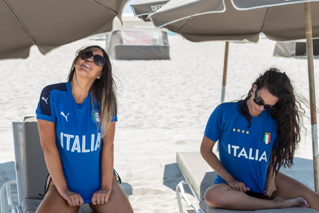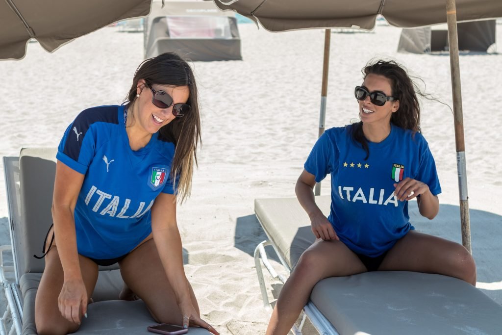 Le mannequin italien et star de la télé-réalité Claudia Romani et le mannequin de couverture italienne de Playboy Tania Marie Caringi se détendaient à la plage. Les mannequins montraient leurs courbes à tout le monde tout en traînant et en s’amusant.