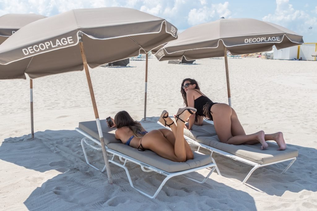 Claudia Romani et Tania Marie Caringi sont vues en train de se reposer à South Beach, 22/07/2018.