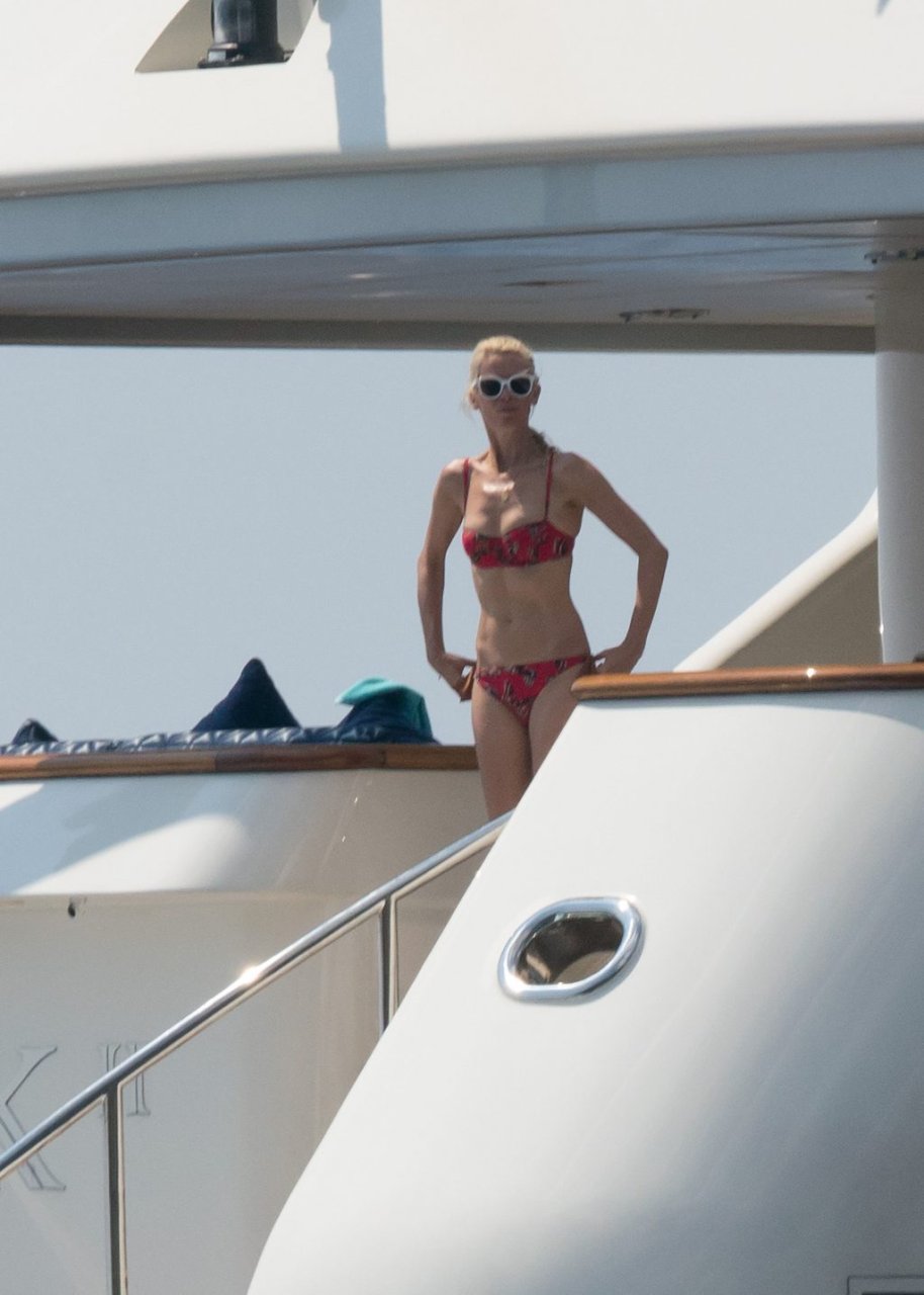 Claudia Schiffer (47 ans), l’un des top models originaux, profite de vacances avec ses enfants et ses amis sur la pittoresque Riviera italienne (Portovenere). Notamment absent, son mari, le réalisateur de “X-men” Matthew Vaughn.