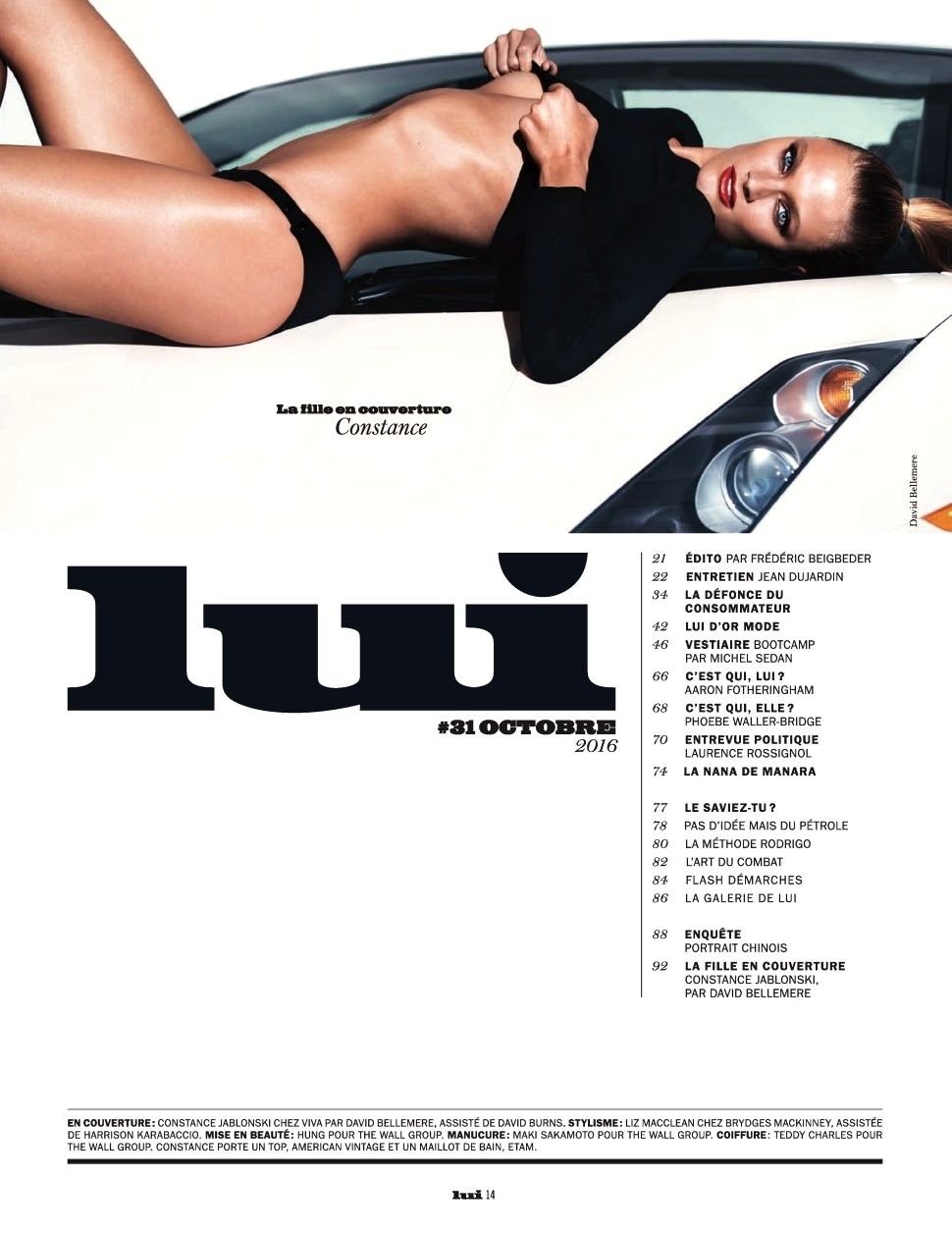 Nouvelles photos topless de Constance Jablonski par David Bellemere dans le magazine Lui #31 (octobre 2016). Qualité française ! Constance Jablonski est un mannequin français. Âge : 25 ans (17 avril 1991).