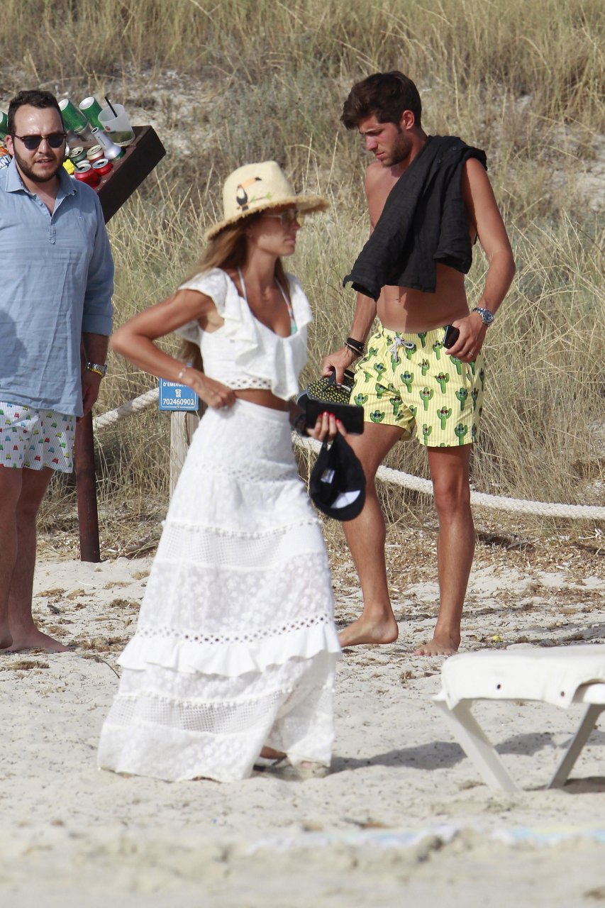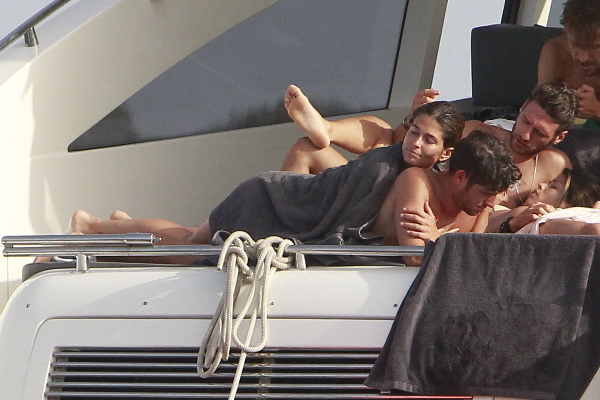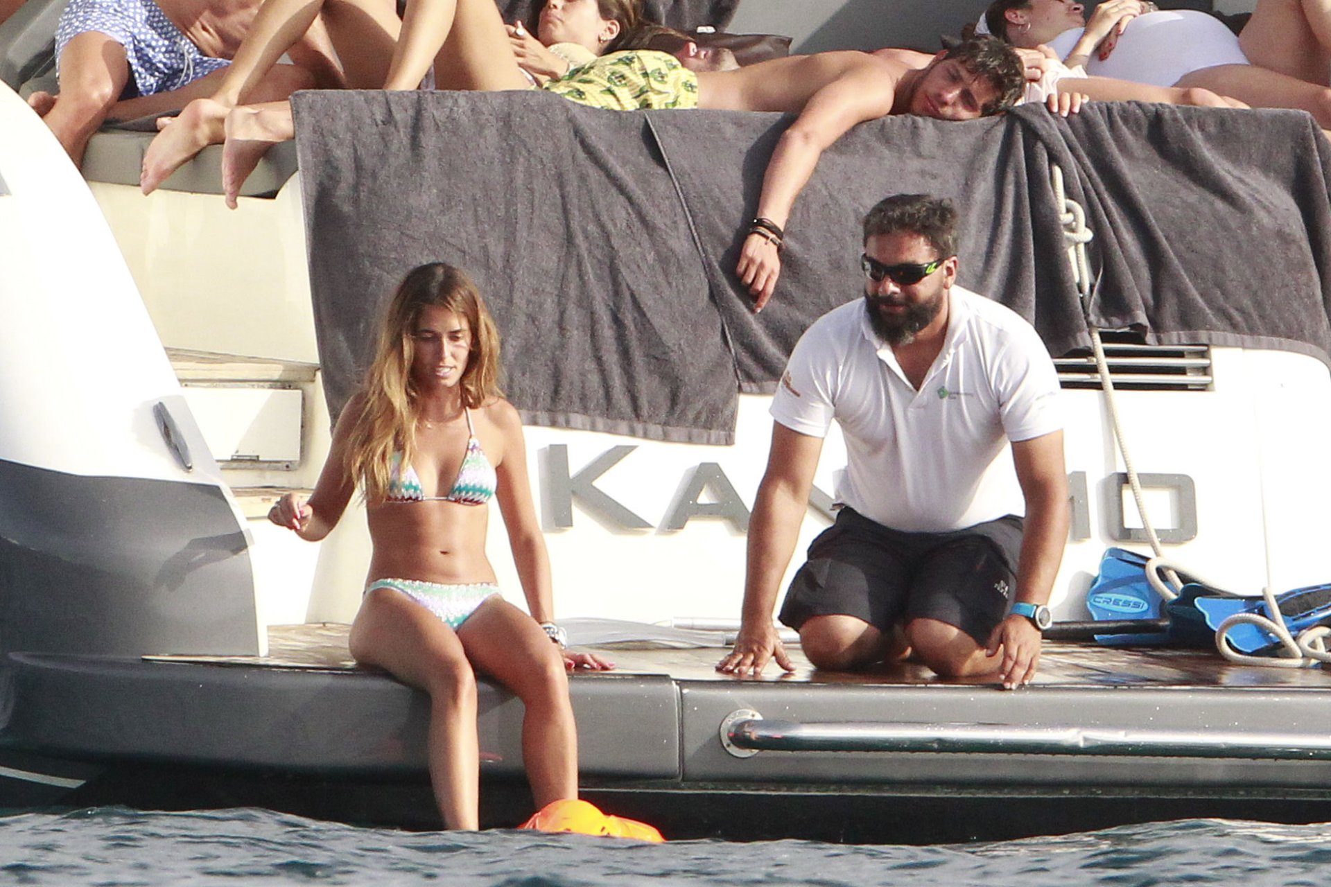 Le joueur de football du FC Barcelone Sergi Roberto et sa partenaire Coral Simanovich profitent d’une journée plage et yacht à Formentera, en Espagne, le 07/03/2018.