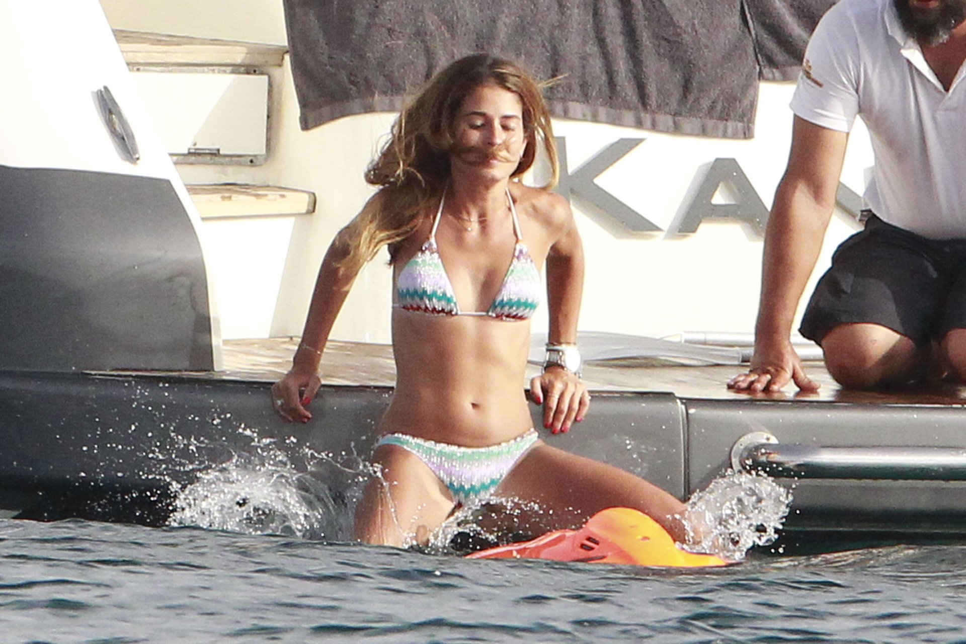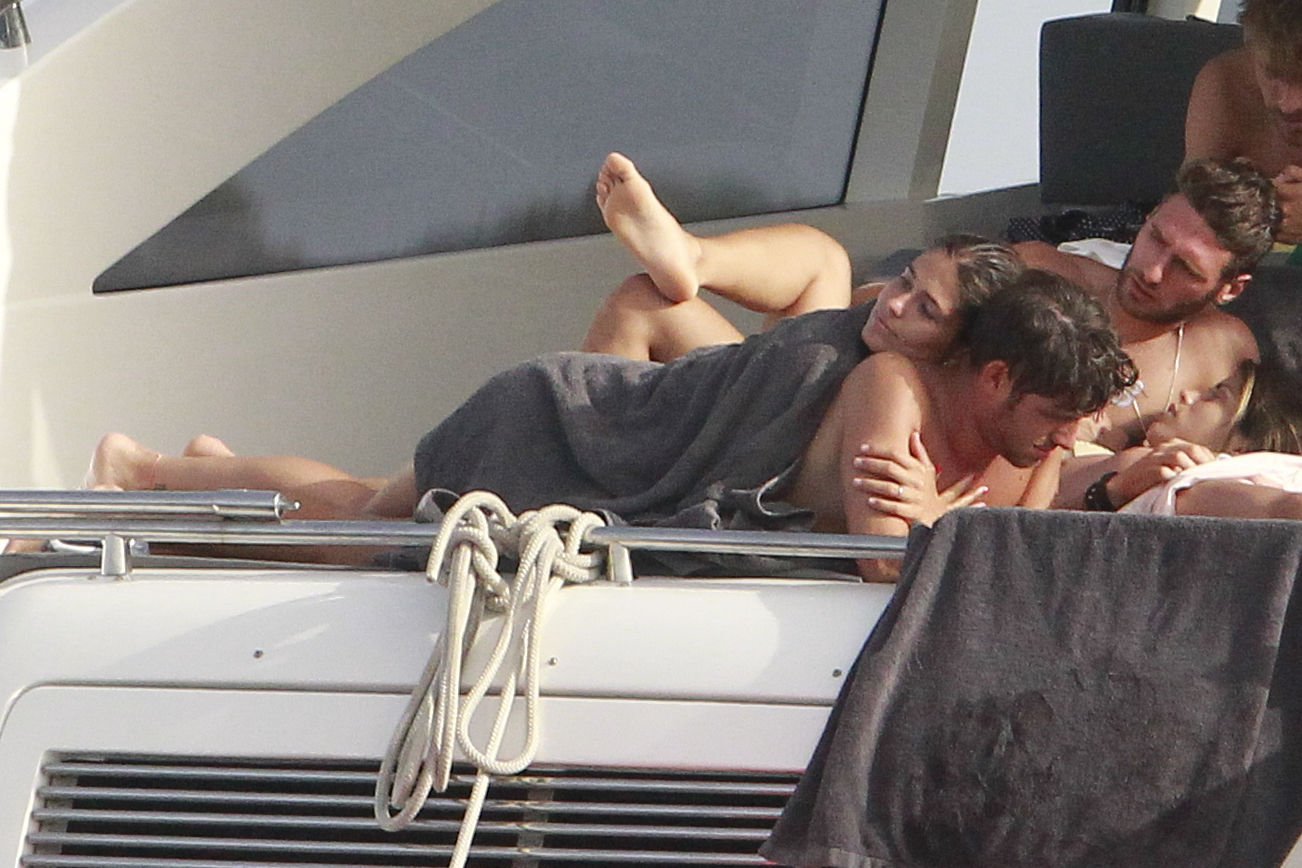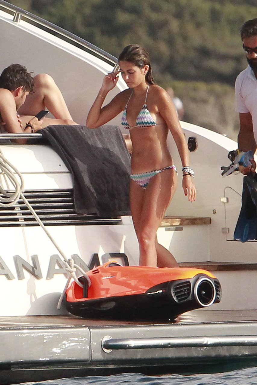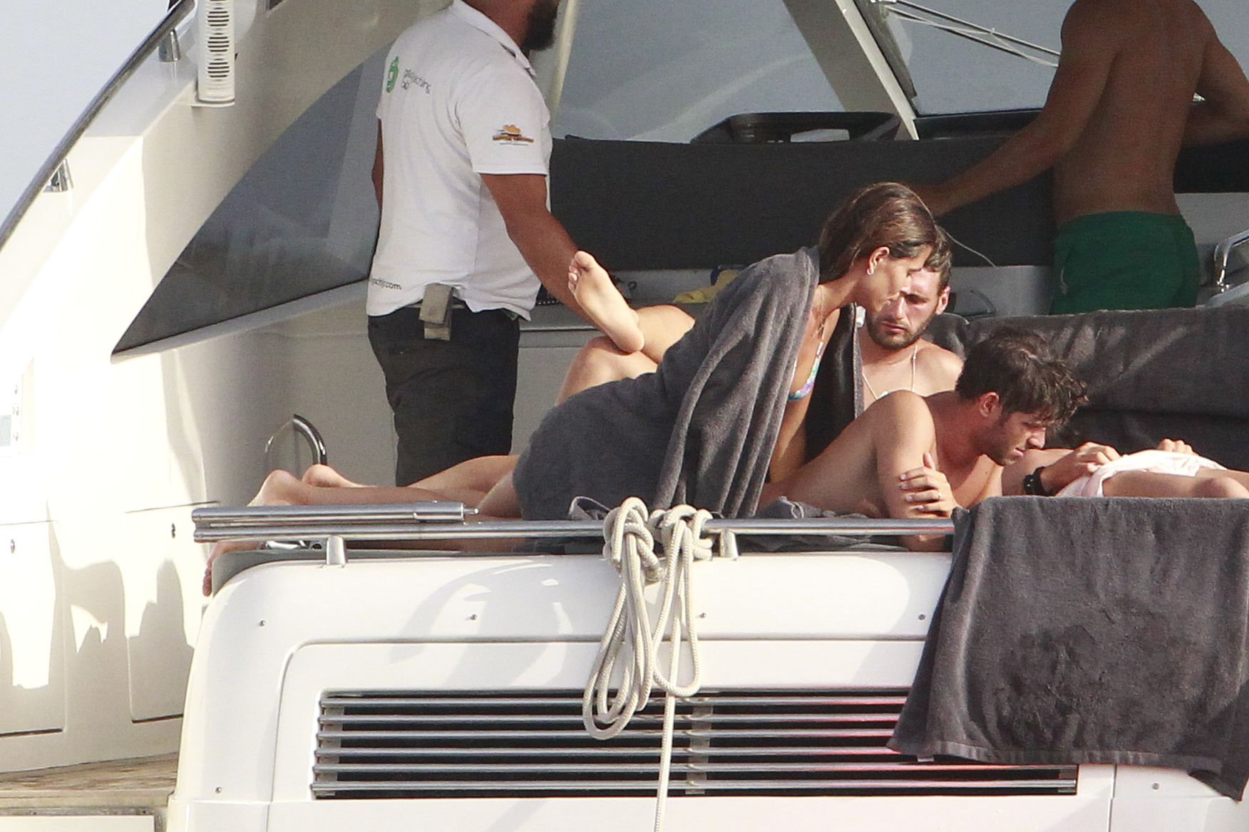 Le joueur de football du FC Barcelone Sergi Roberto et sa partenaire Coral Simanovich profitent d’une journée plage et yacht à Formentera, en Espagne, le 07/03/2018.