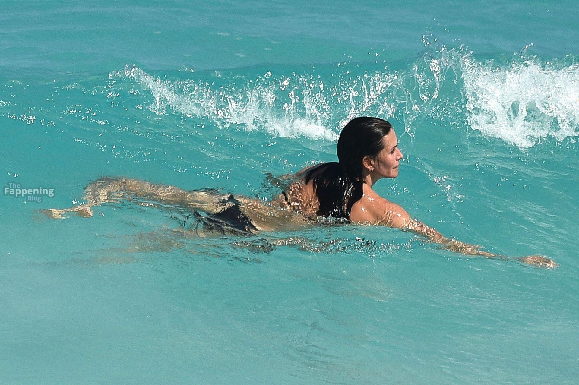 Courteney Cox a été aperçue en train de s’amuser sur une plage des Bahamas. Courteney, toujours aussi en forme, portait un bikini, mettant en valeur sa silhouette tonique.