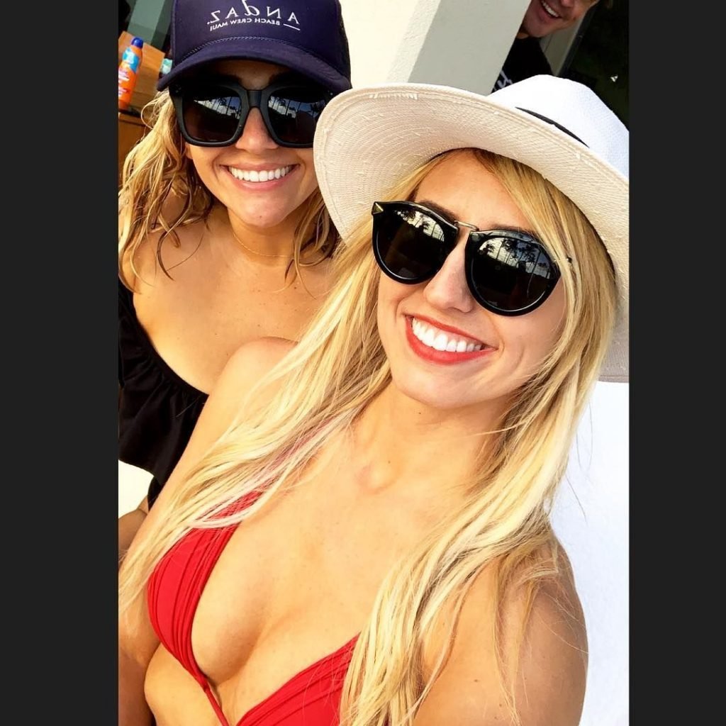 La pilote de dragster Courtney Force (30 ans) réchauffe la piscine en bikini rouge lors de ses vacances avec des amis à Hawaï, 28/11/2018.