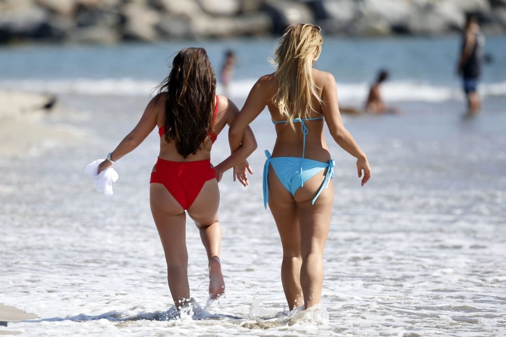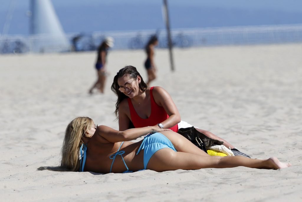 Courtney Green et Chloe Meadows vues sur une plage à Los Angeles, 03/07/2017.