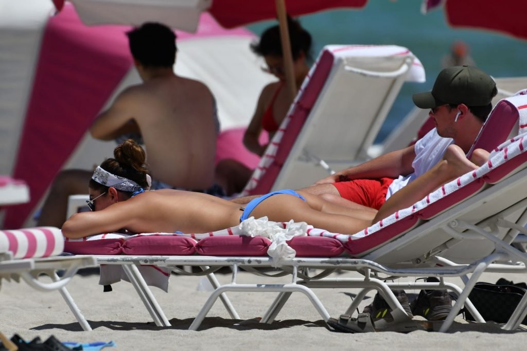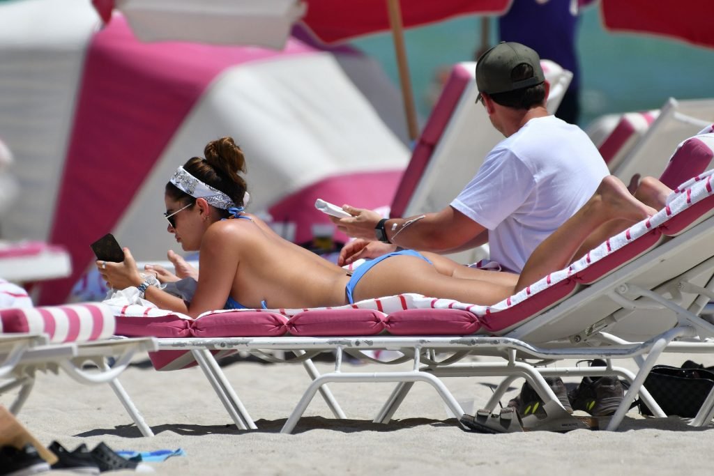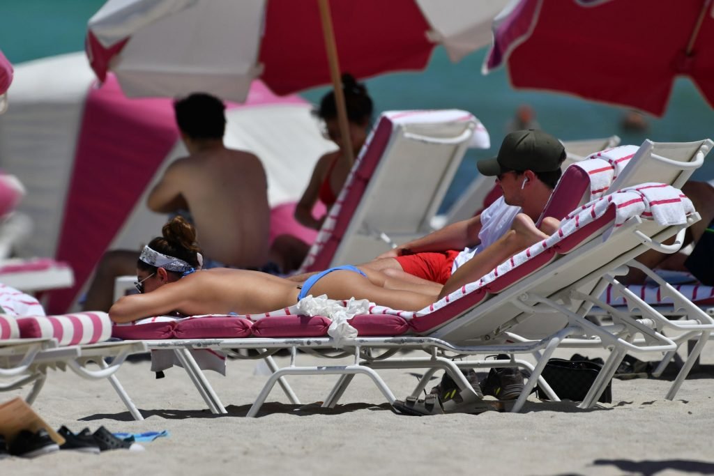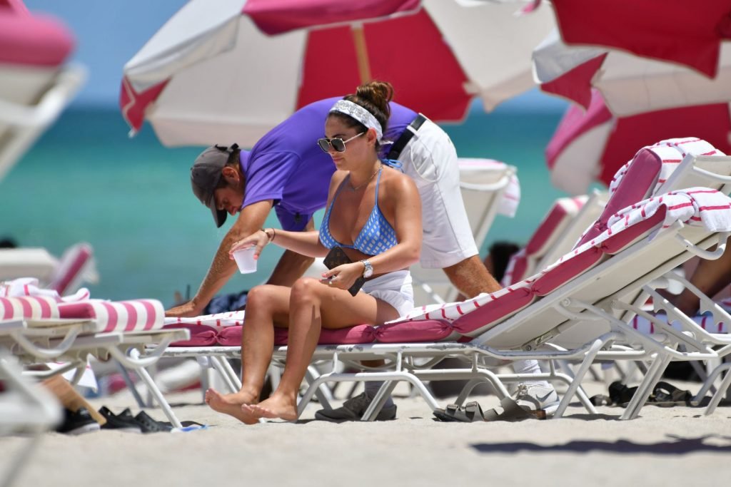 La star de TOWIE Courtney Green et son petit ami Callum Bushby exhibent leurs corps de plage sur Miami Beach, 06/06/2019.