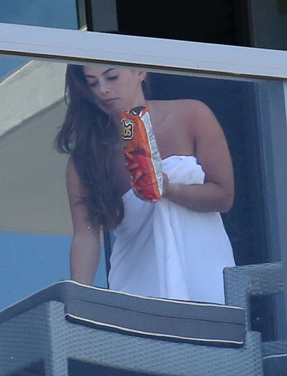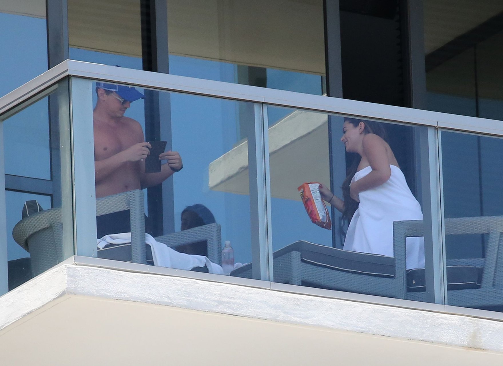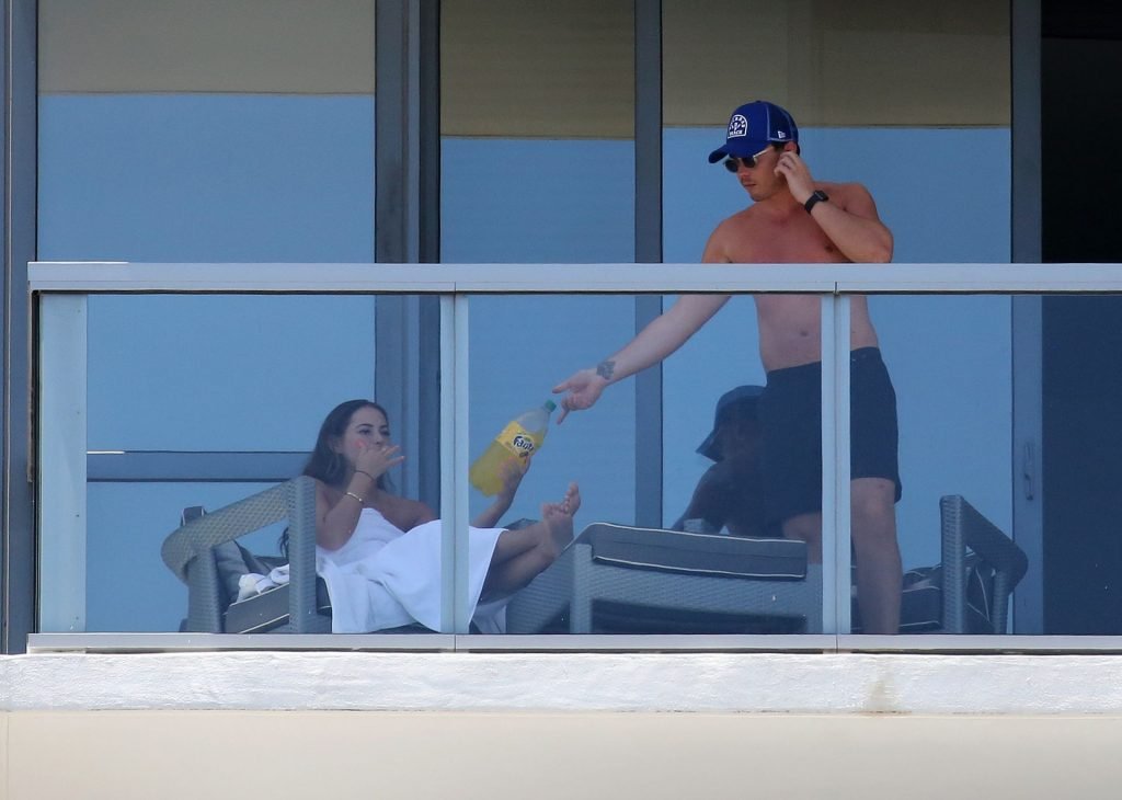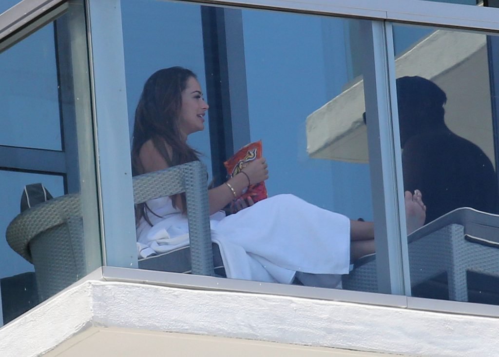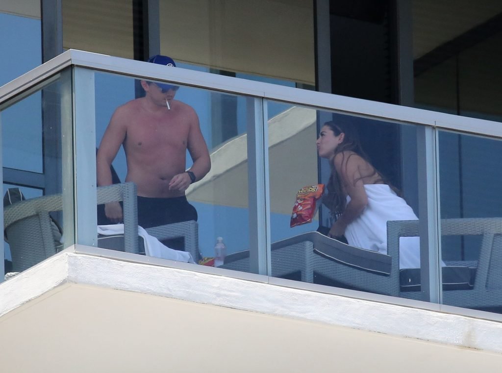 Après s’être détendus au bord de la piscine, le couple est retourné dans leur chambre où Courtney est apparue sur le balcon avec rien d’autre qu’une serviette blanche et un paquet de Cheetos, demandant à son petit ami de prendre quelques photos. Après avoir accompagné les Cheetos d’un soda Fanta à l’ananas, le couple a été vu se promenant vers un restaurant pour déjeuner.