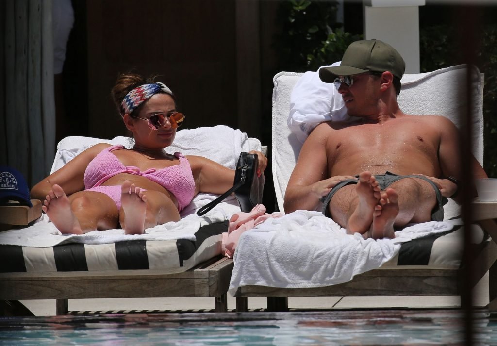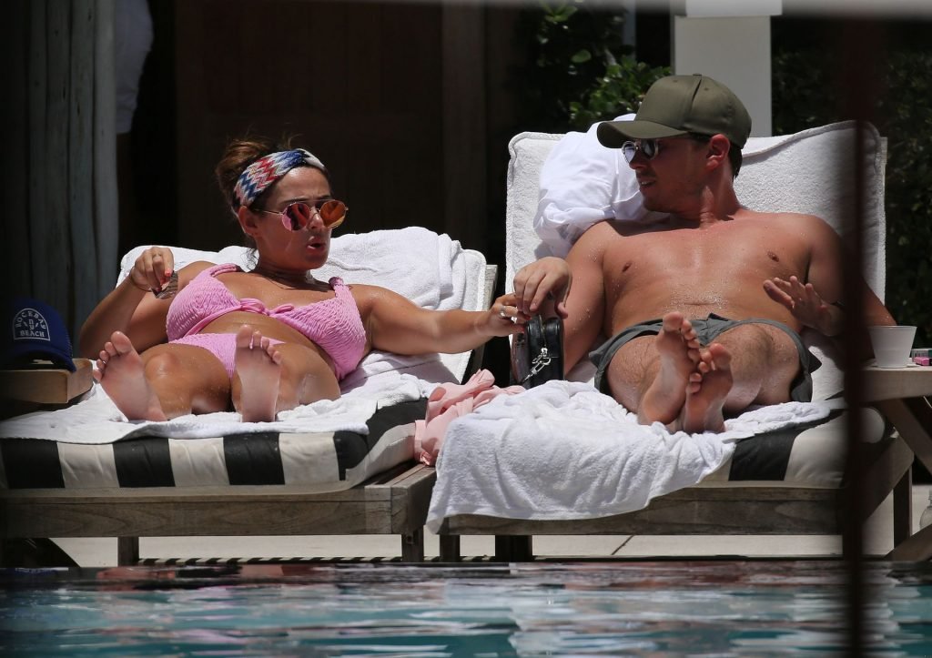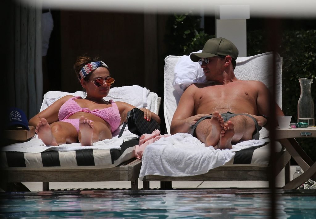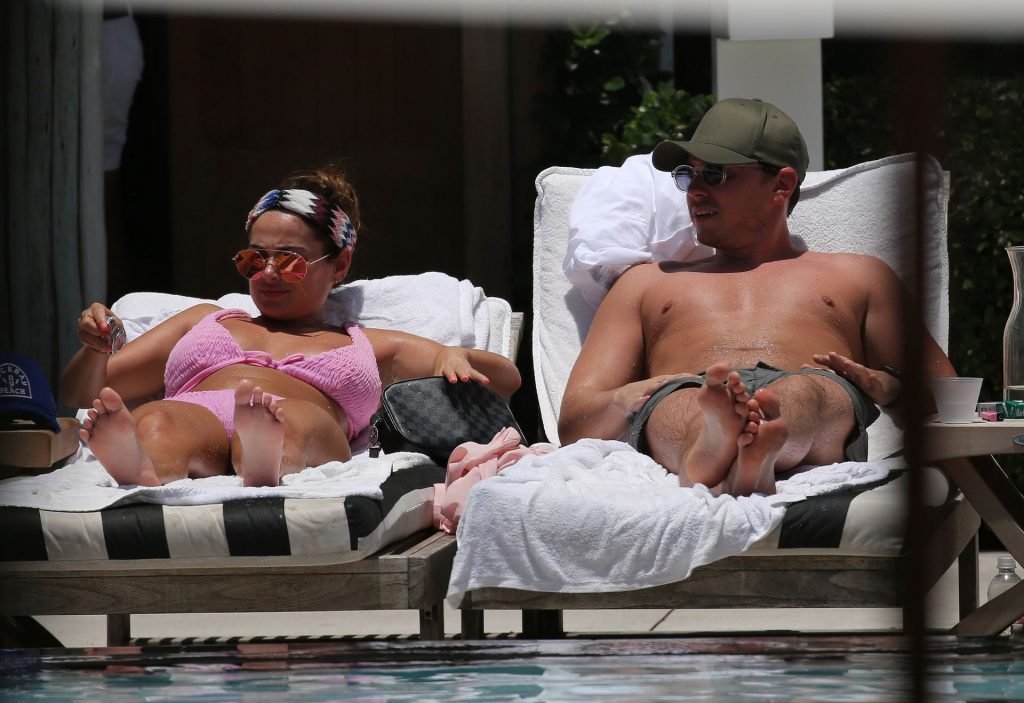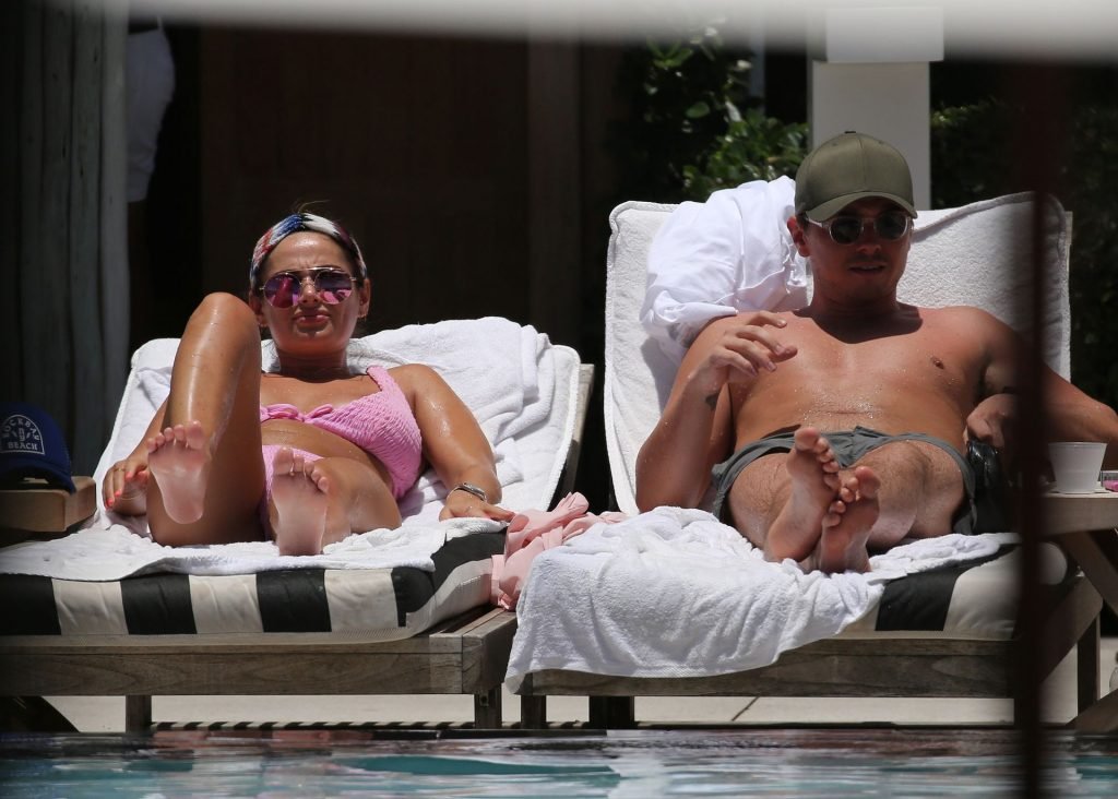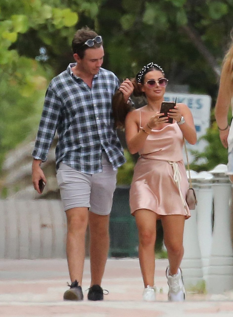 La star de TOWIE Courtney Green porte un bikini rose avec son petit ami Calum Bushby à Miami Beach, le 06/05/2019.