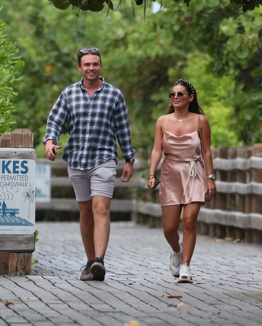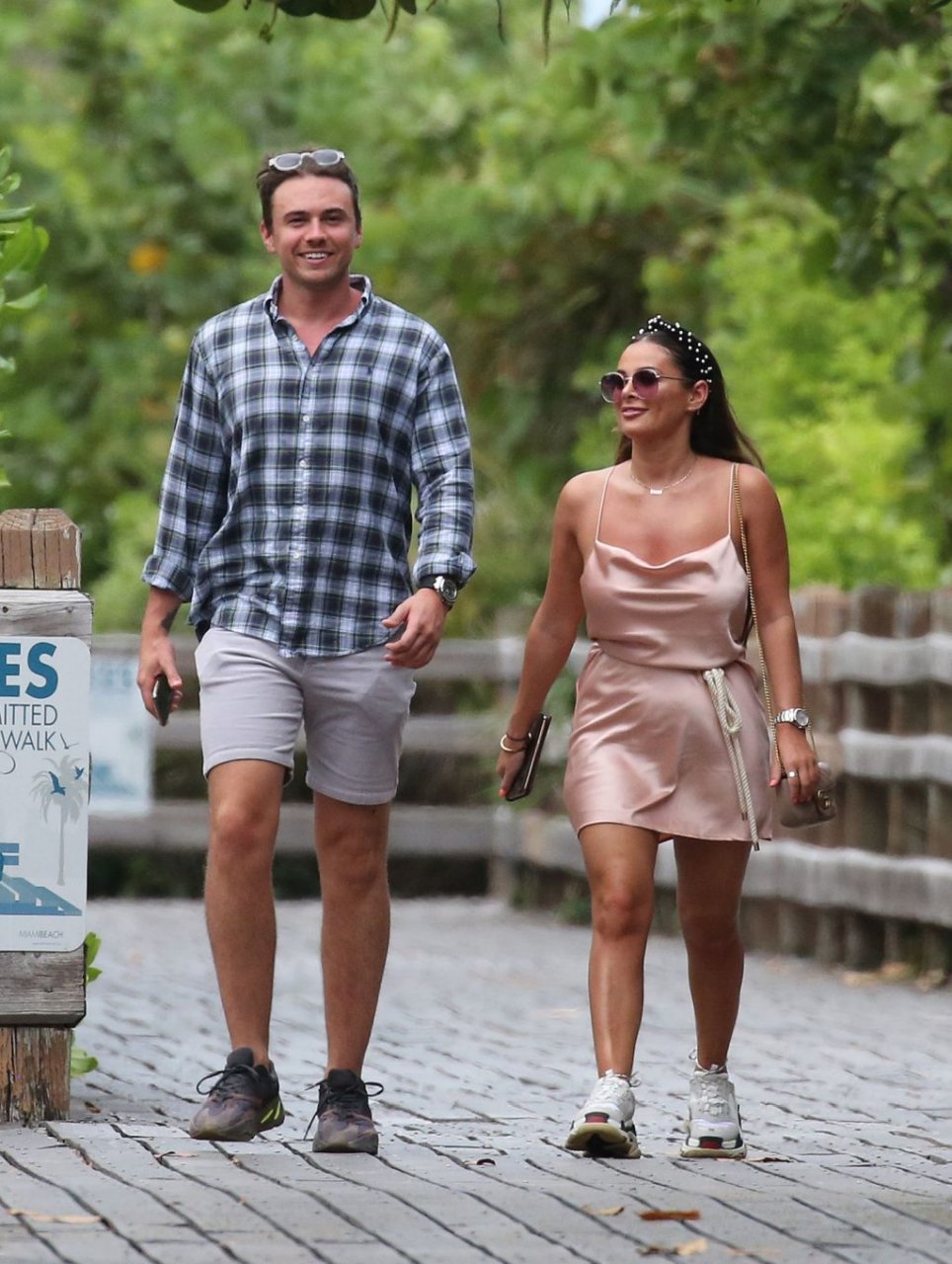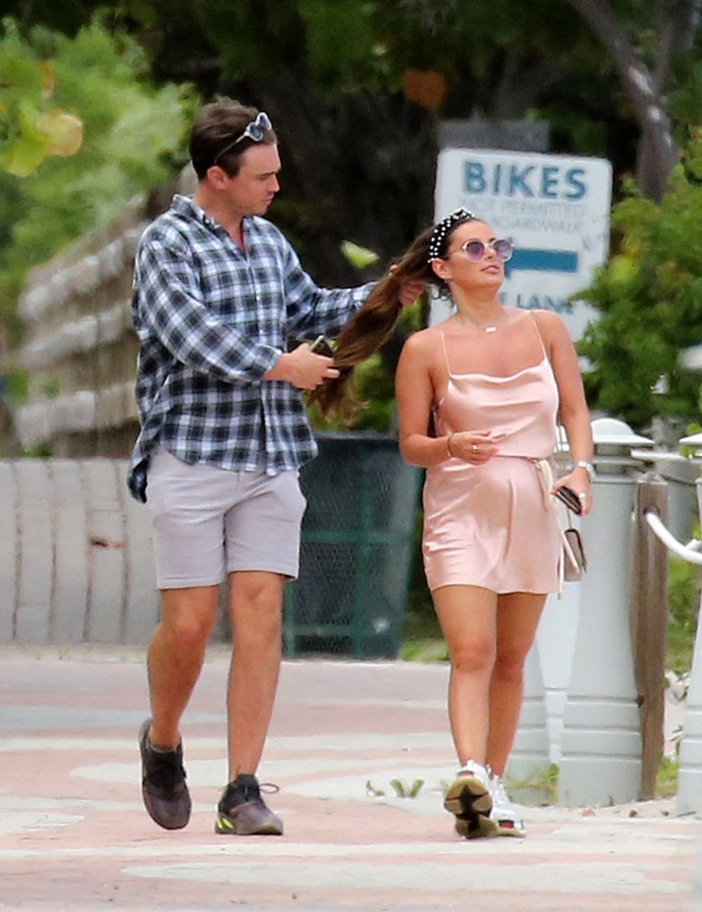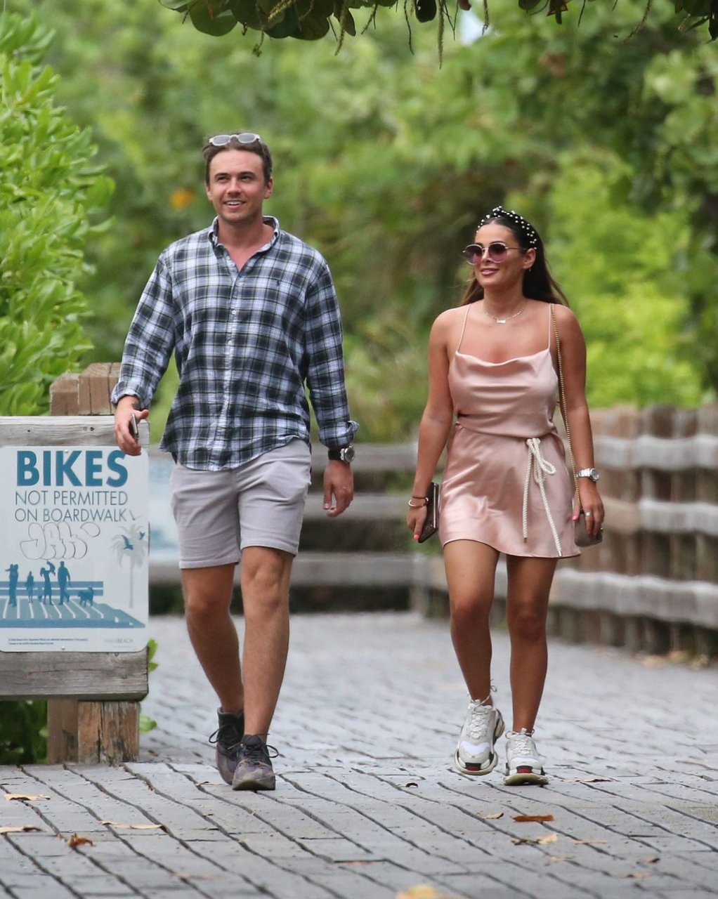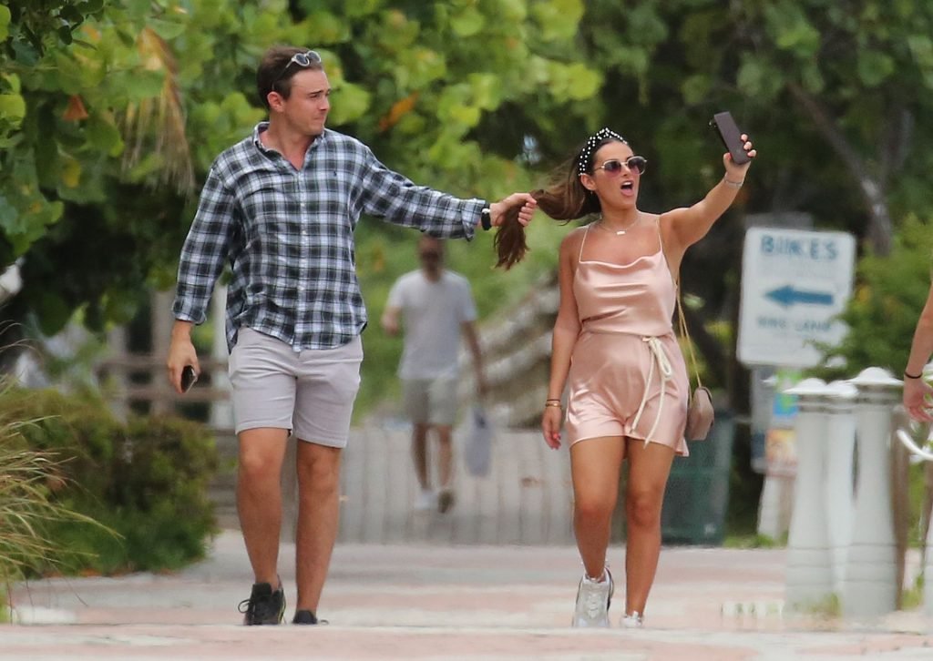 La star de TOWIE Courtney Green porte un bikini rose avec son petit ami Calum Bushby à Miami Beach, le 06/05/2019.