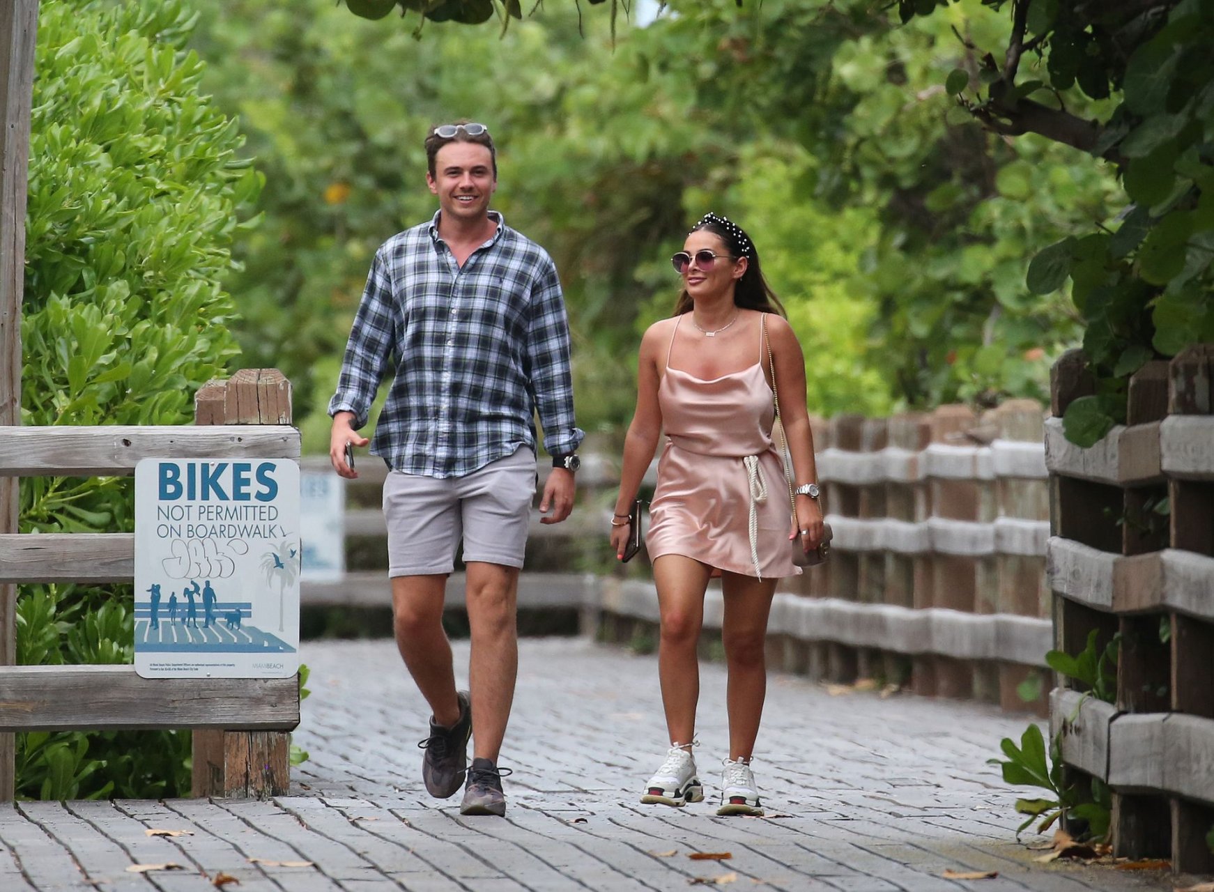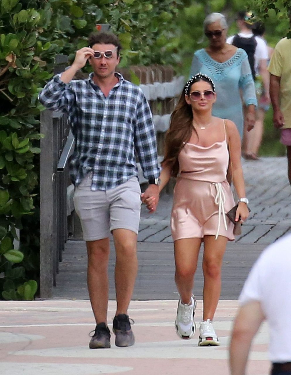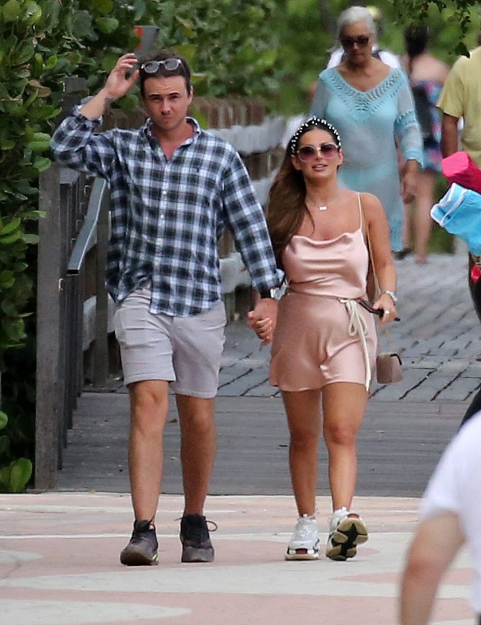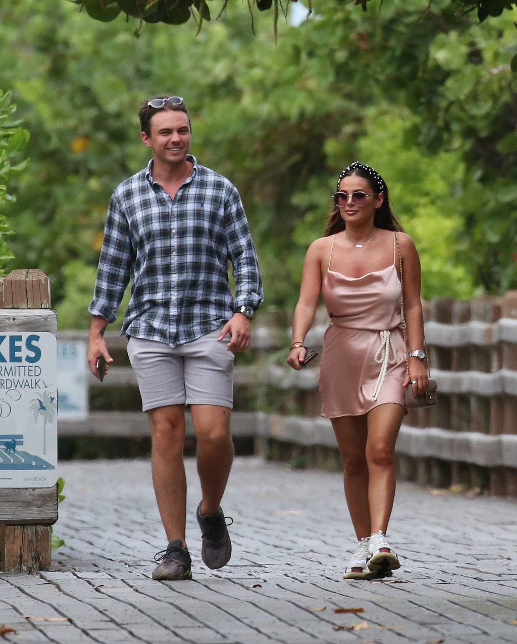 La star de TOWIE Courtney Green porte un bikini rose avec son petit ami Calum Bushby à Miami Beach, le 06/05/2019.