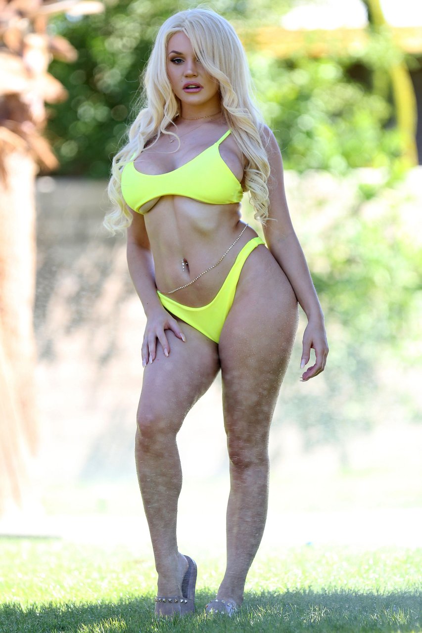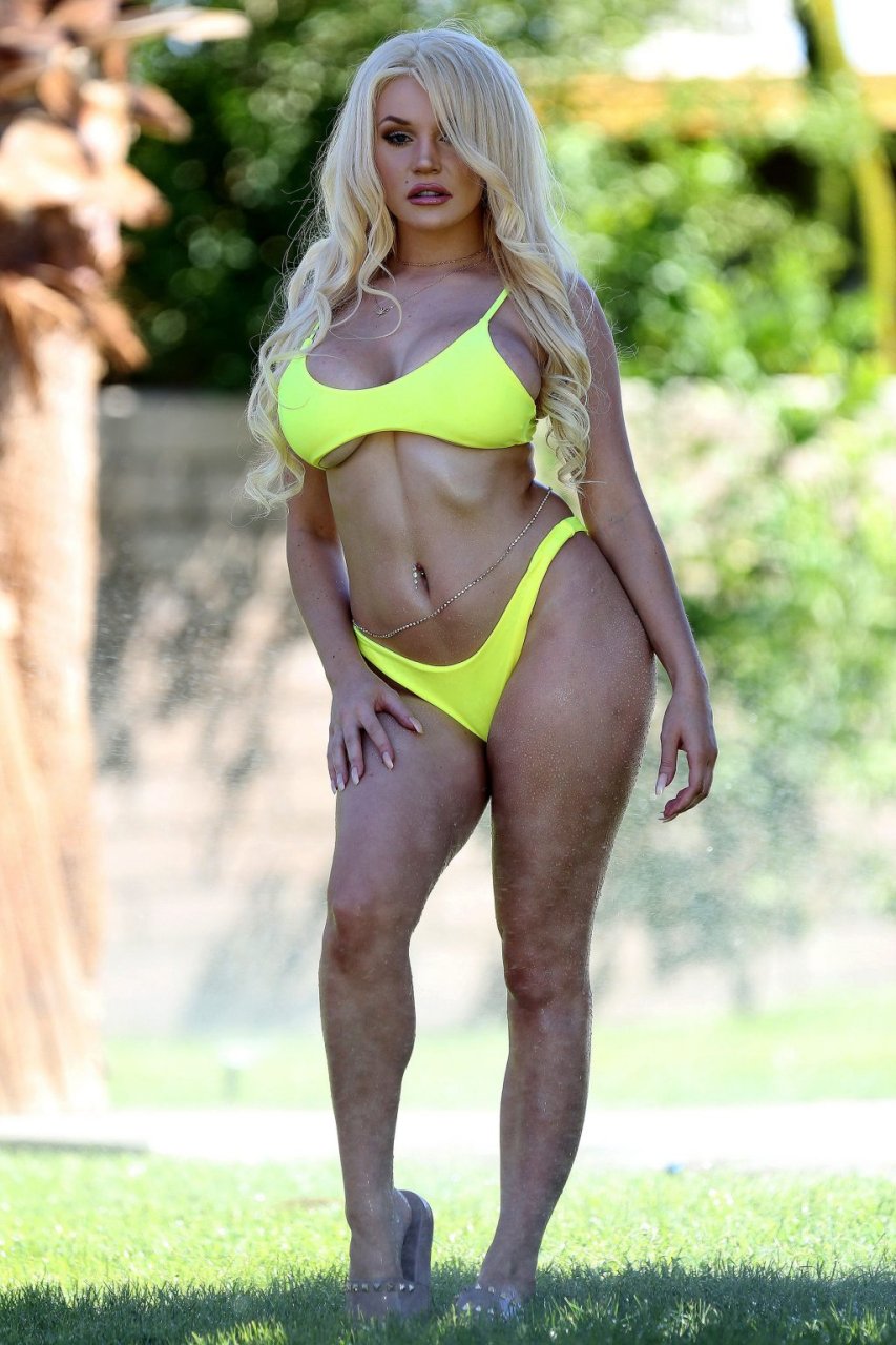 La blonde pulpeuse Courtney Stodden (24 ans) se prélasse au soleil en portant un bikini jaune sous-poitrine à Palm Springs, 27/09/2018.