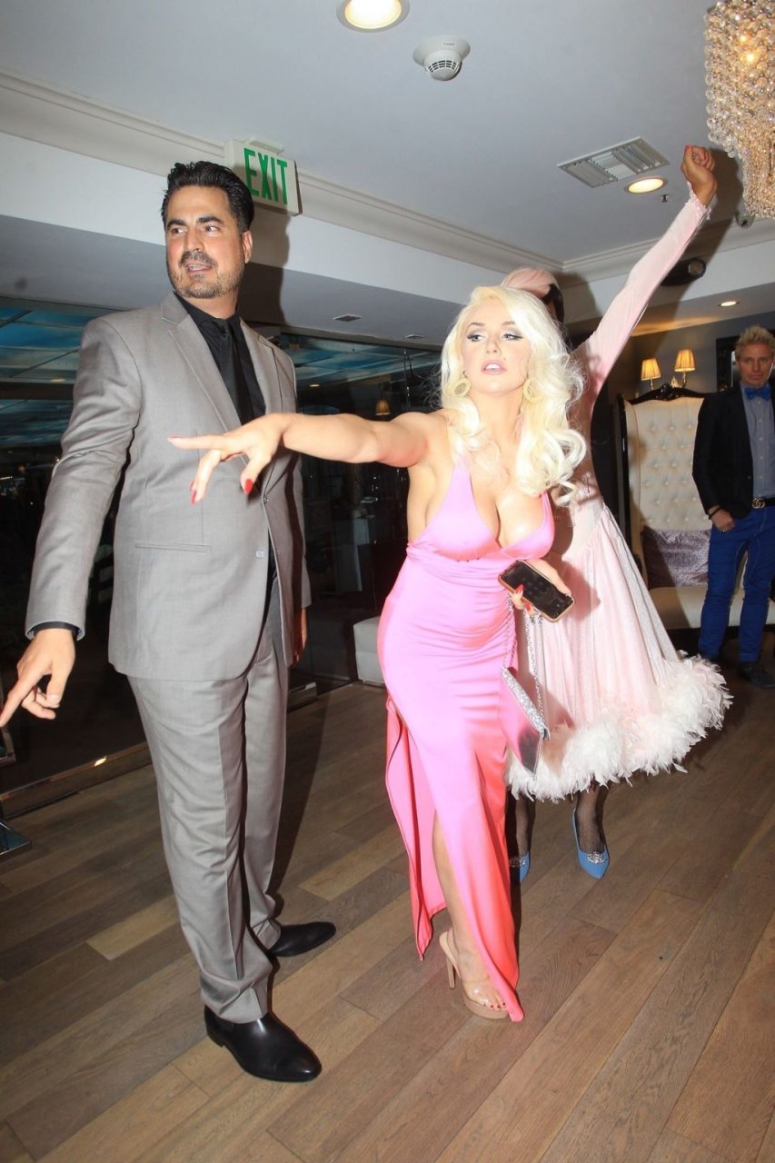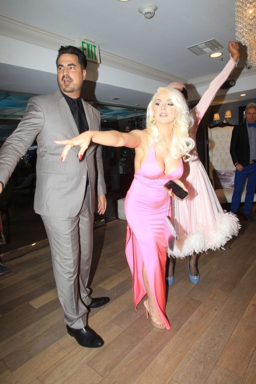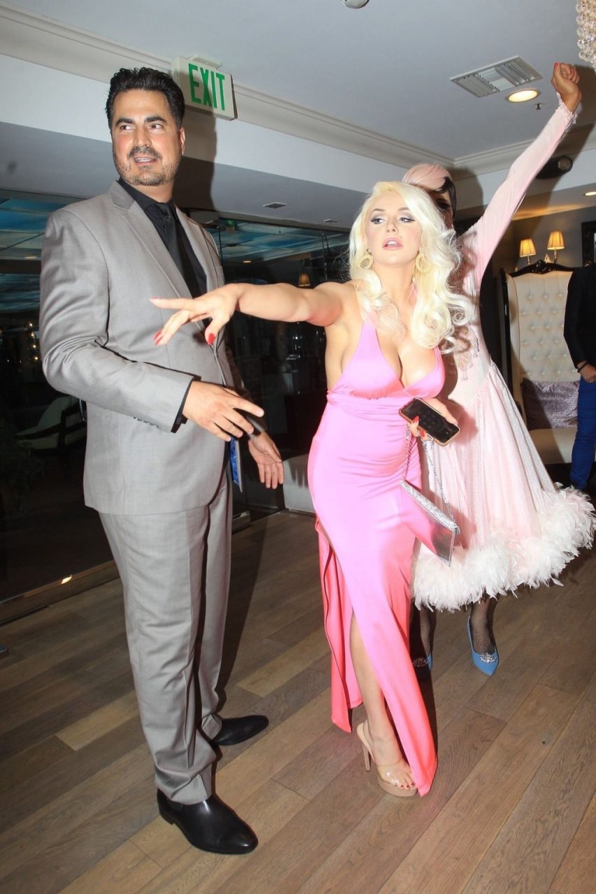 Modèle et personnalité médiatique Courtney Stodden et une amie ont un accident dans une salle de bain lors de sa première télé à Beverly Hills, 03/09/2019. La mère de Courtney et son petit ami étaient présents à l’événement.