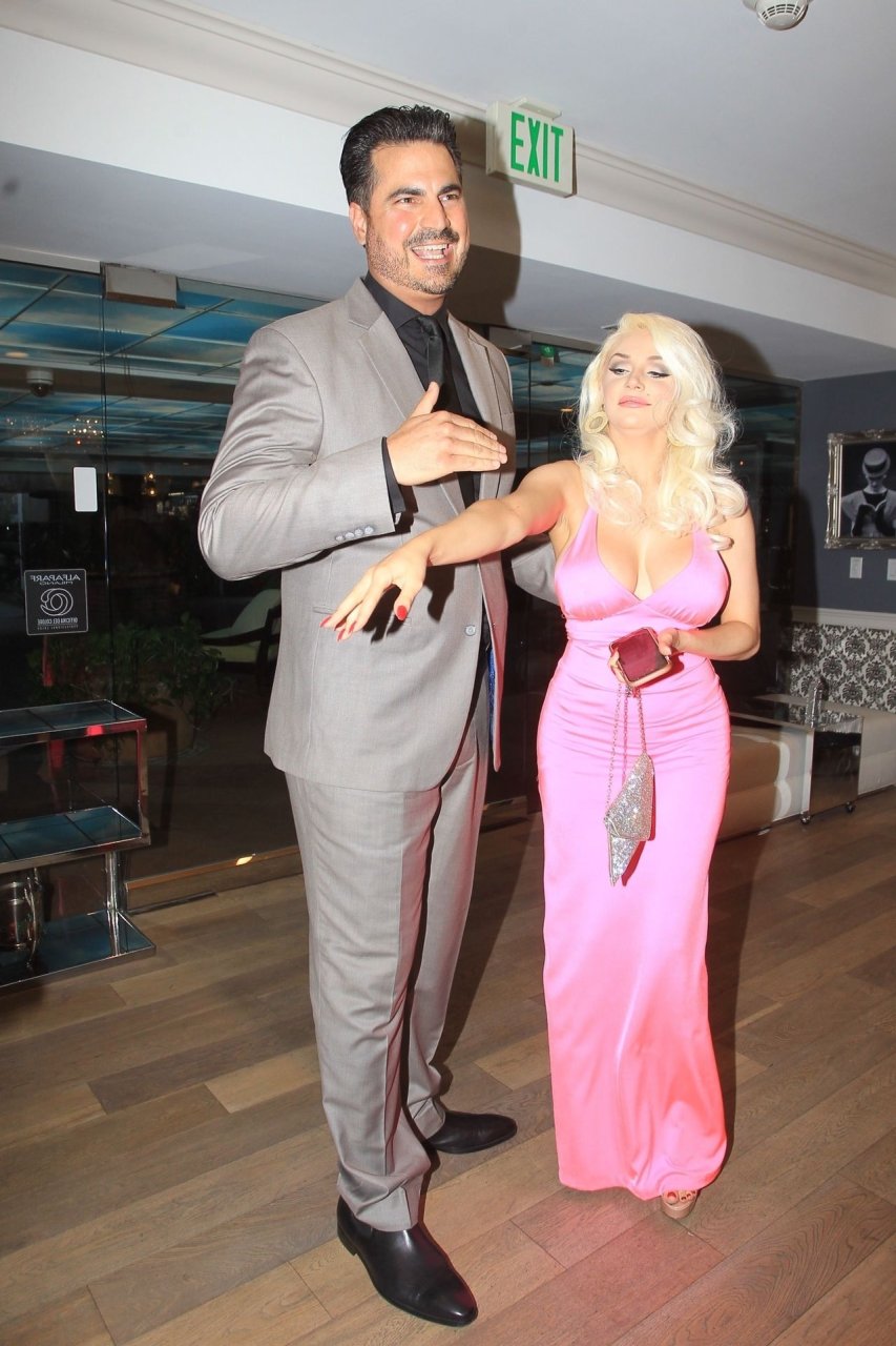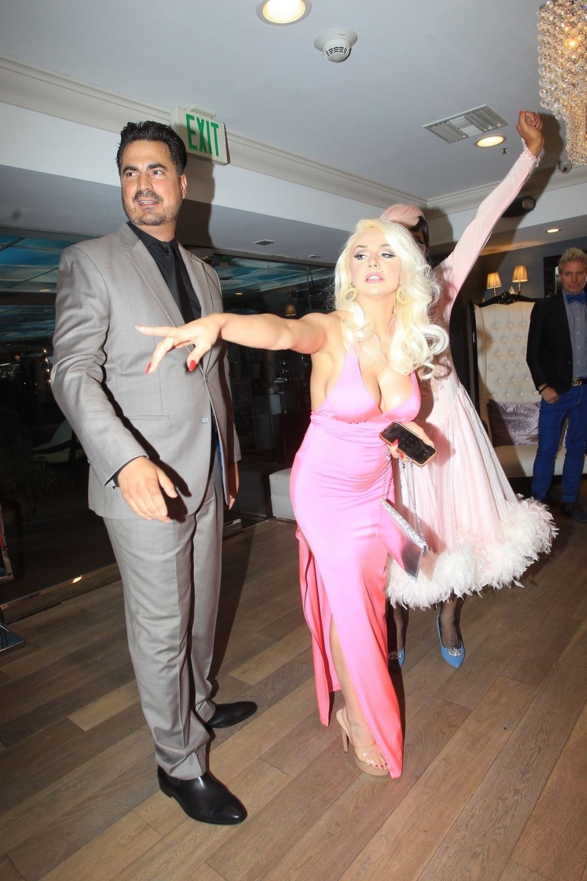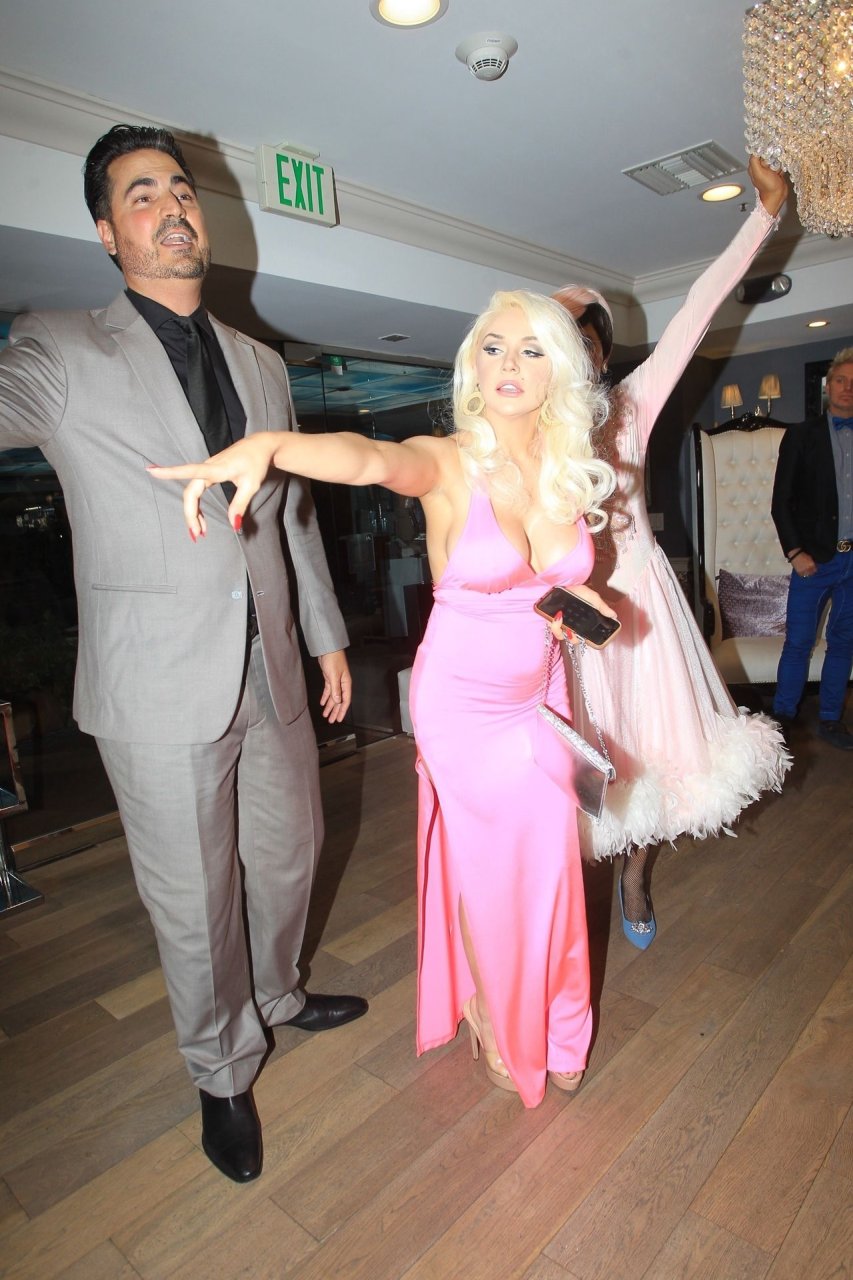 Modèle et personnalité médiatique Courtney Stodden et une amie ont un accident dans une salle de bain lors de sa première télé à Beverly Hills, 03/09/2019. La mère de Courtney et son petit ami étaient présents à l’événement.