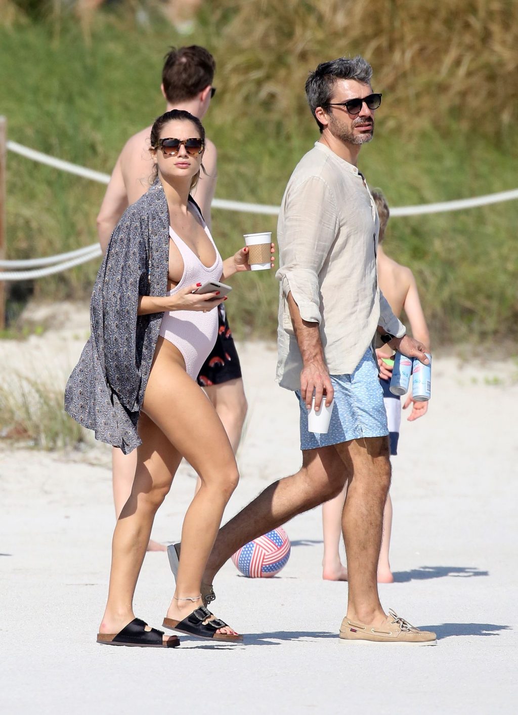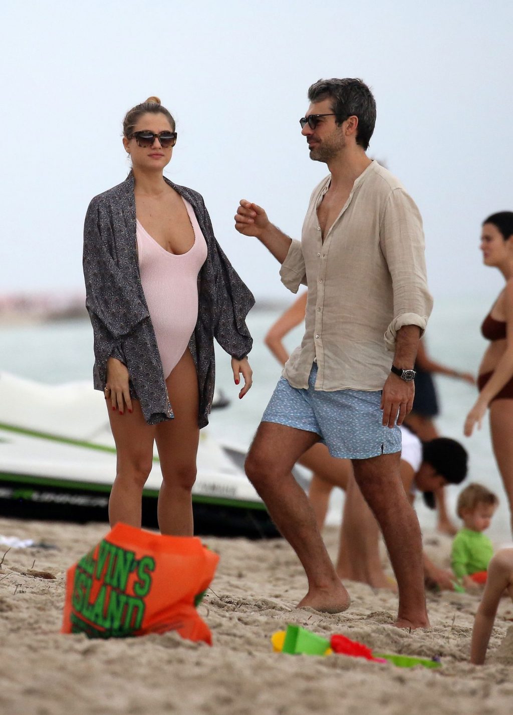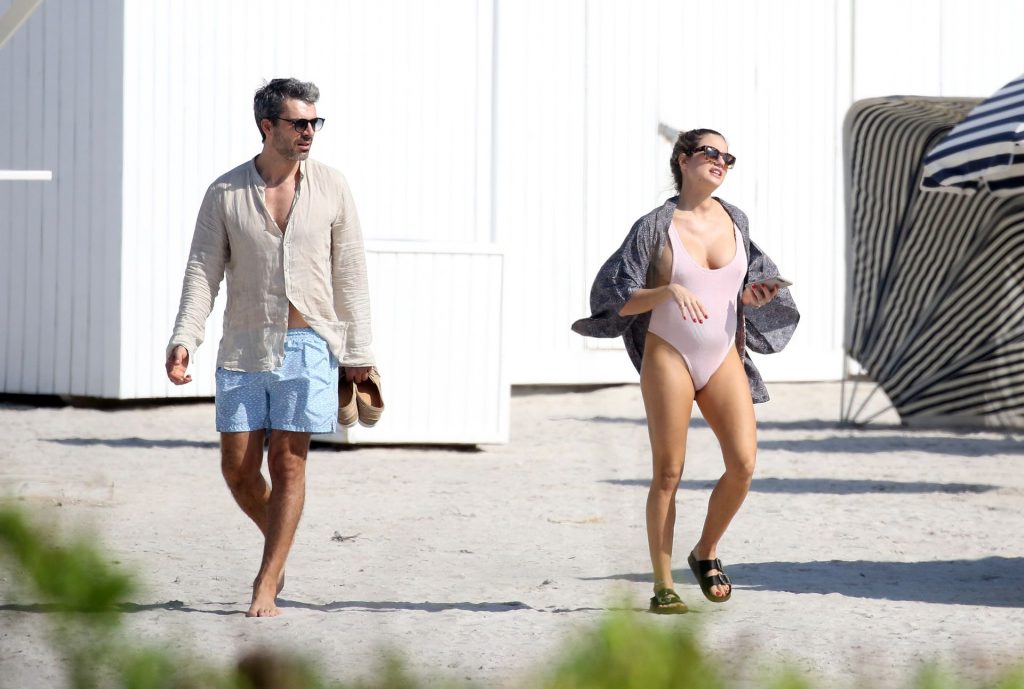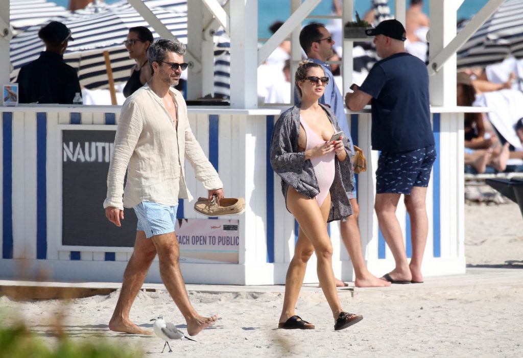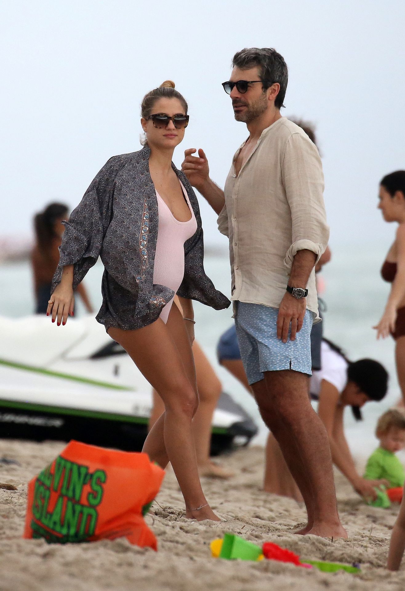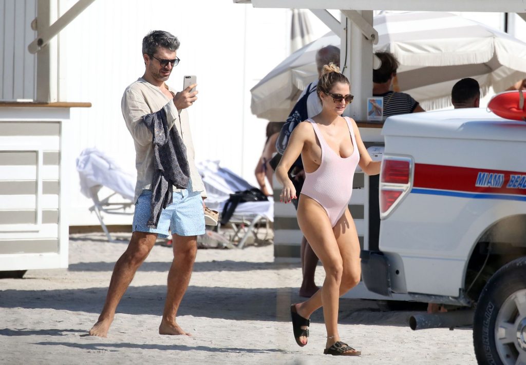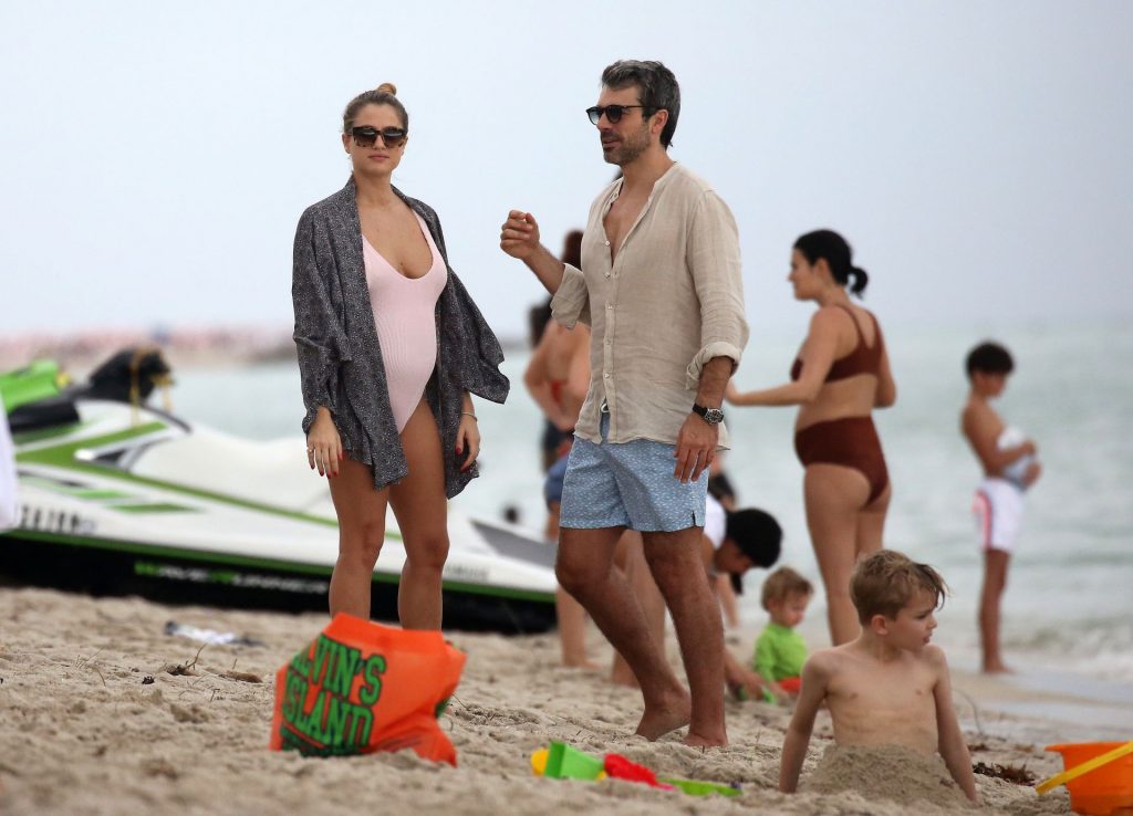 L’actrice Cristina Marino montre son ventre arrondi et toutes ses nouvelles courbes dans un maillot de bain très révélateur alors qu’elle se rend à la plage avec Luca Argentero à Miami le jour de la Saint-Sylvestre, le 31/12/2019.
