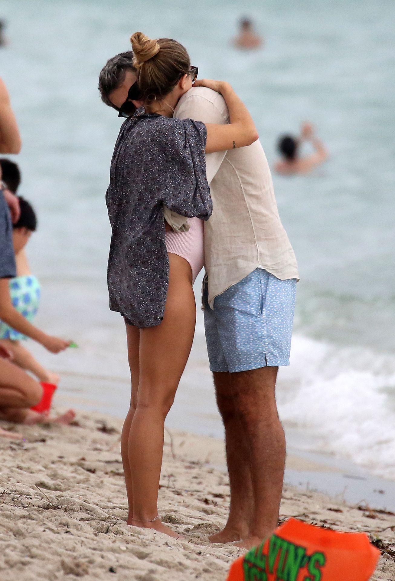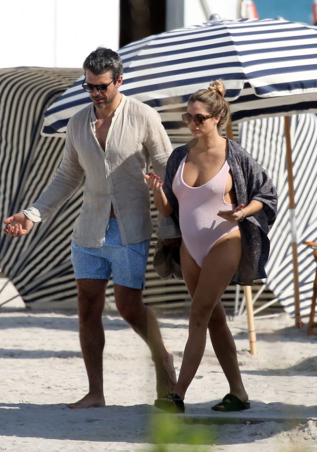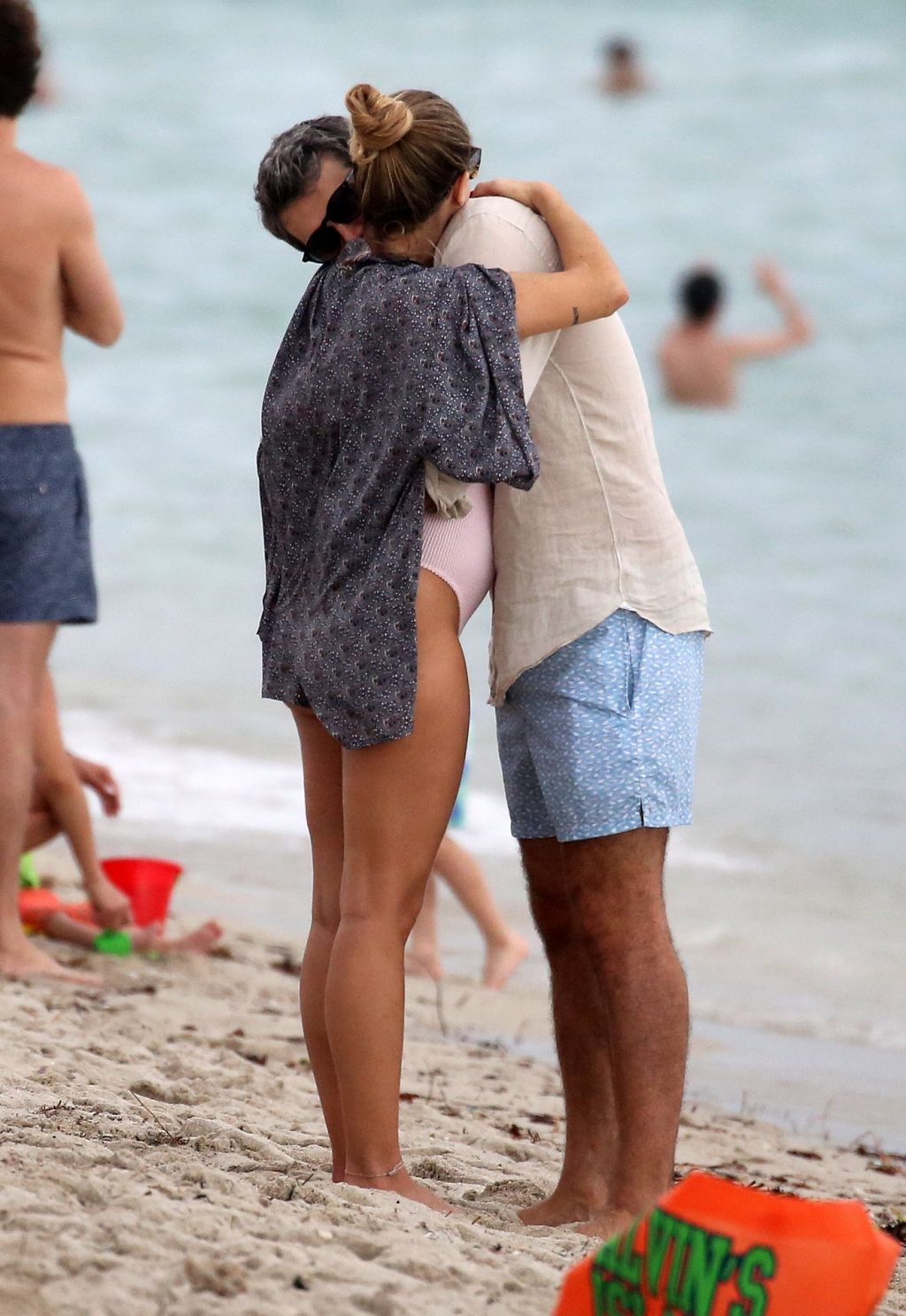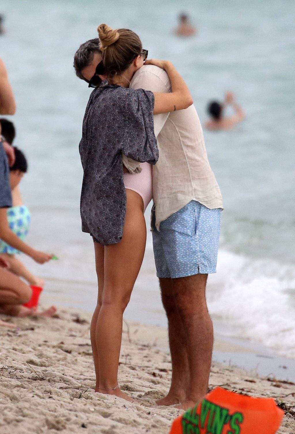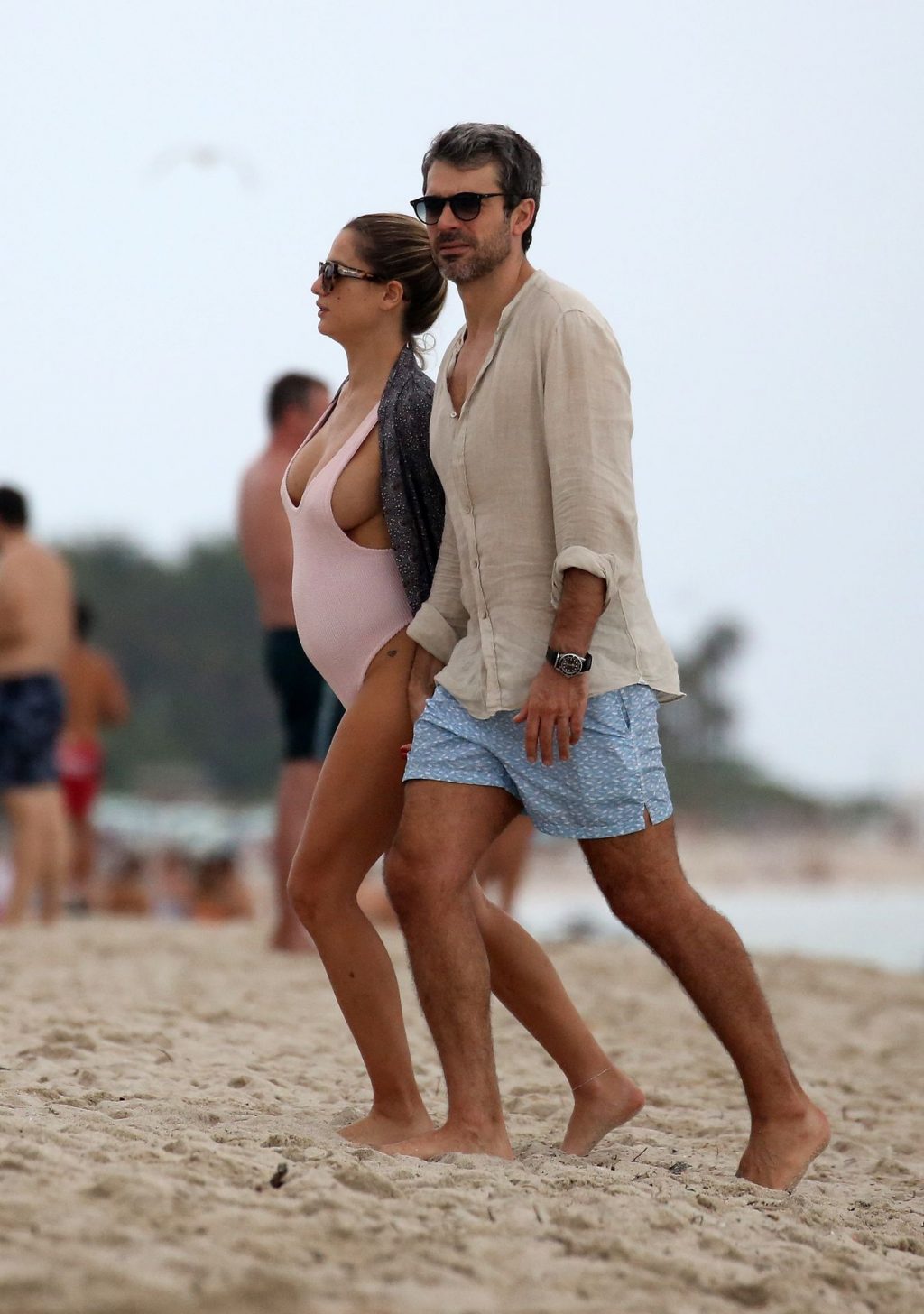L’actrice Cristina Marino montre son ventre arrondi et toutes ses nouvelles courbes dans un maillot de bain très révélateur alors qu’elle se rend à la plage avec Luca Argentero à Miami le jour de la Saint-Sylvestre, le 31/12/2019.