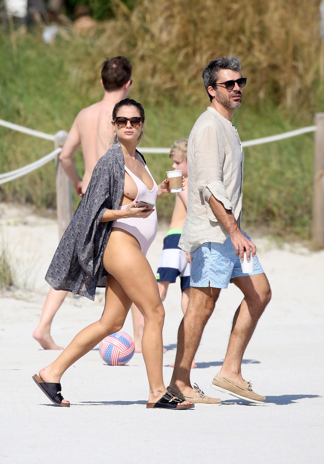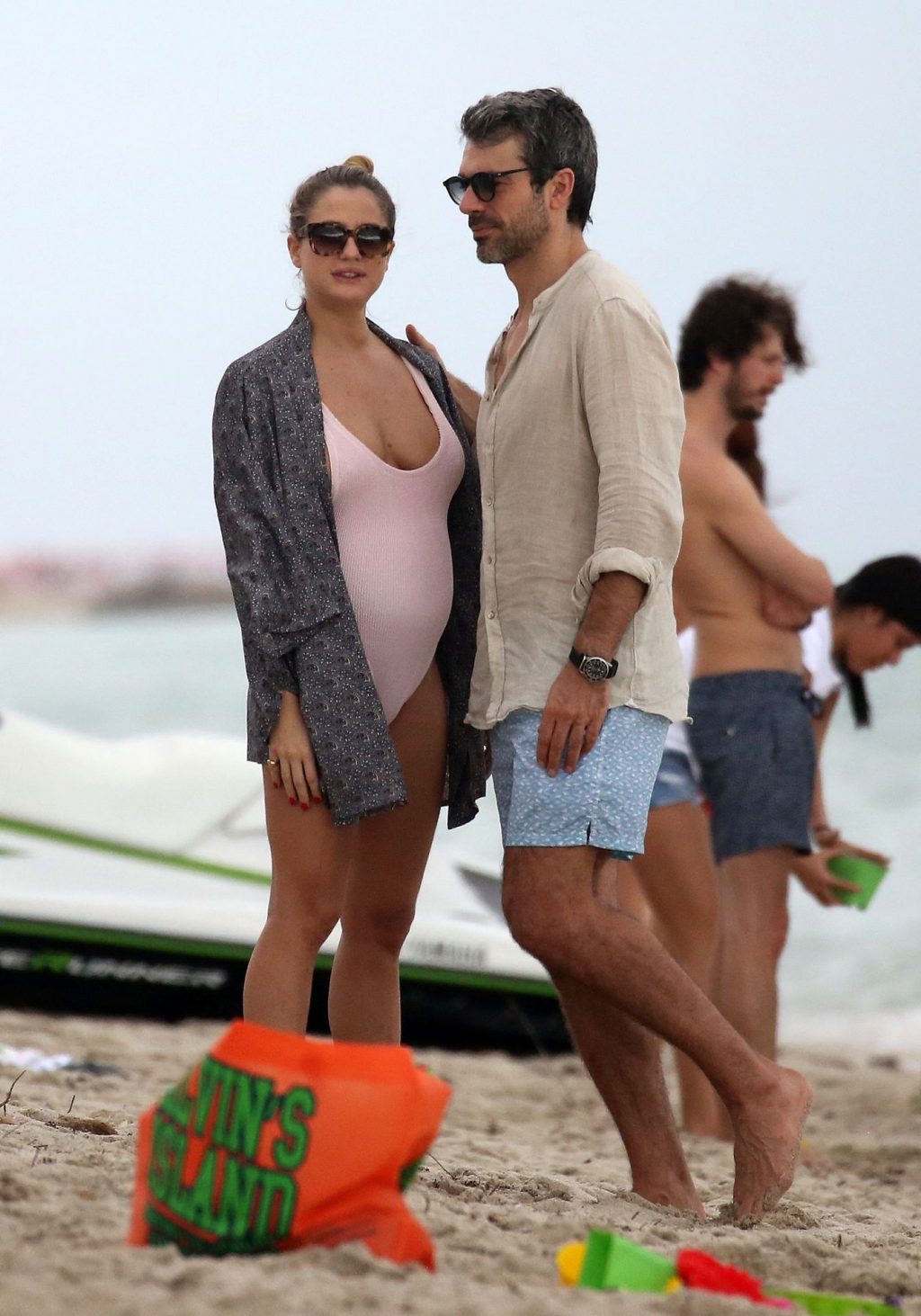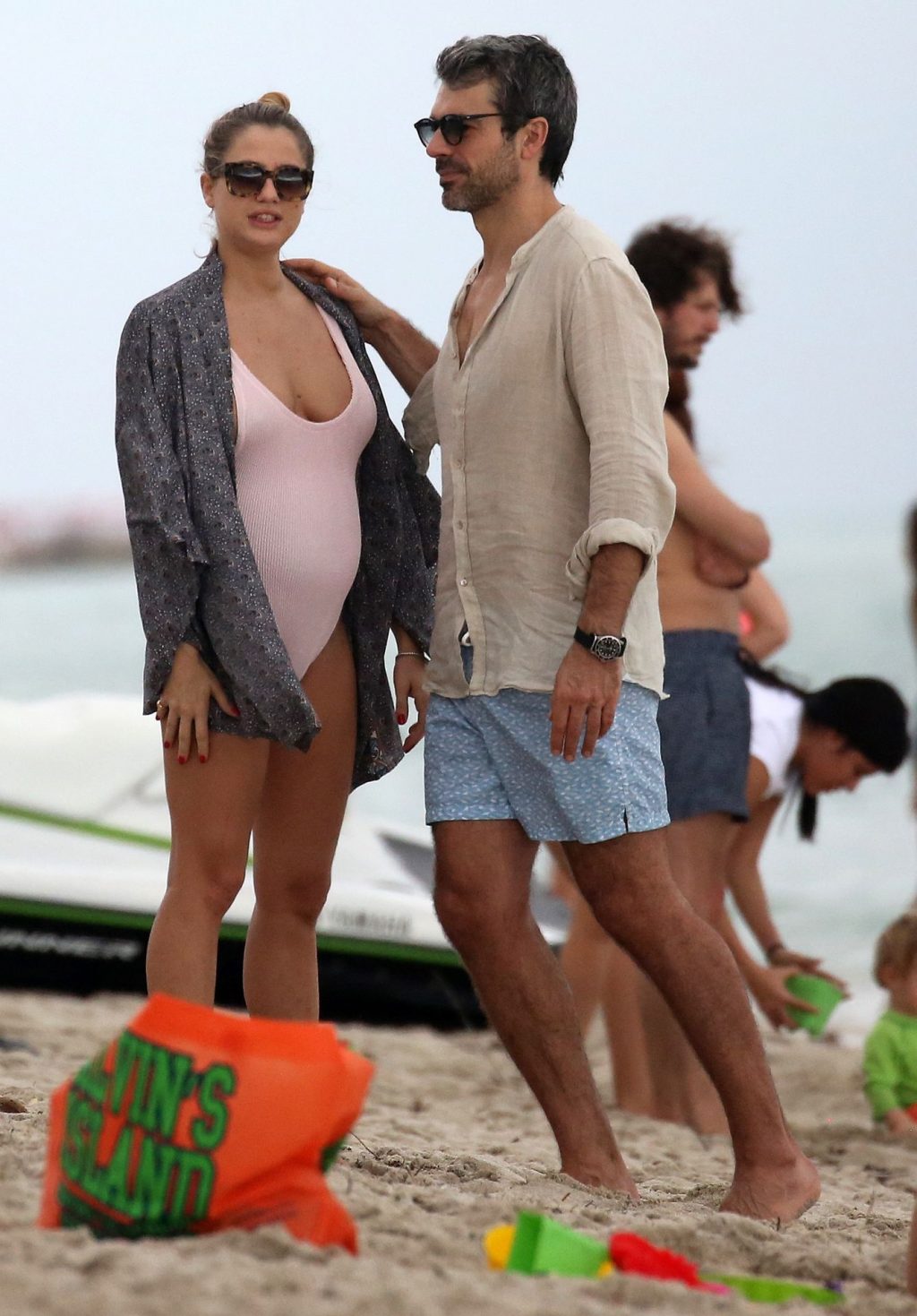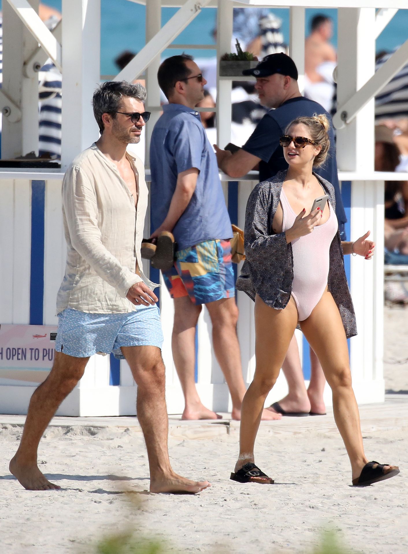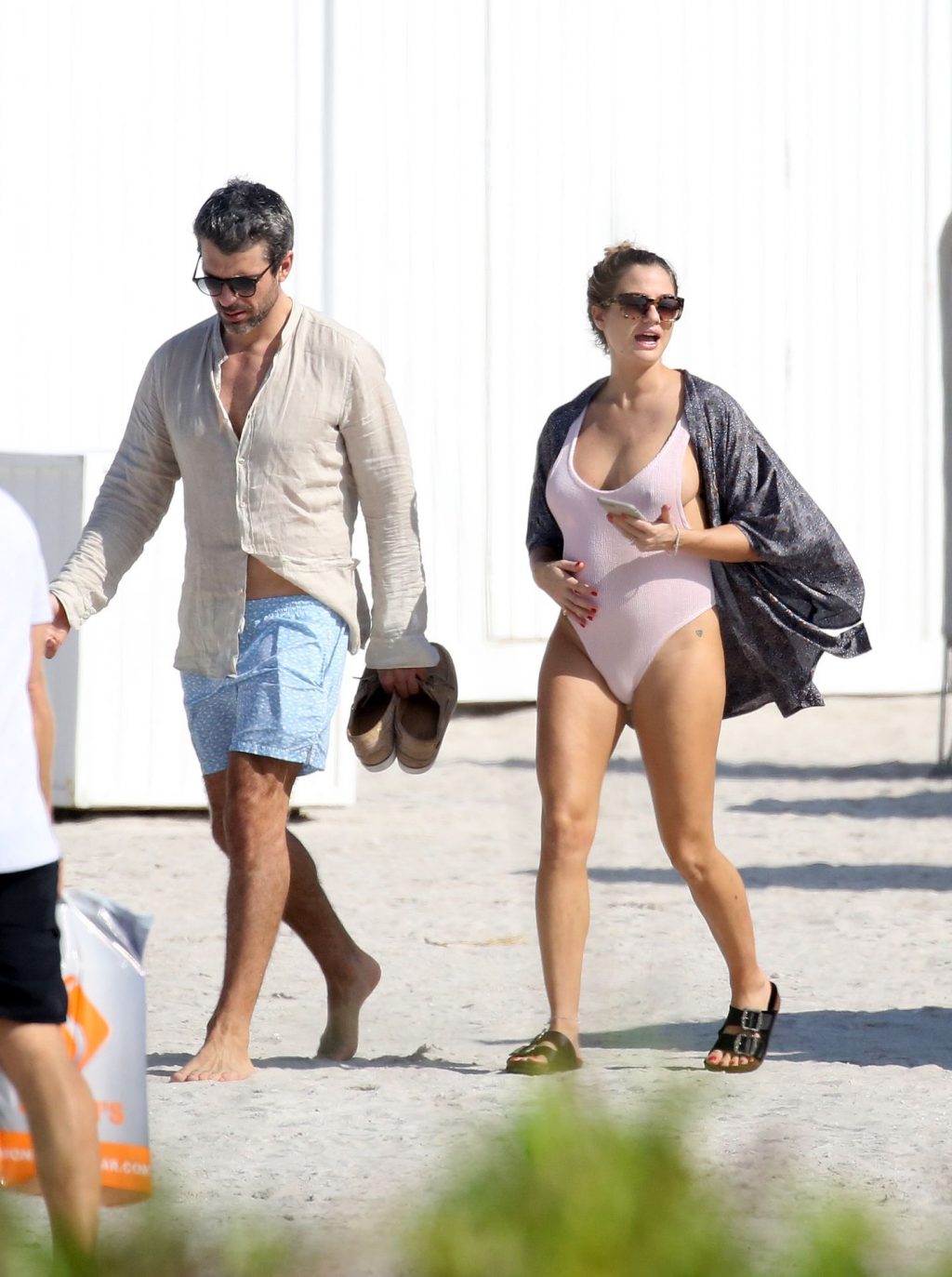 L’actrice Cristina Marino montre son ventre arrondi et toutes ses nouvelles courbes dans un maillot de bain très révélateur alors qu’elle se rend à la plage avec Luca Argentero à Miami le jour de la Saint-Sylvestre, le 31/12/2019.