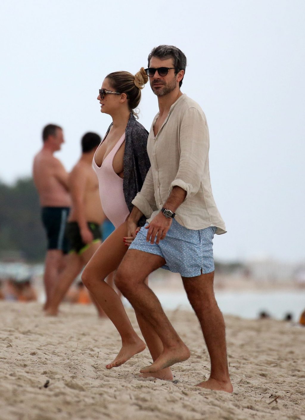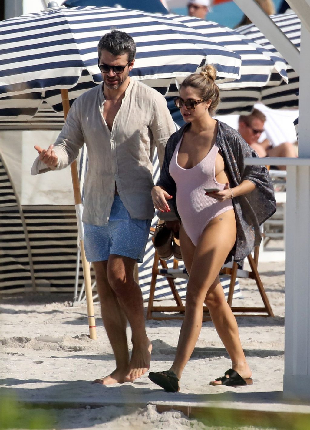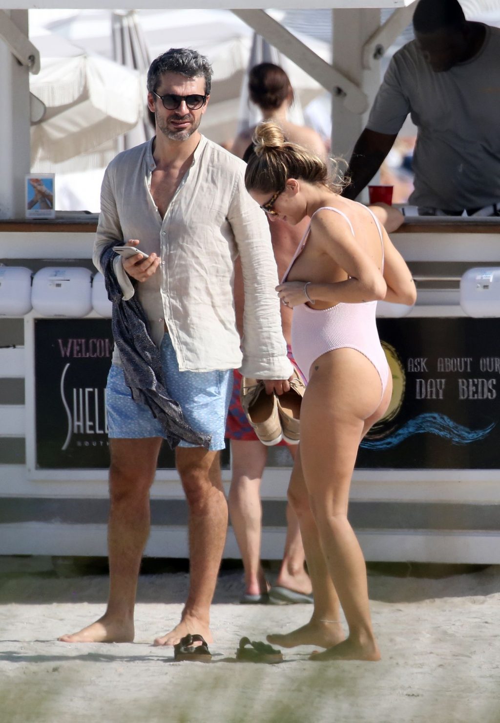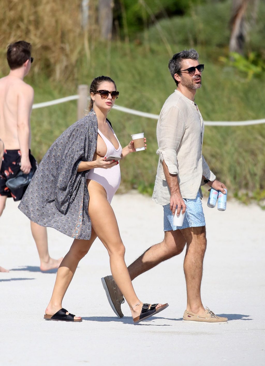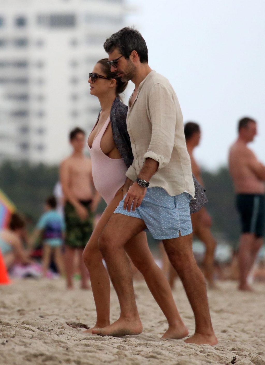 L’actrice Cristina Marino montre son ventre arrondi et toutes ses nouvelles courbes dans un maillot de bain très révélateur alors qu’elle se rend à la plage avec Luca Argentero à Miami le jour de la Saint-Sylvestre, le 31/12/2019.