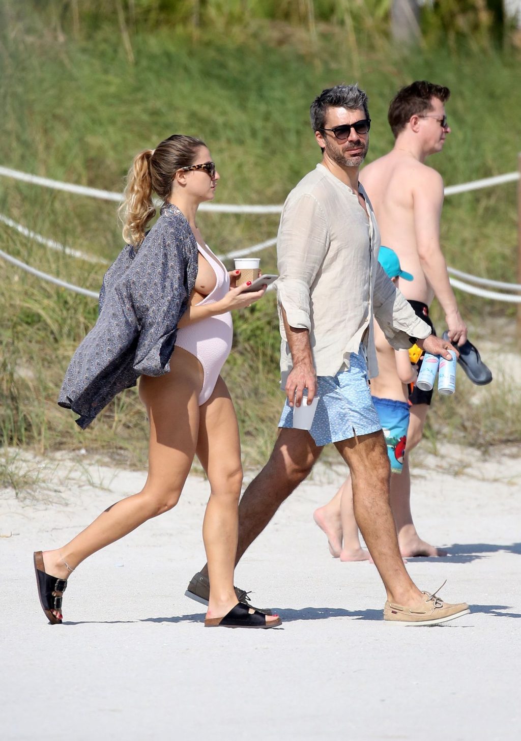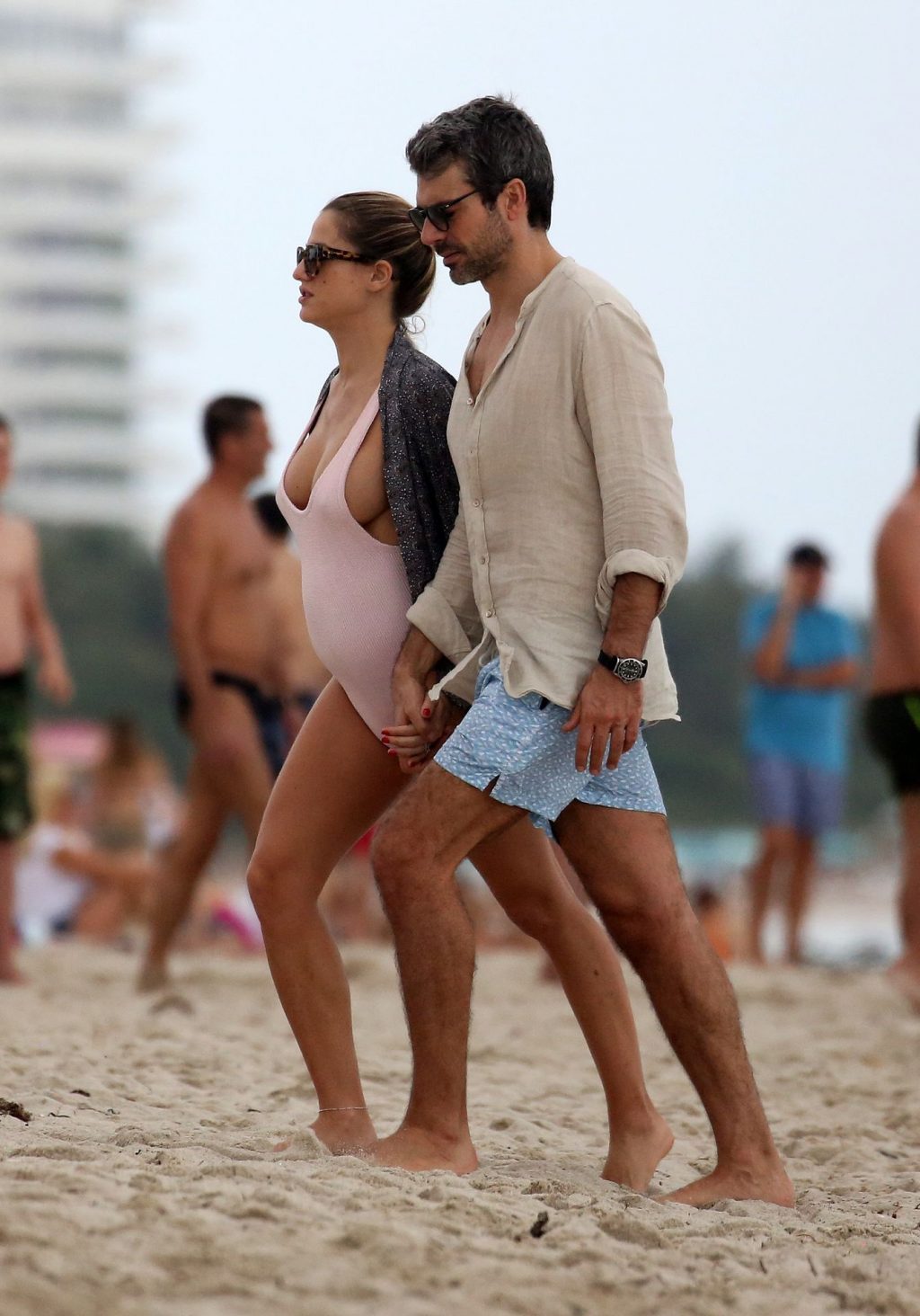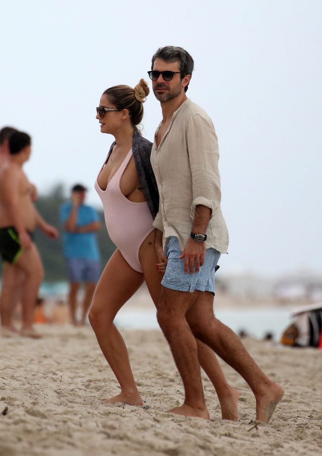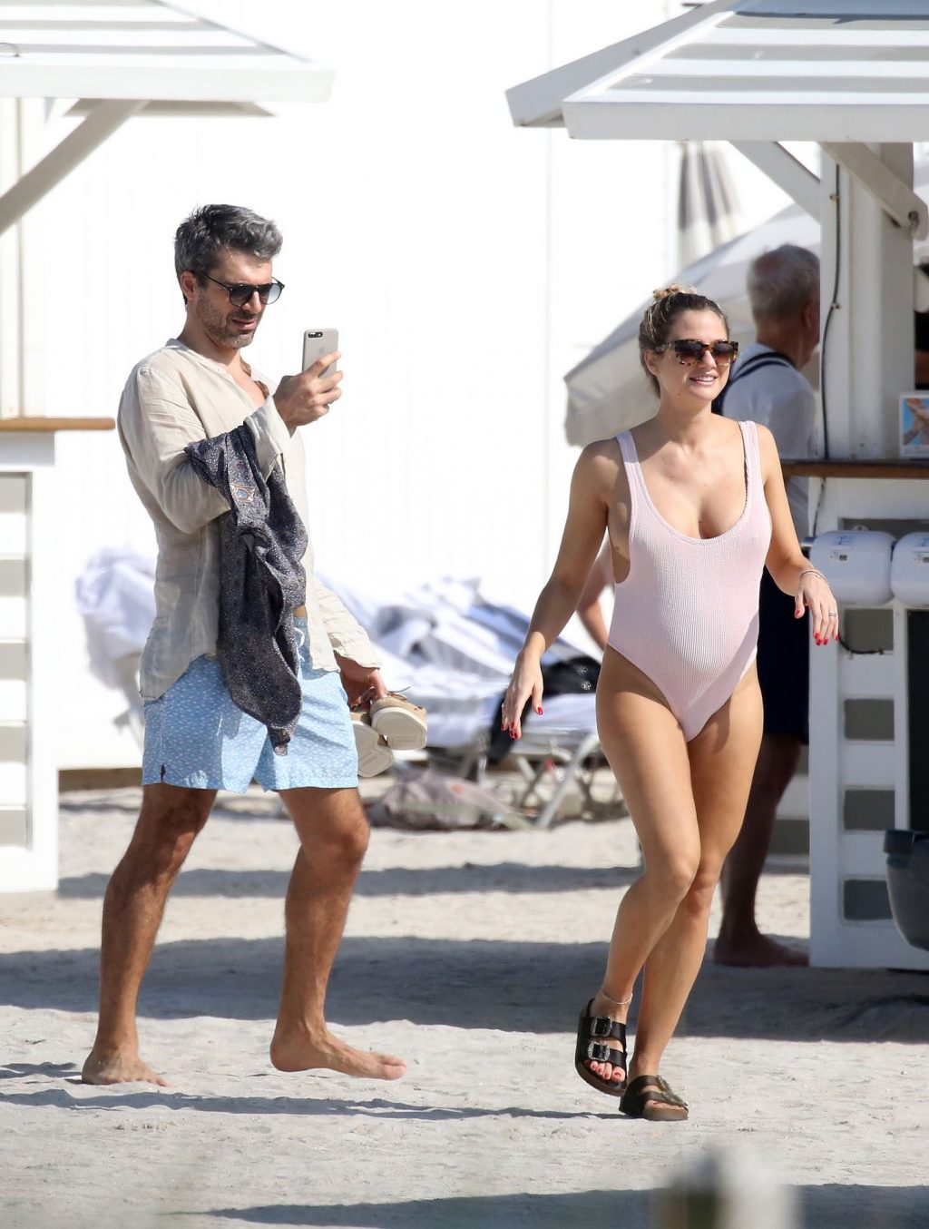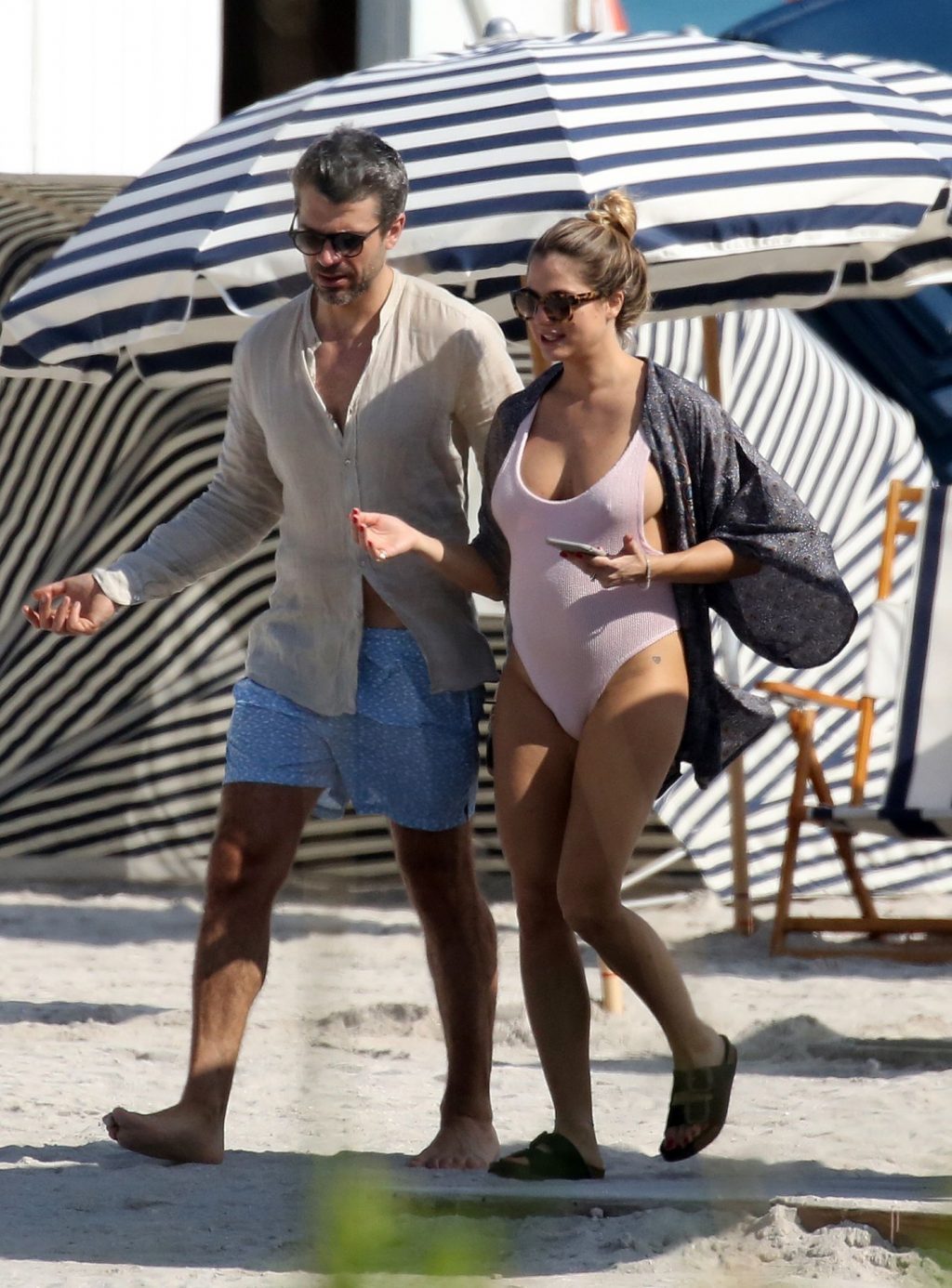 L’actrice Cristina Marino montre son ventre arrondi et toutes ses nouvelles courbes dans un maillot de bain très révélateur alors qu’elle se rend à la plage avec Luca Argentero à Miami le jour de la Saint-Sylvestre, le 31/12/2019.