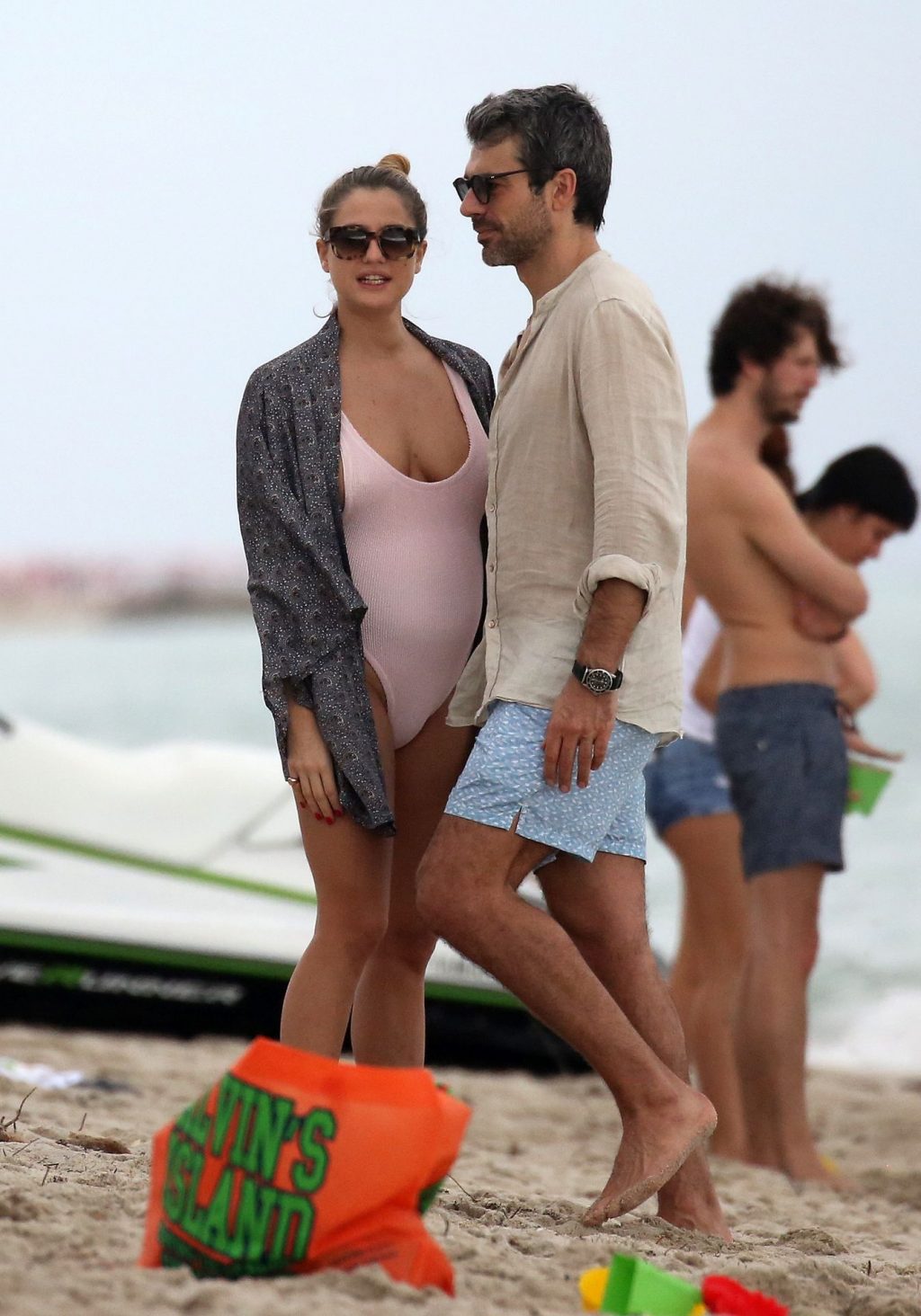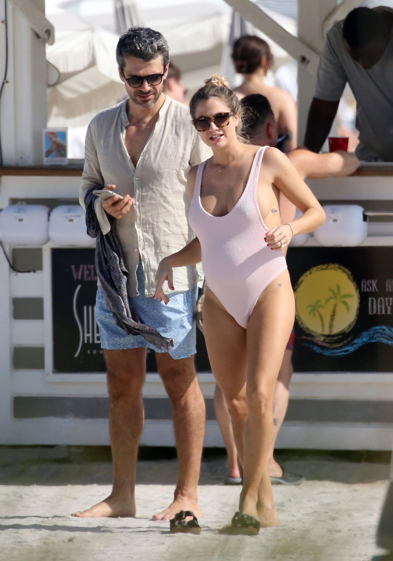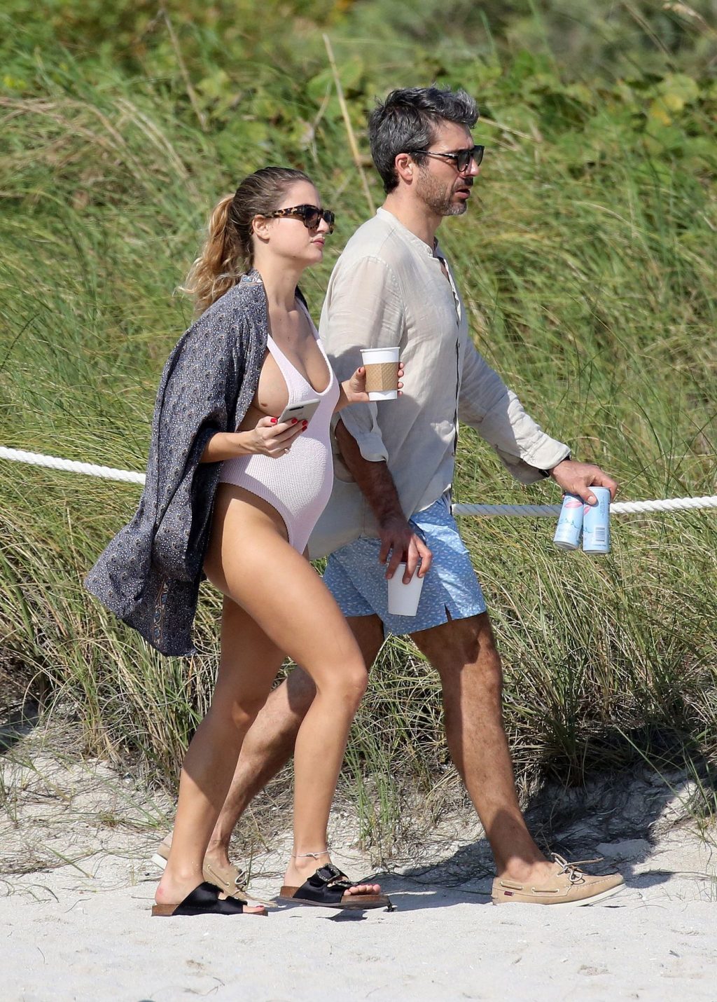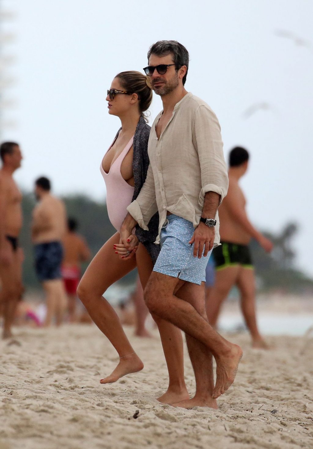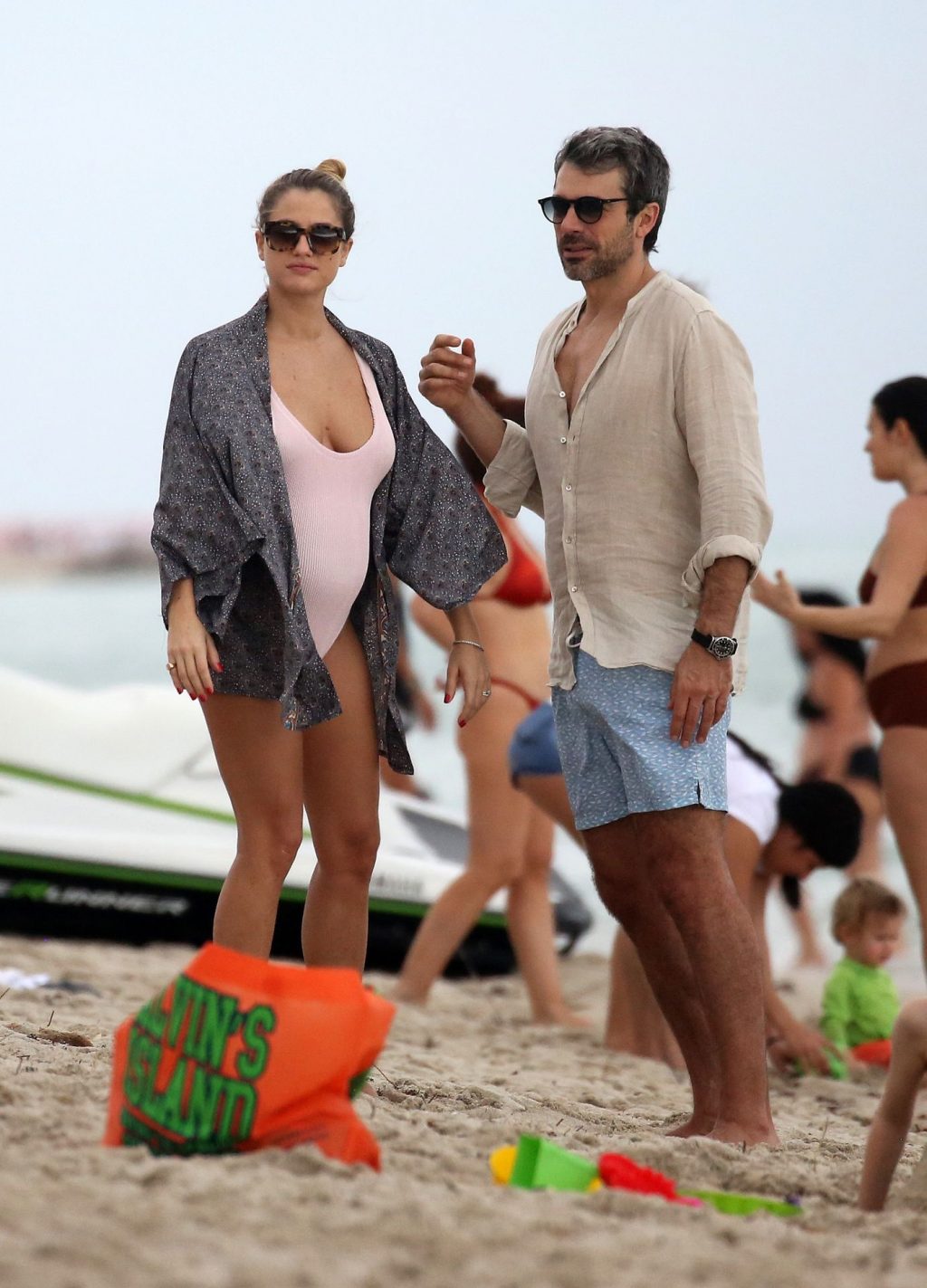 L’actrice Cristina Marino montre son ventre arrondi et toutes ses nouvelles courbes dans un maillot de bain très révélateur alors qu’elle se rend à la plage avec Luca Argentero à Miami le jour de la Saint-Sylvestre, le 31/12/2019.