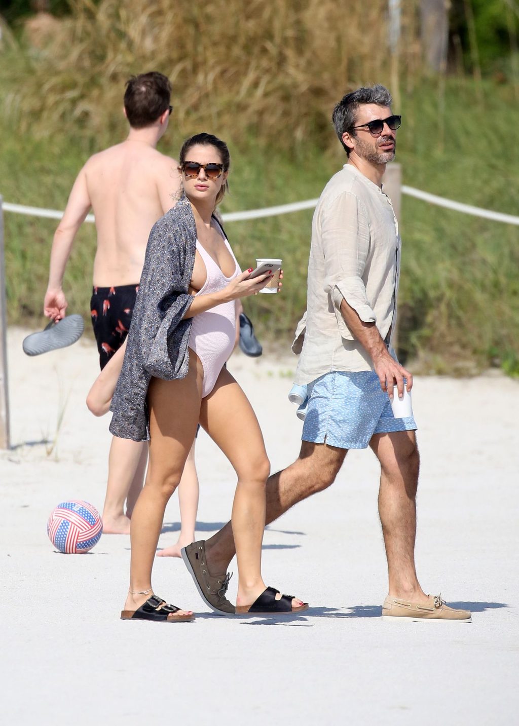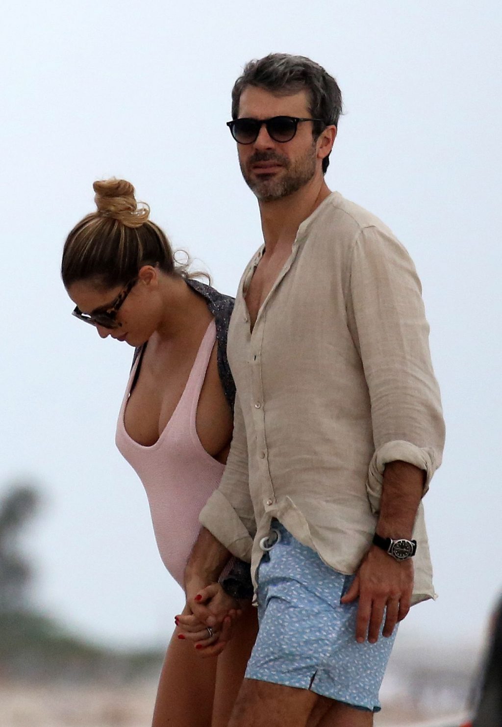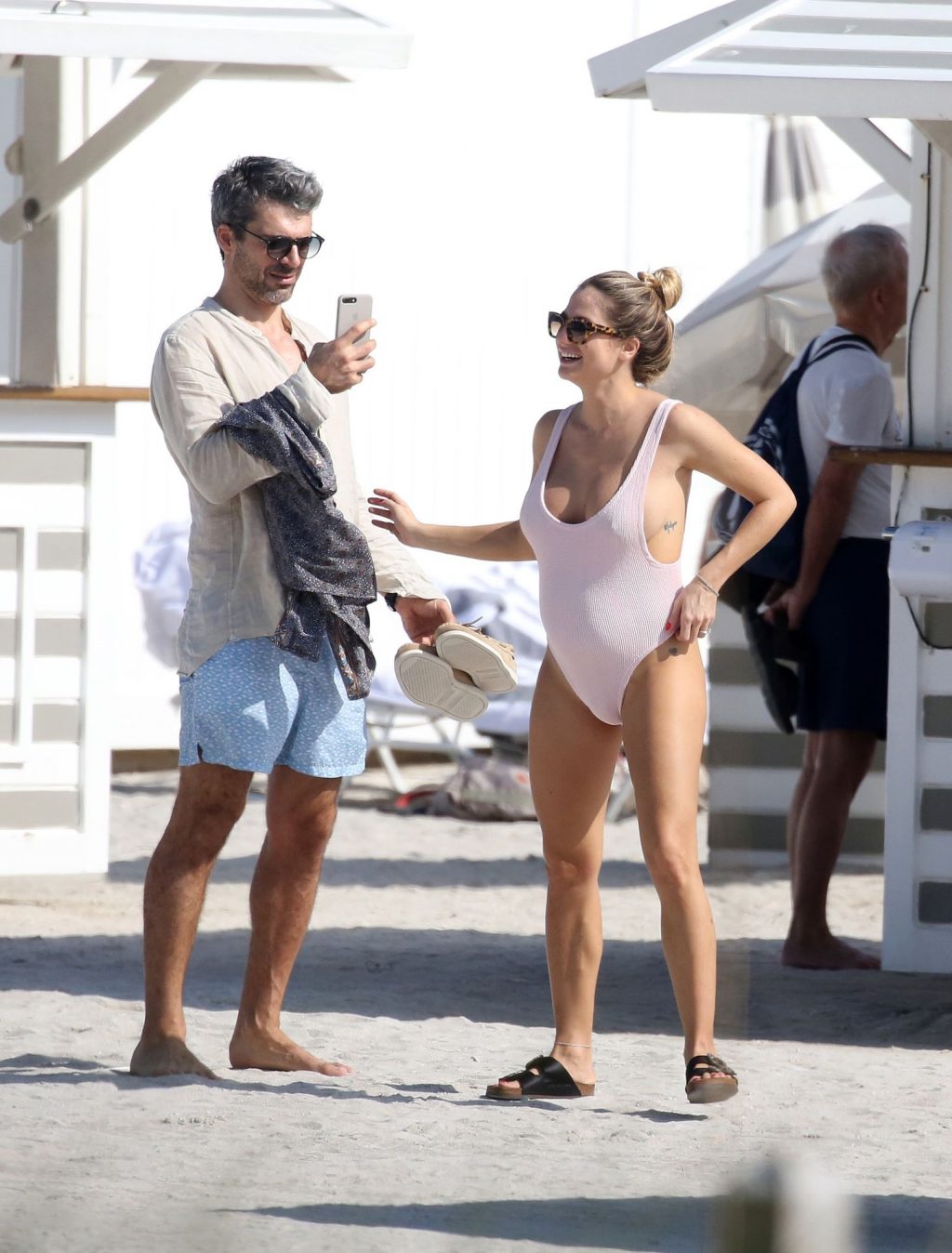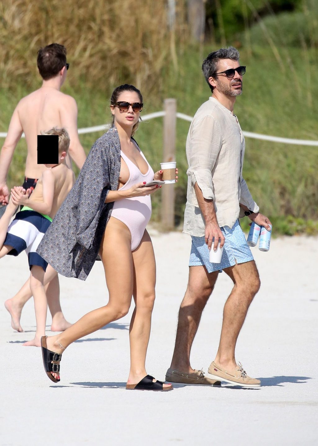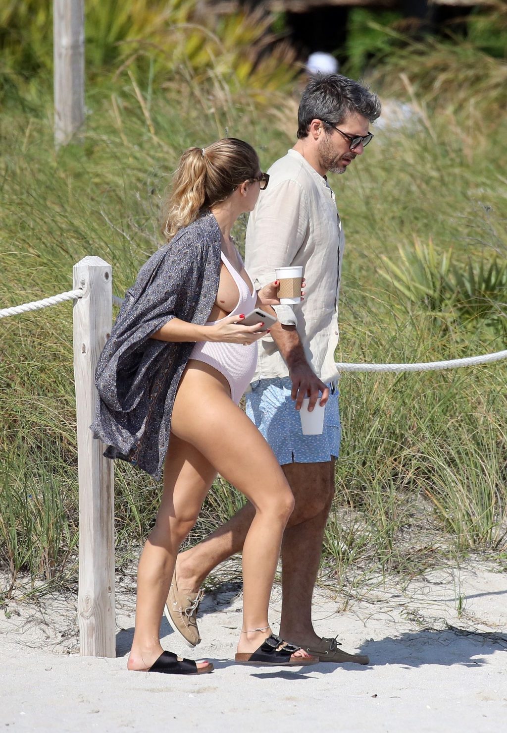 L’actrice Cristina Marino montre son ventre arrondi et toutes ses nouvelles courbes dans un maillot de bain très révélateur alors qu’elle se rend à la plage avec Luca Argentero à Miami le jour de la Saint-Sylvestre, le 31/12/2019.