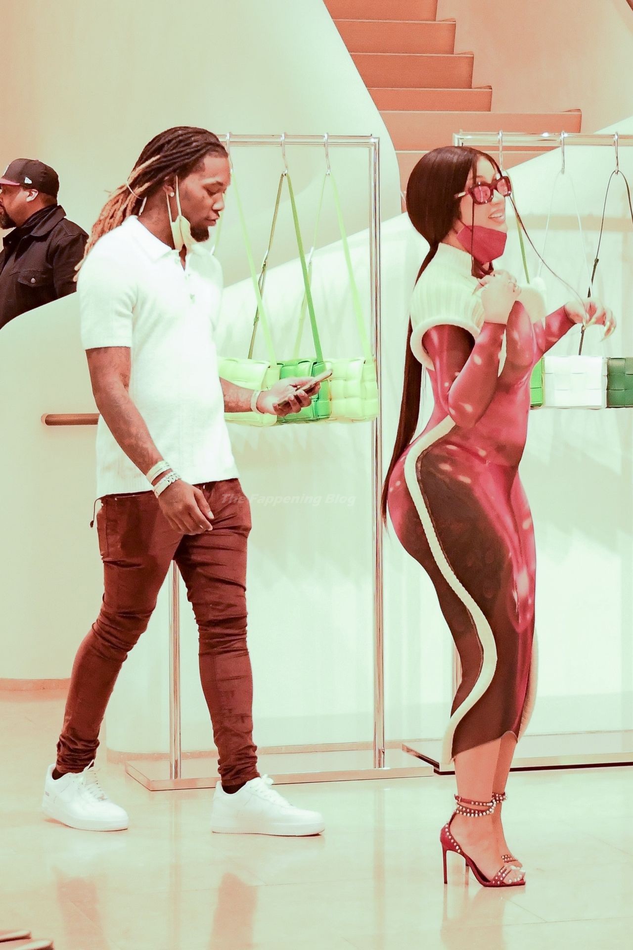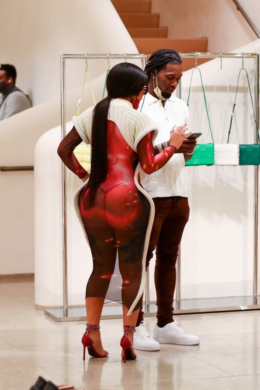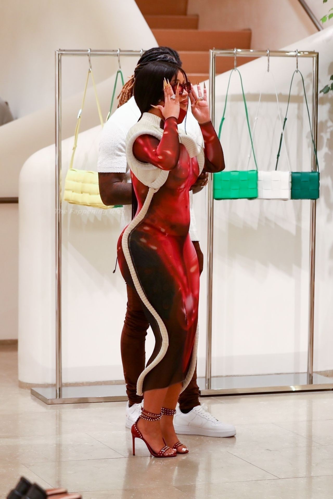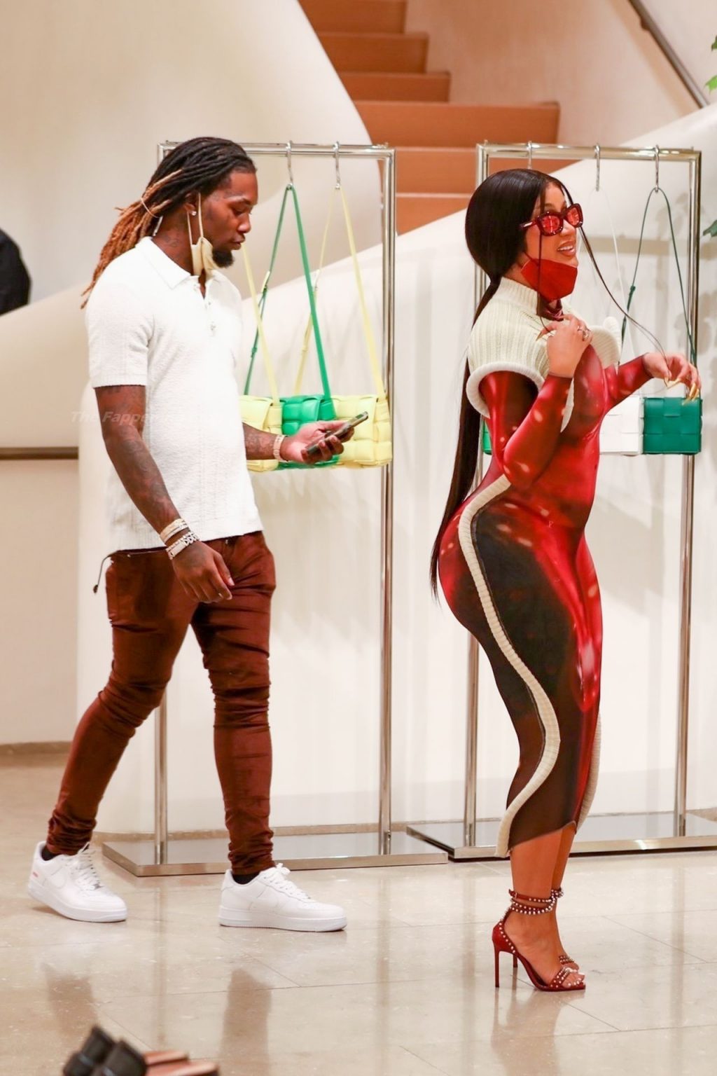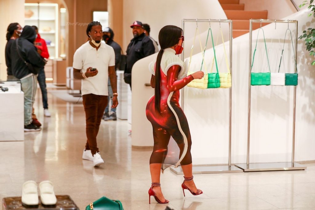 La star du Fappening Cardi B et Offset semblent être de très bonne humeur lors de leurs achats chez Bottega Veneta à Beverly Hills, le 22/01/2021.