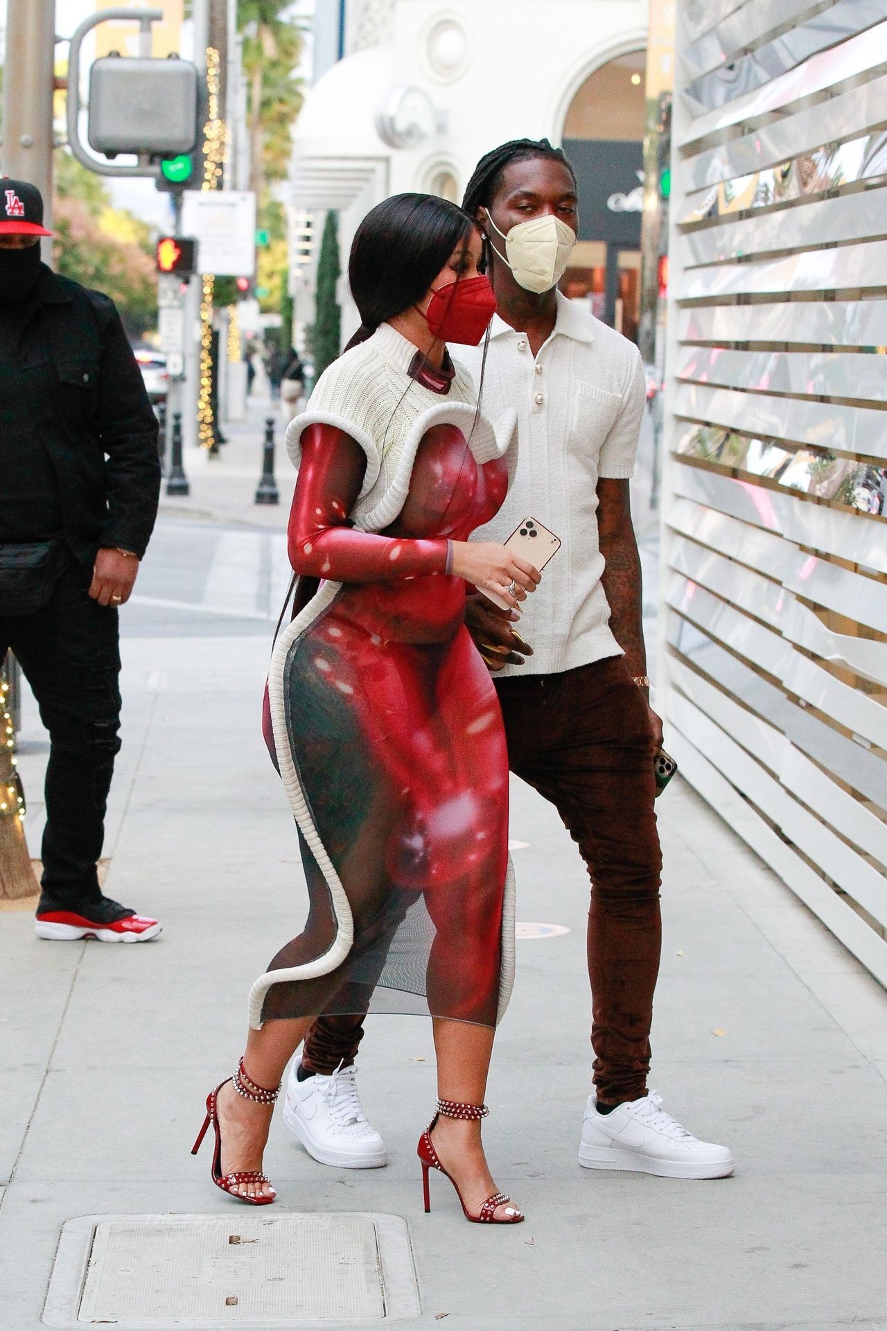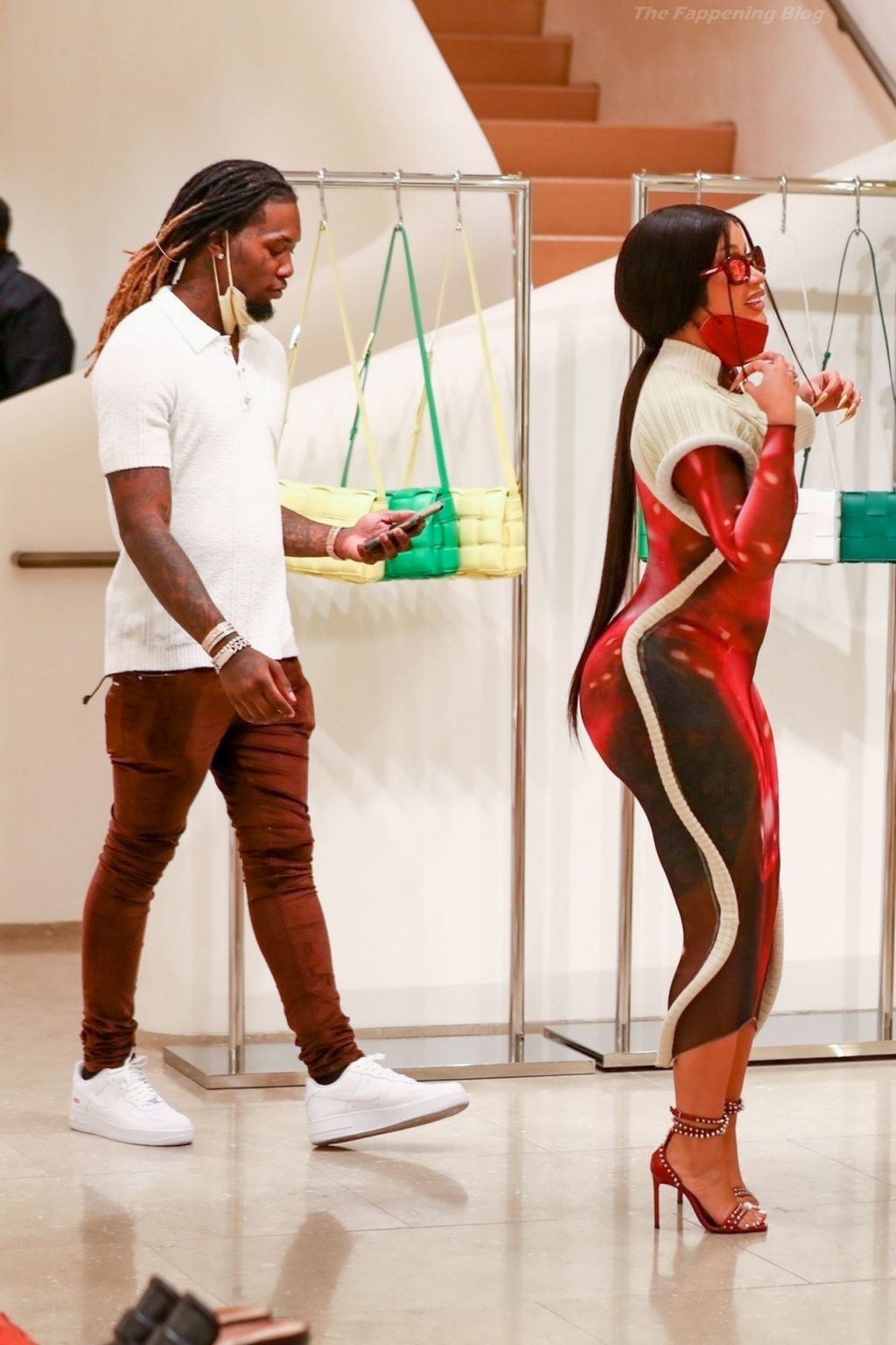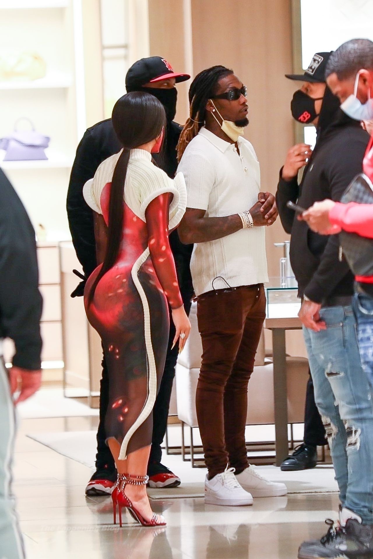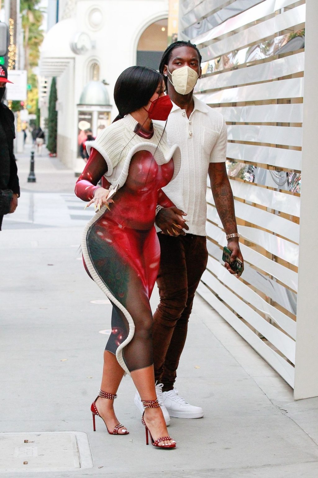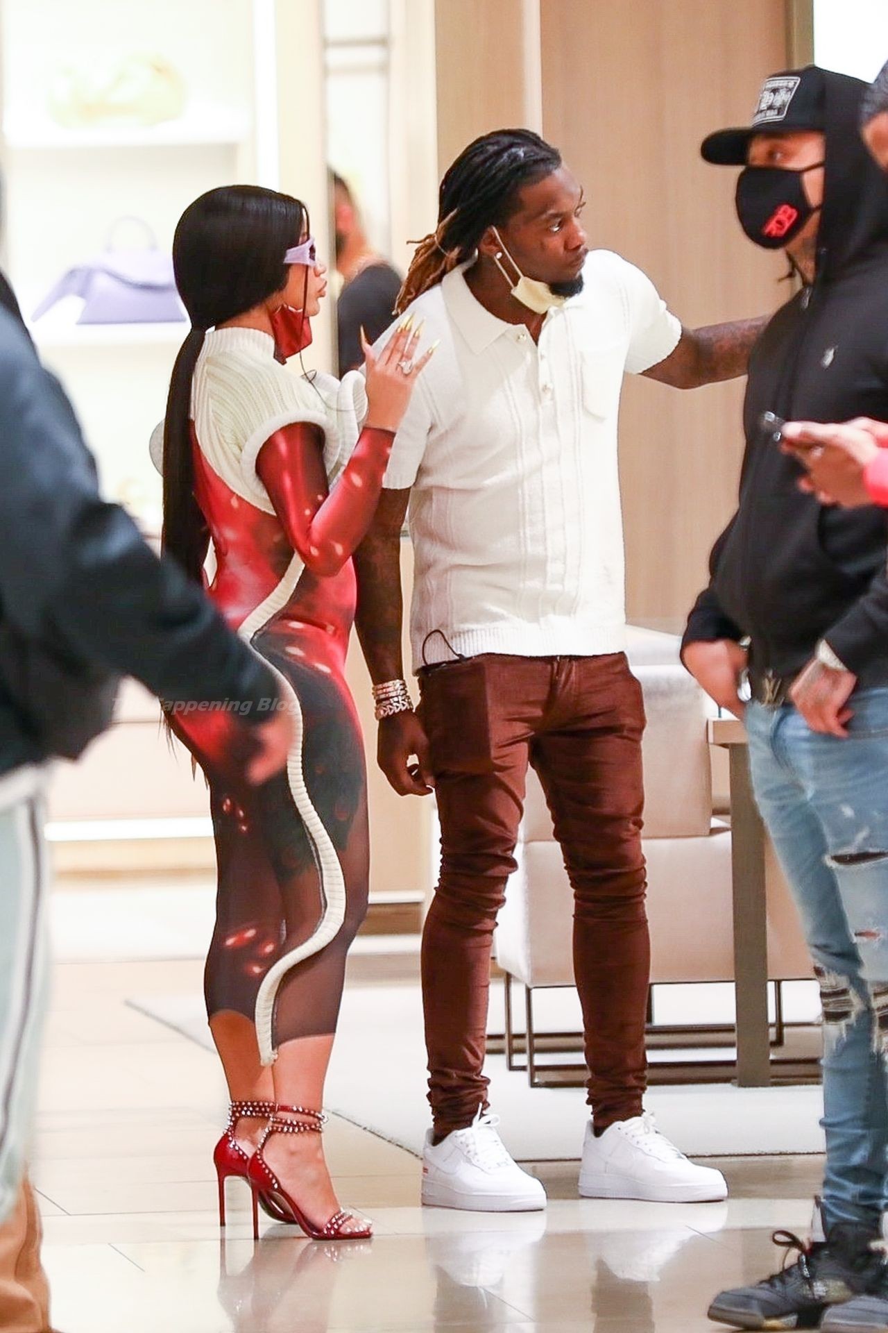 La star du Fappening Cardi B et Offset semblent être de très bonne humeur lors de leurs achats chez Bottega Veneta à Beverly Hills, le 22/01/2021.