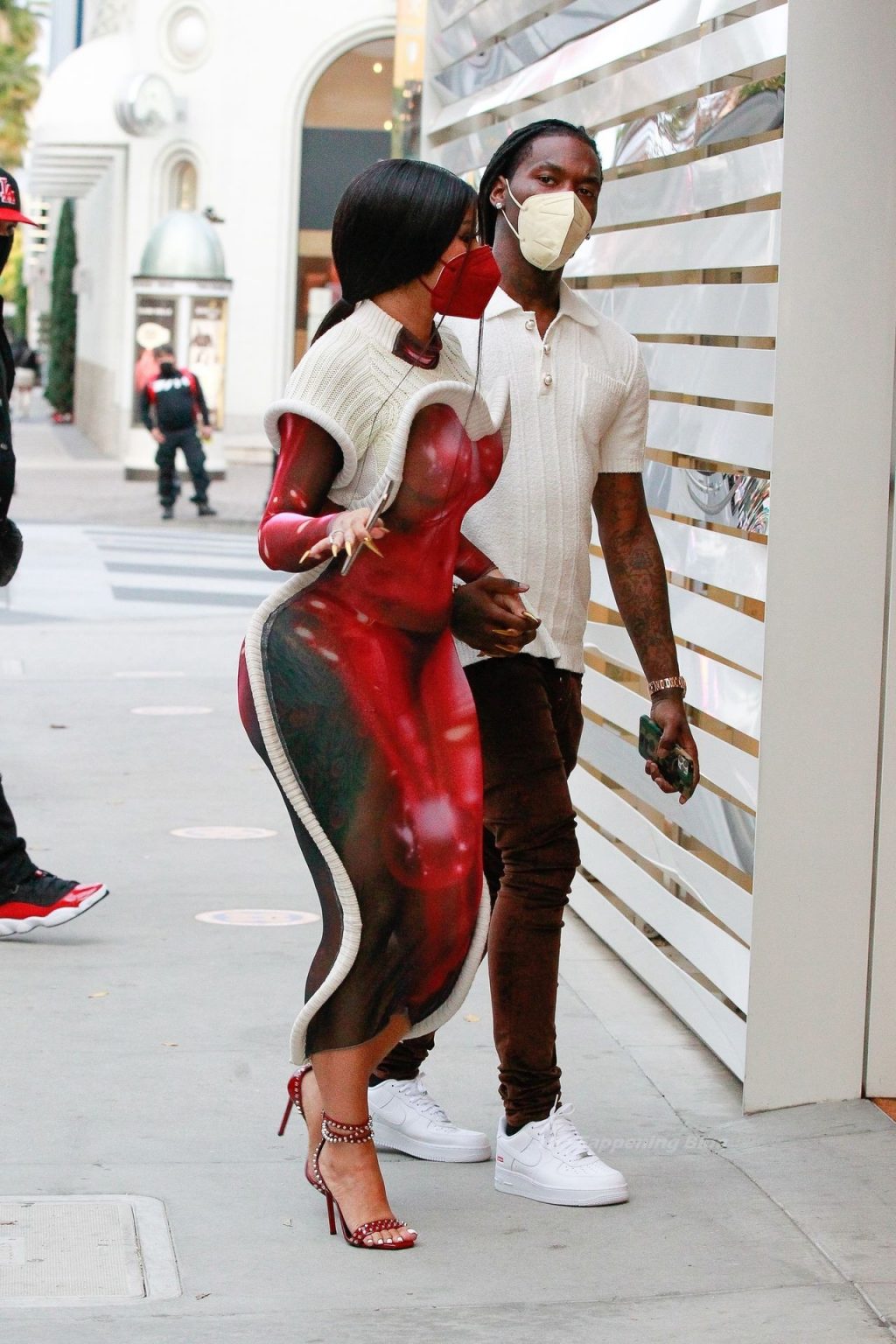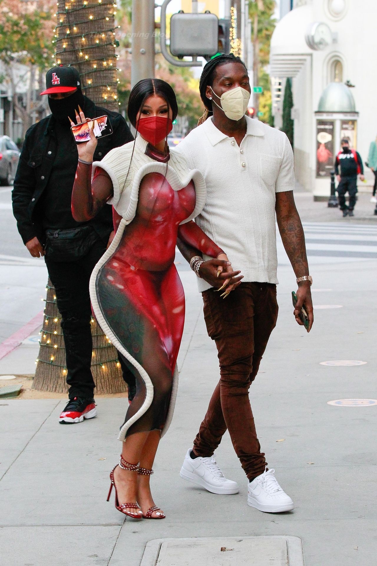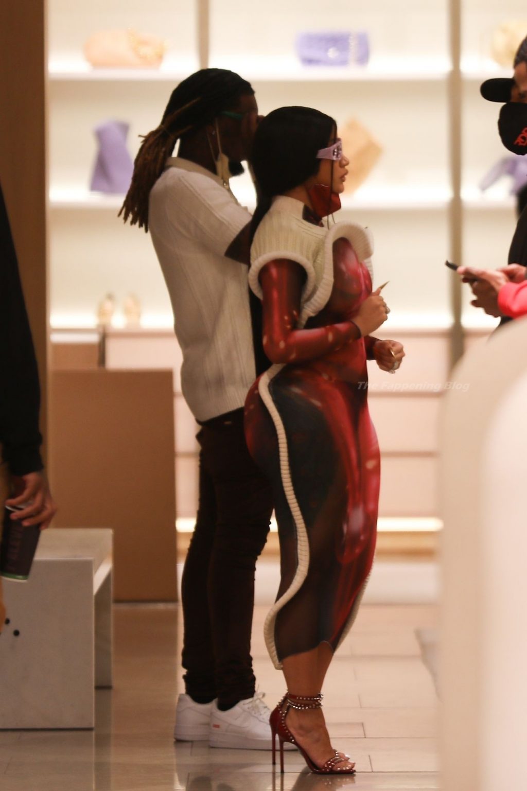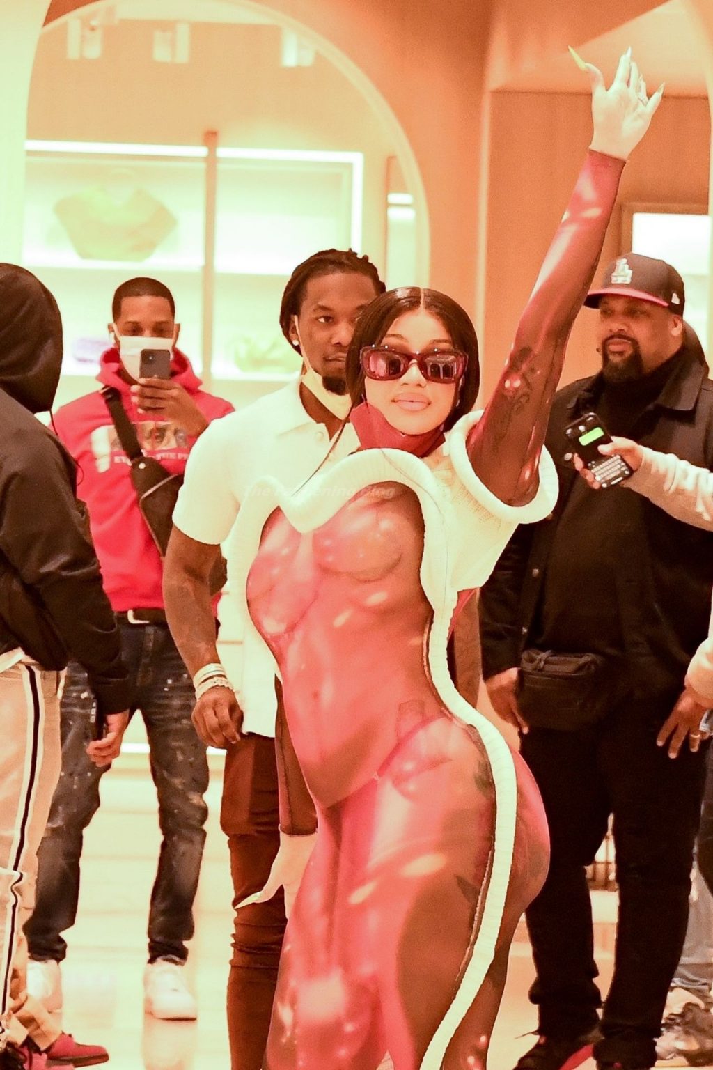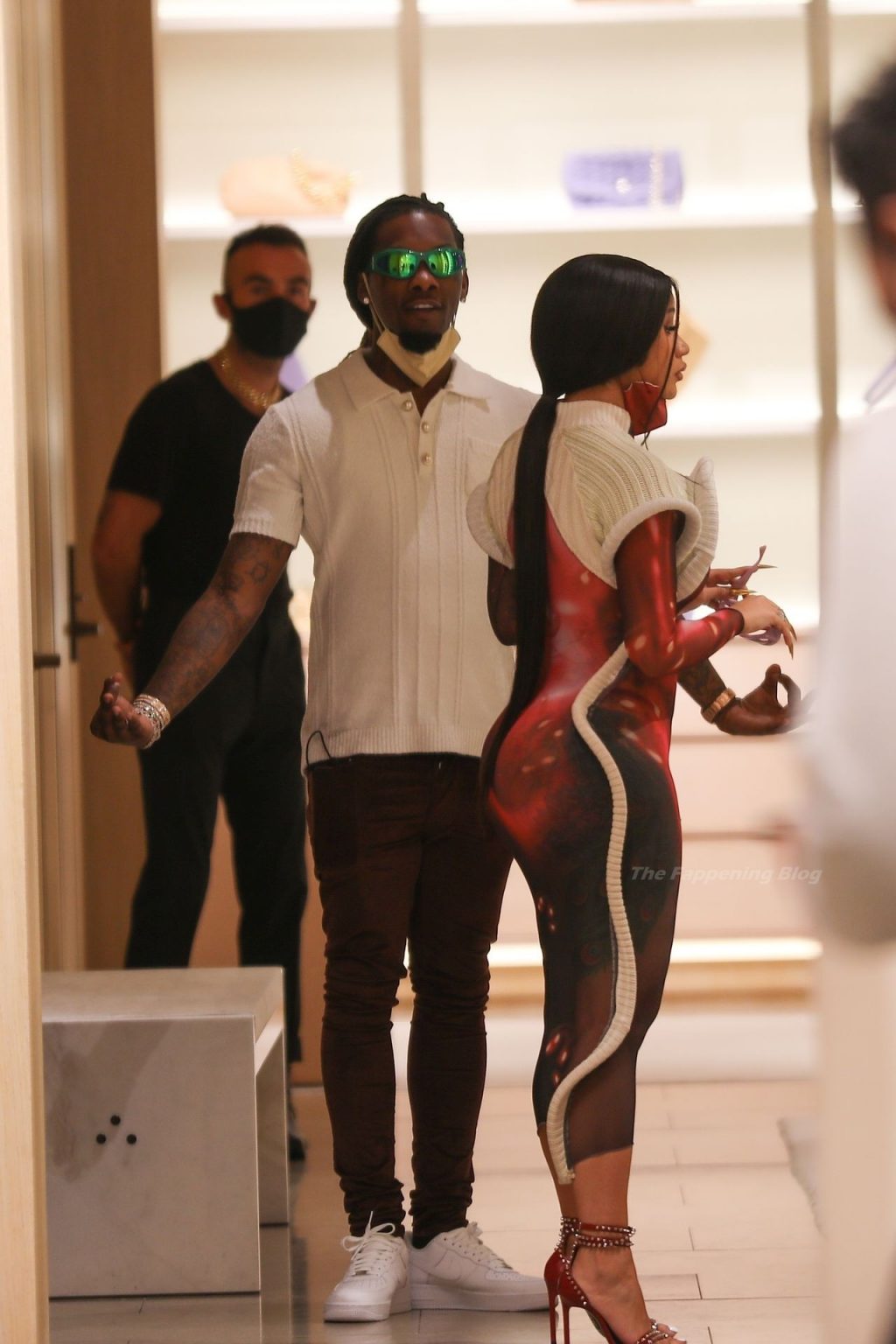 La star du Fappening Cardi B et Offset semblent être de très bonne humeur lors de leurs achats chez Bottega Veneta à Beverly Hills, le 22/01/2021.