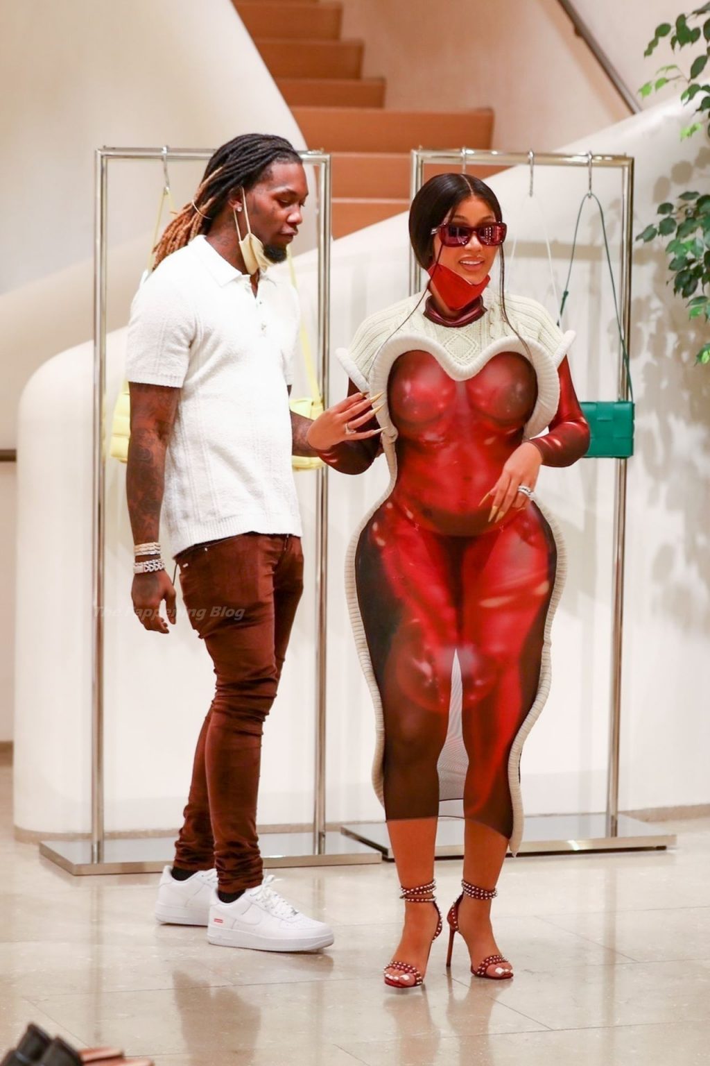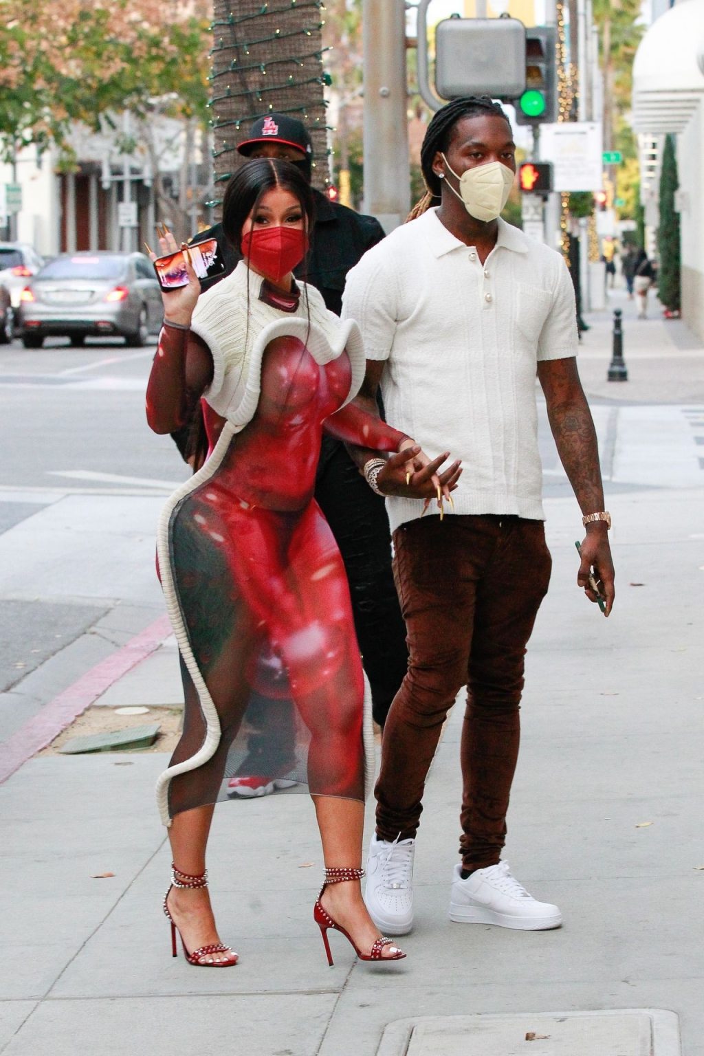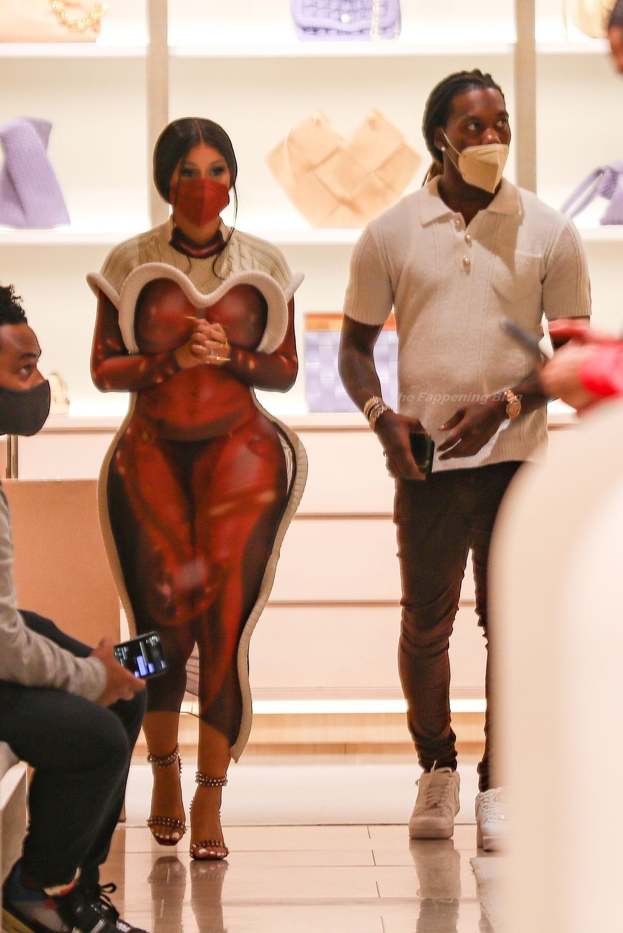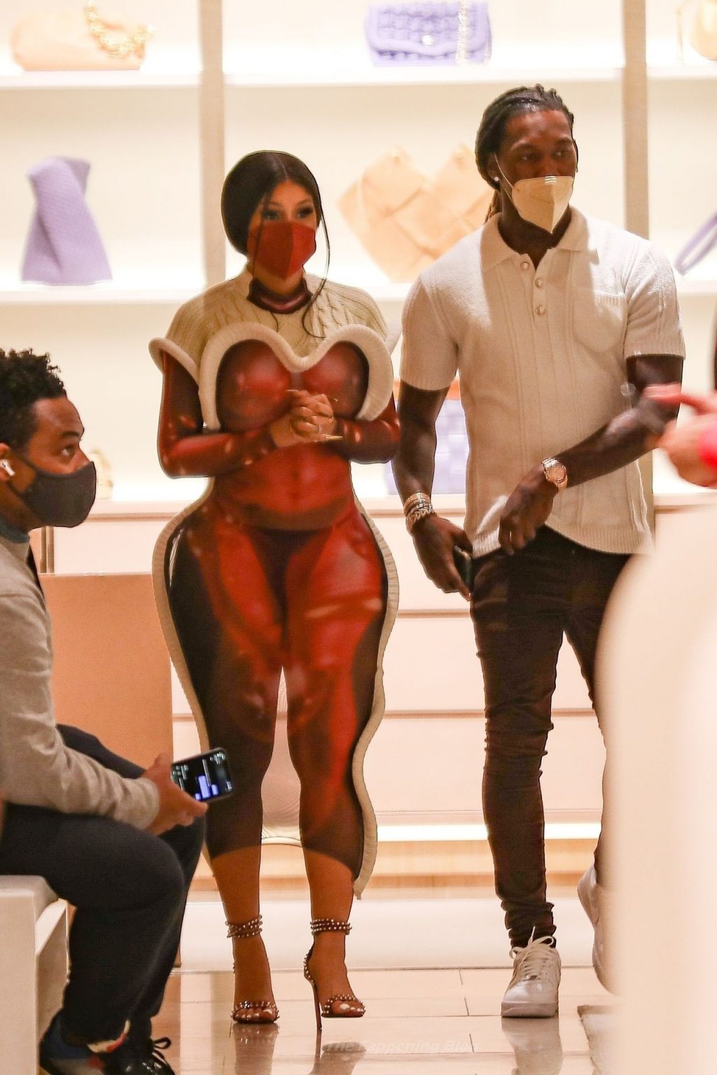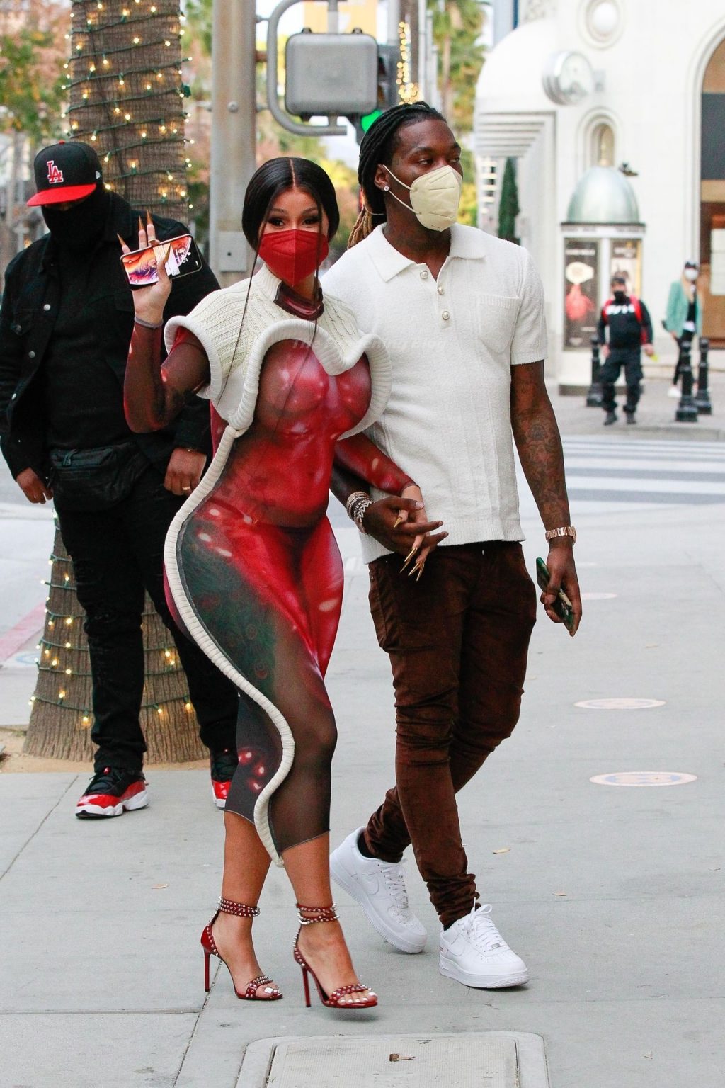 La star du Fappening Cardi B et Offset semblent être de très bonne humeur lors de leurs achats chez Bottega Veneta à Beverly Hills, le 22/01/2021.