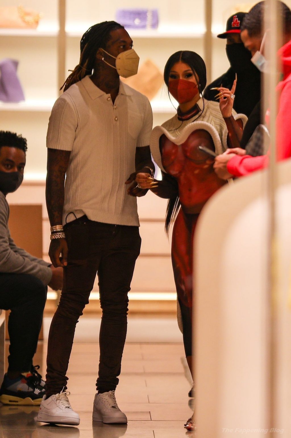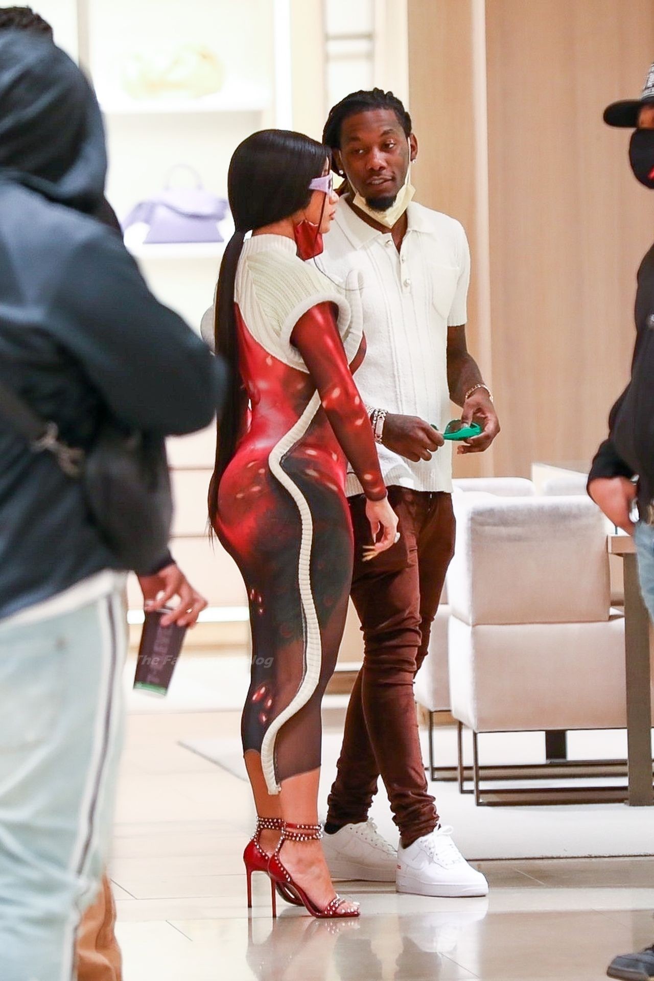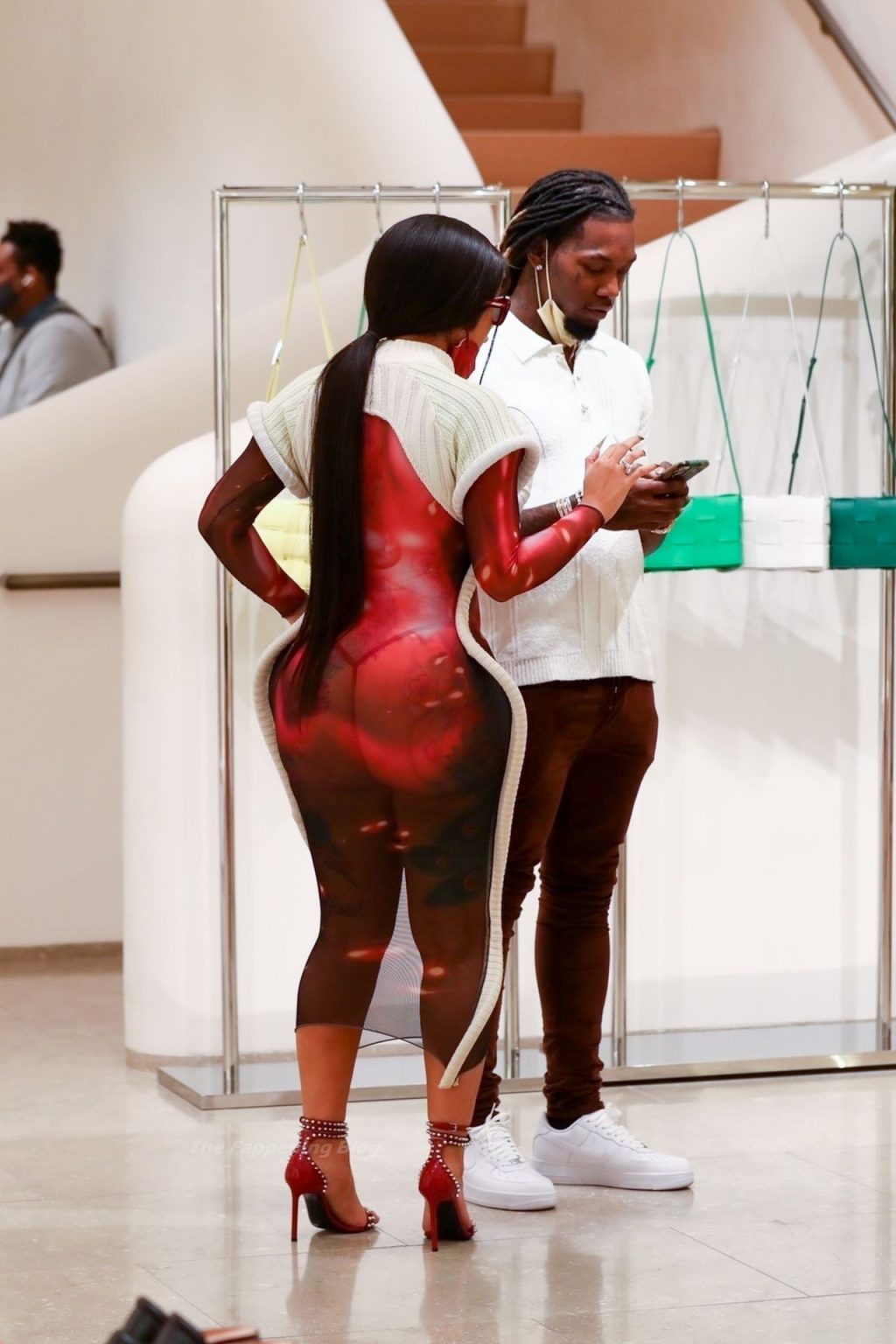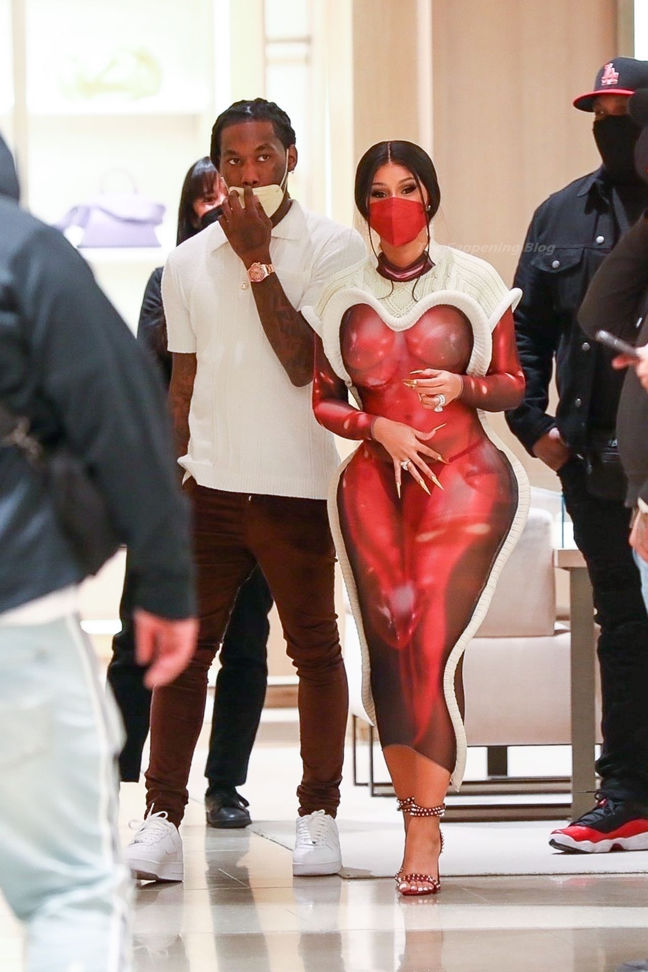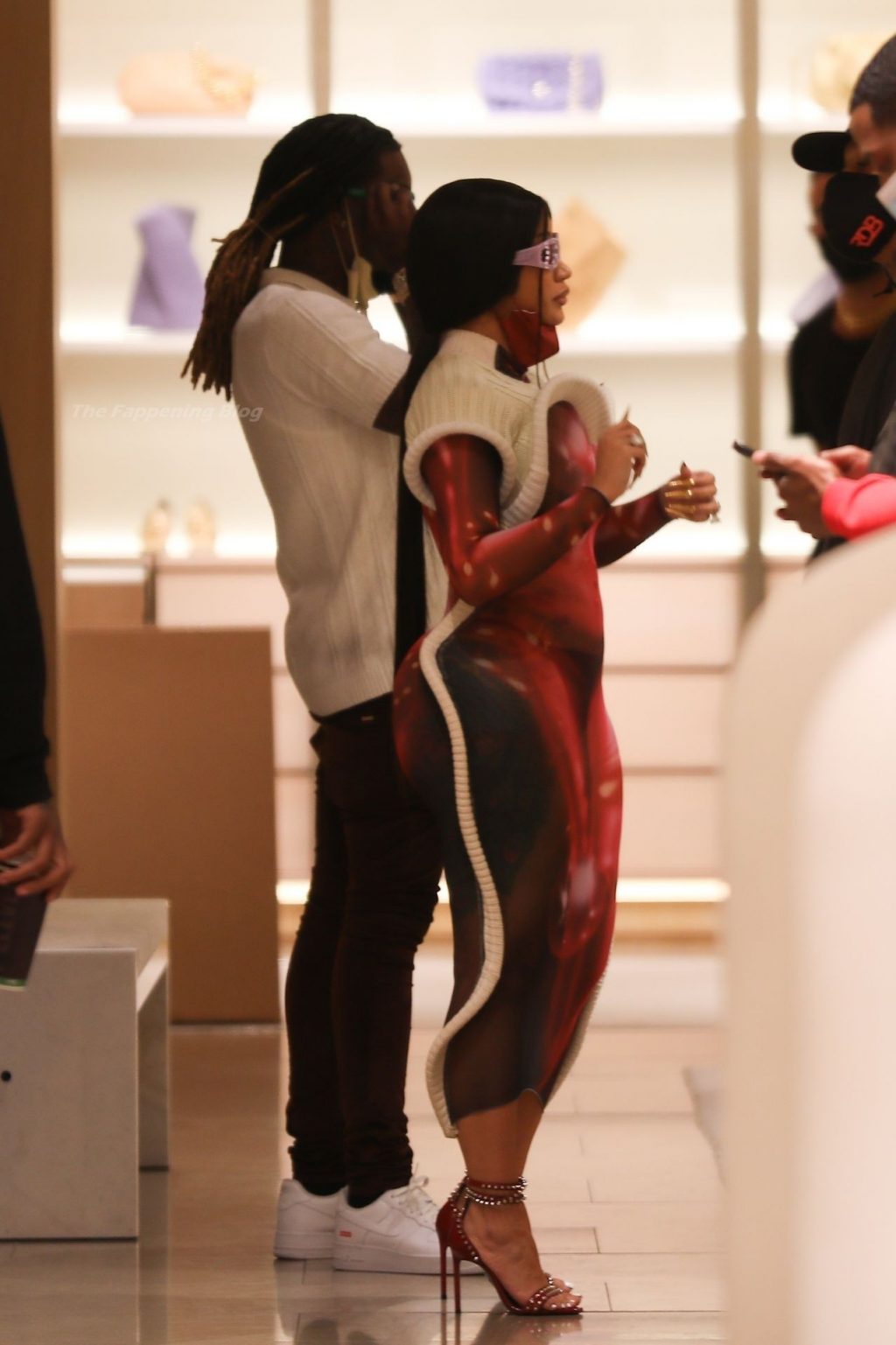 La star du Fappening Cardi B et Offset semblent être de très bonne humeur lors de leurs achats chez Bottega Veneta à Beverly Hills, le 22/01/2021.