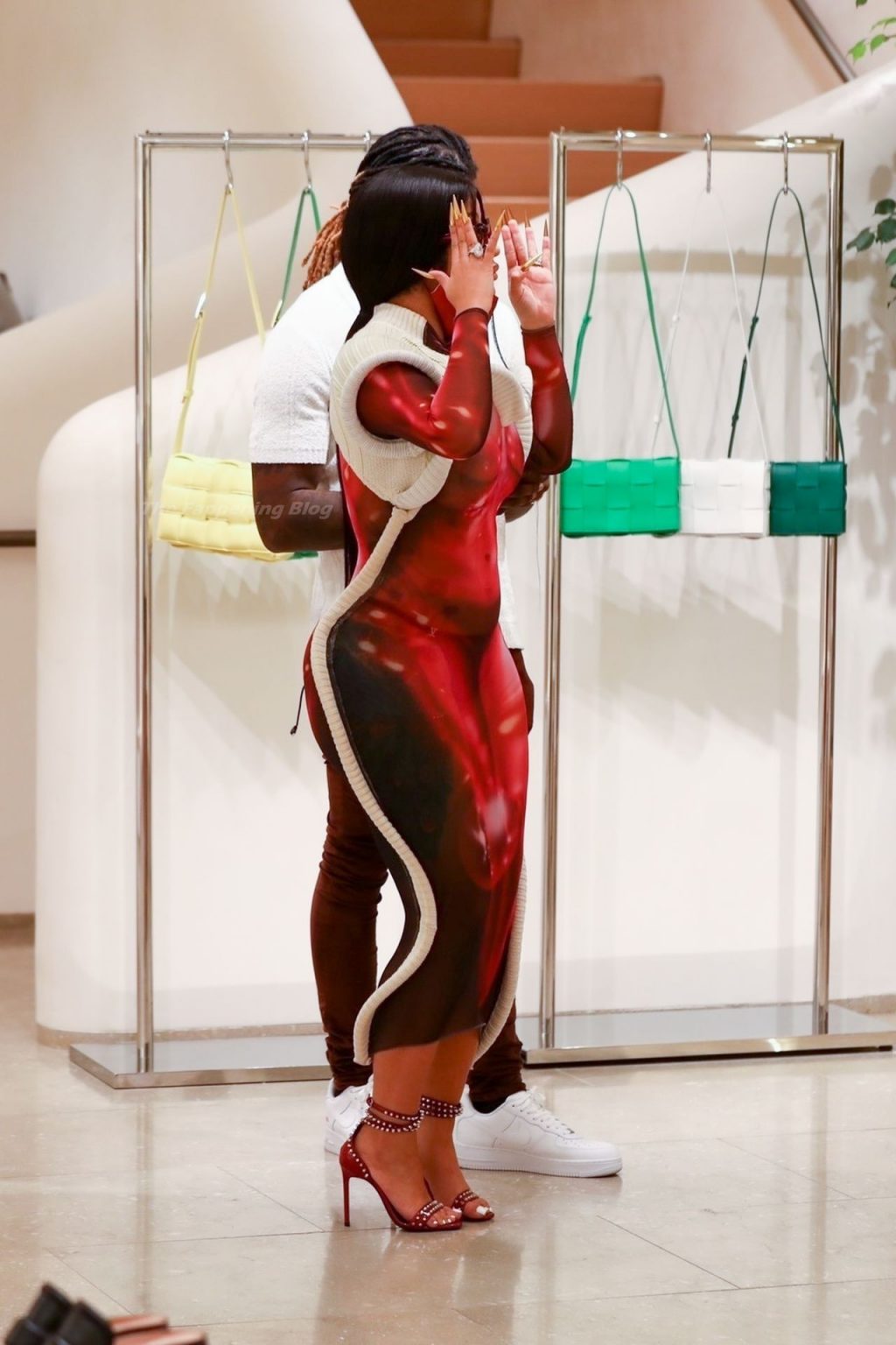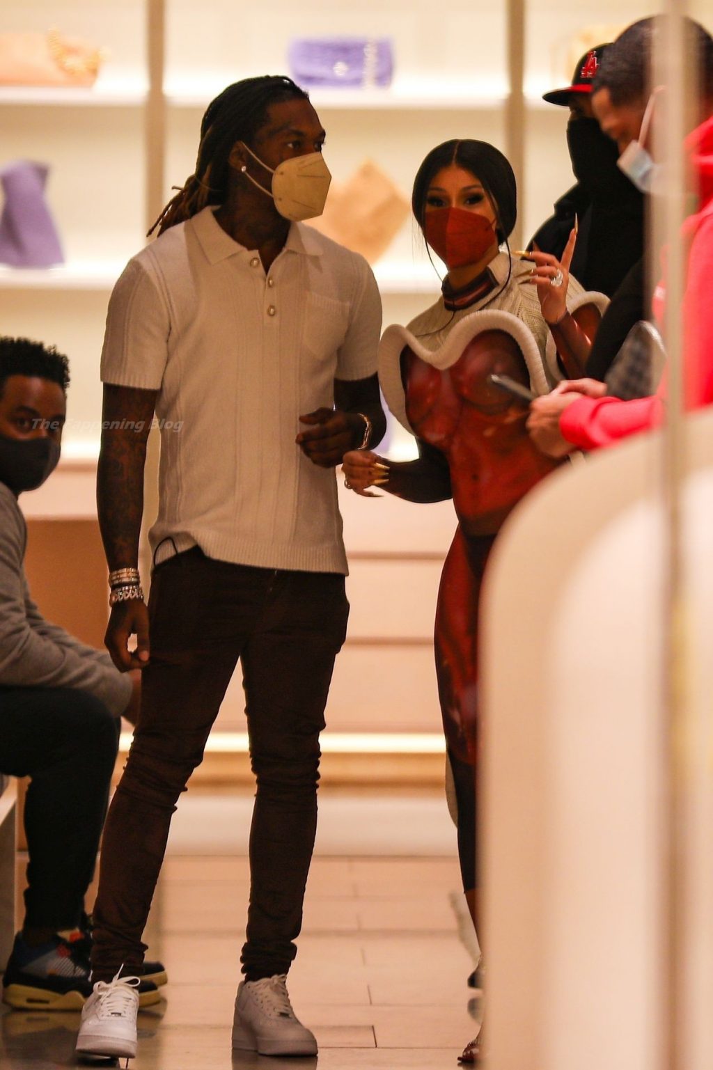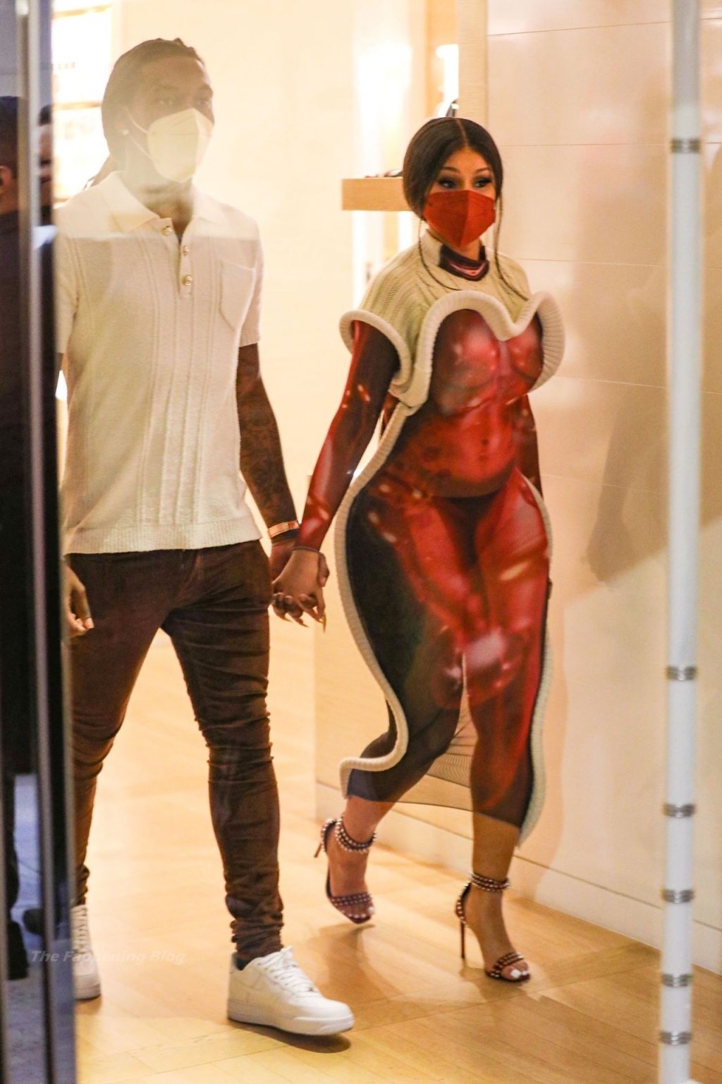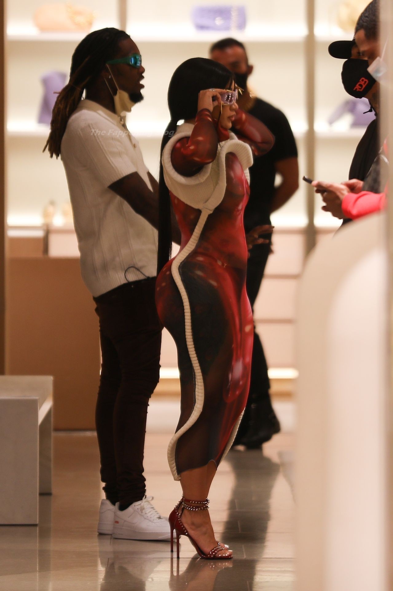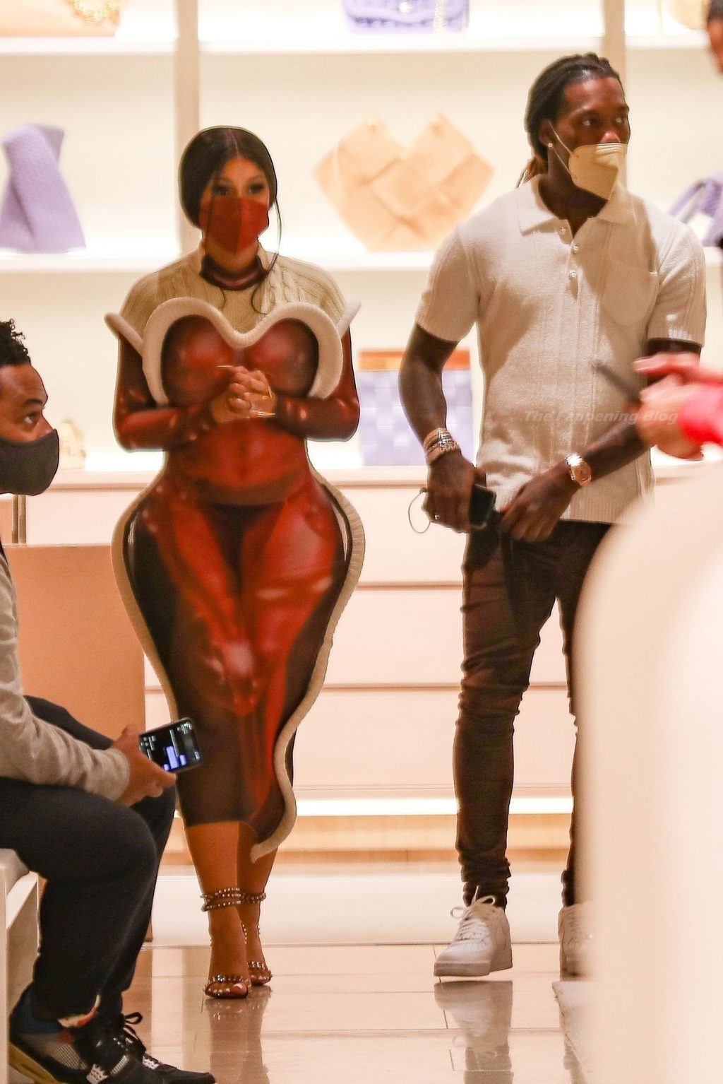 La star du Fappening Cardi B et Offset semblent être de très bonne humeur lors de leurs achats chez Bottega Veneta à Beverly Hills, le 22/01/2021.