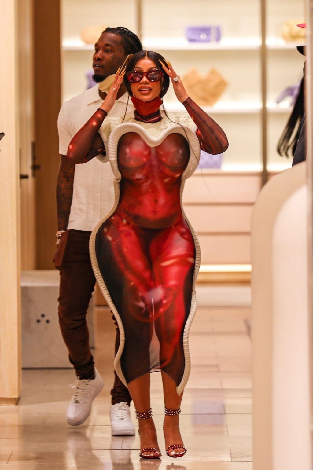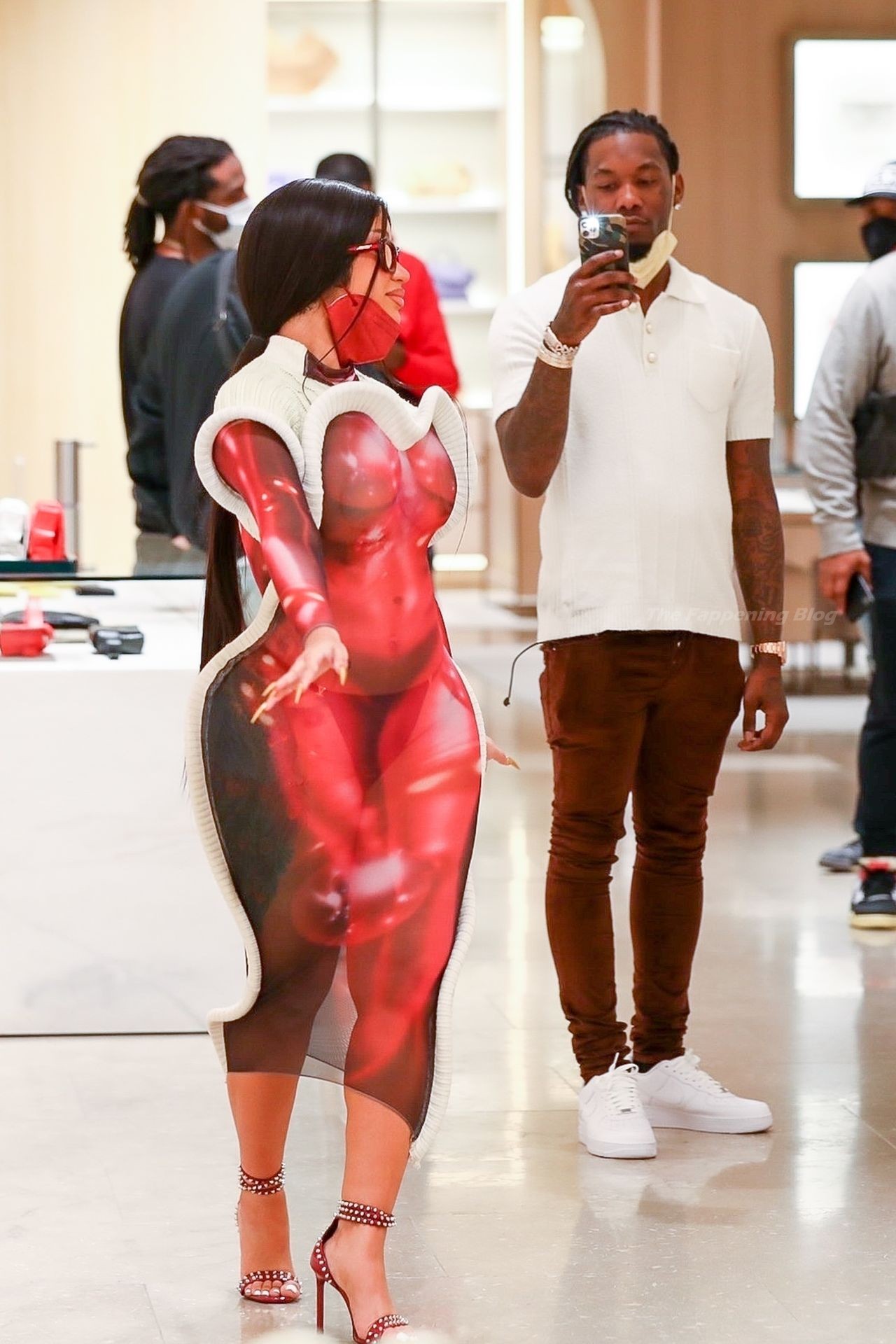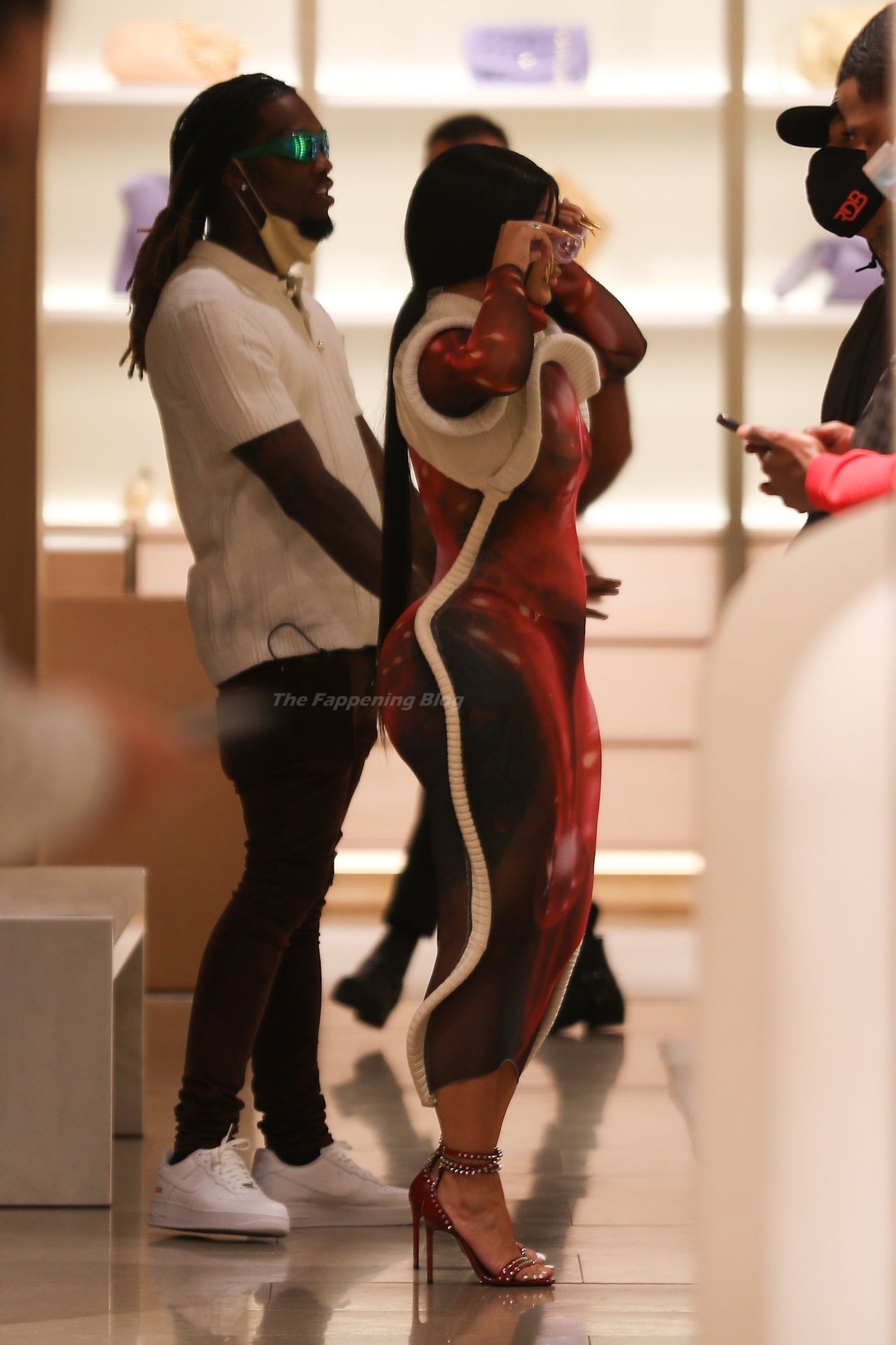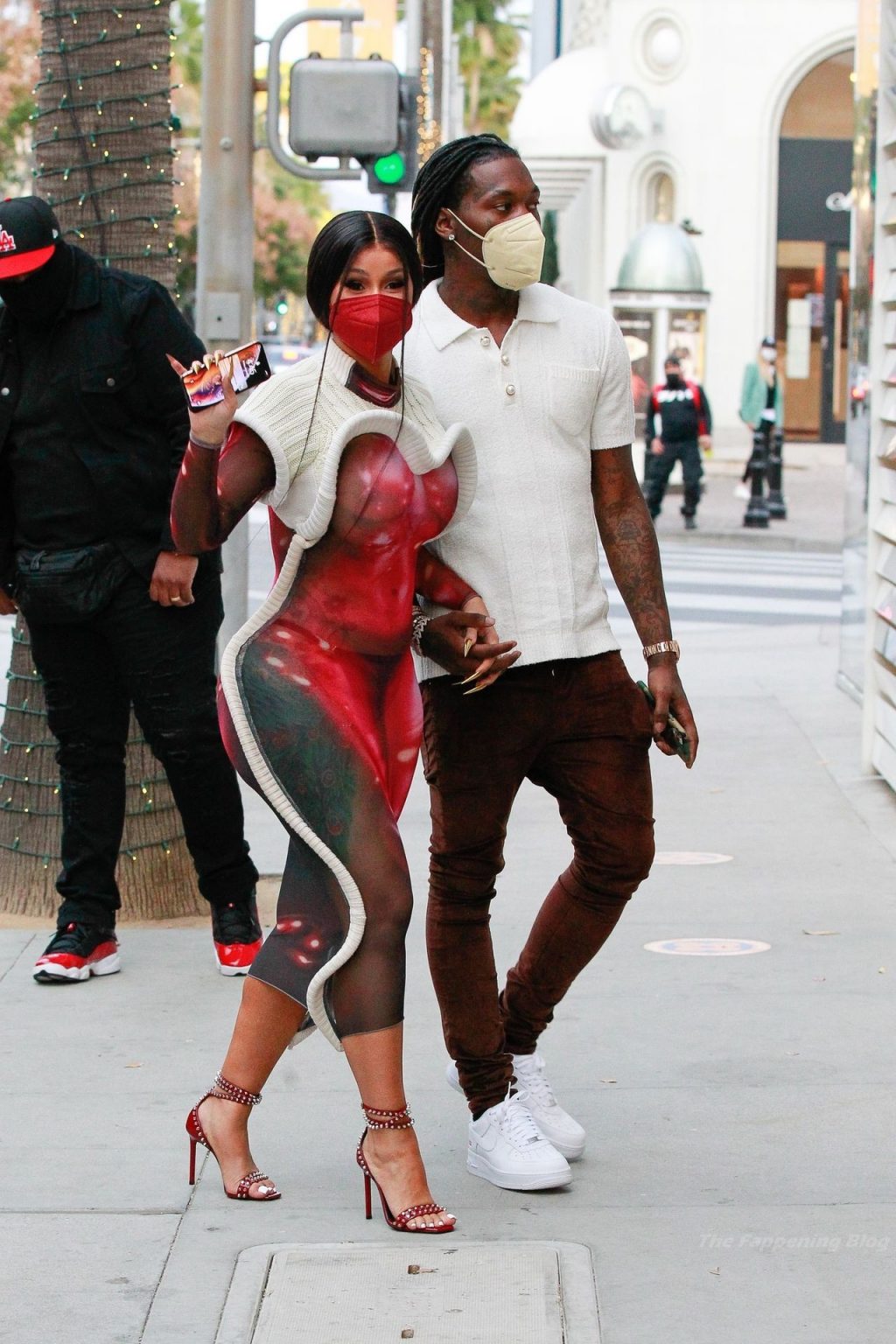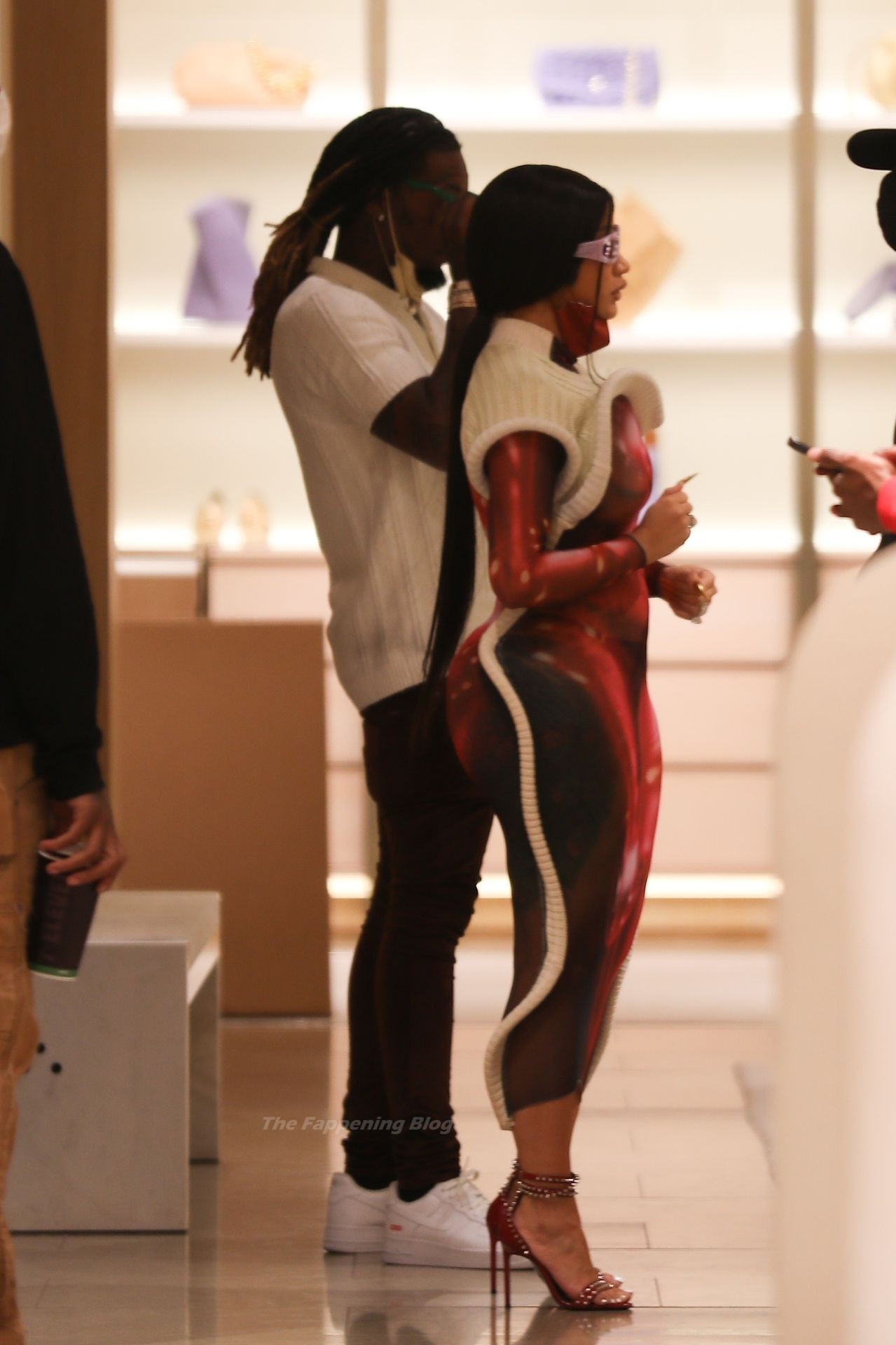 La star du Fappening Cardi B et Offset semblent être de très bonne humeur lors de leurs achats chez Bottega Veneta à Beverly Hills, le 22/01/2021.