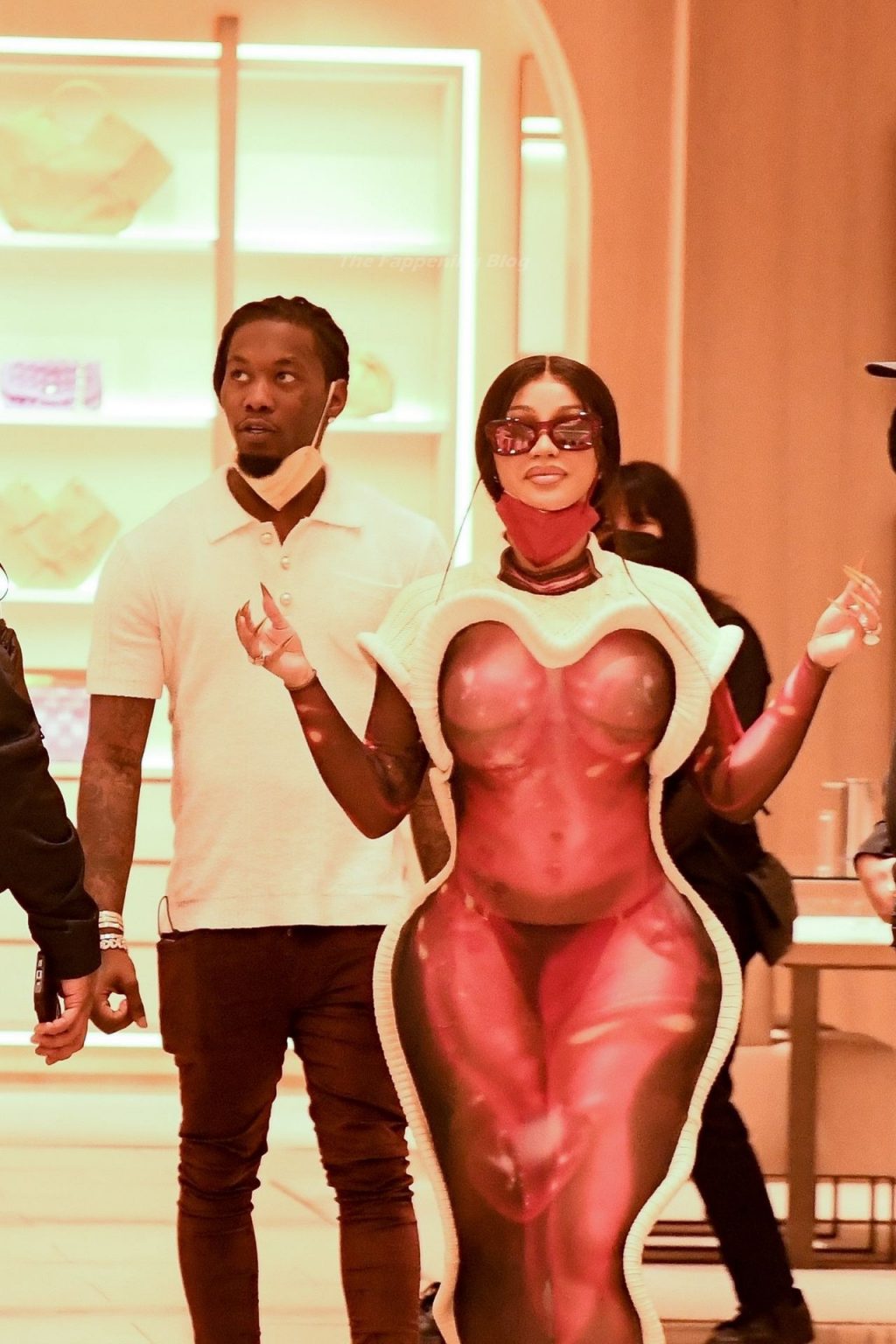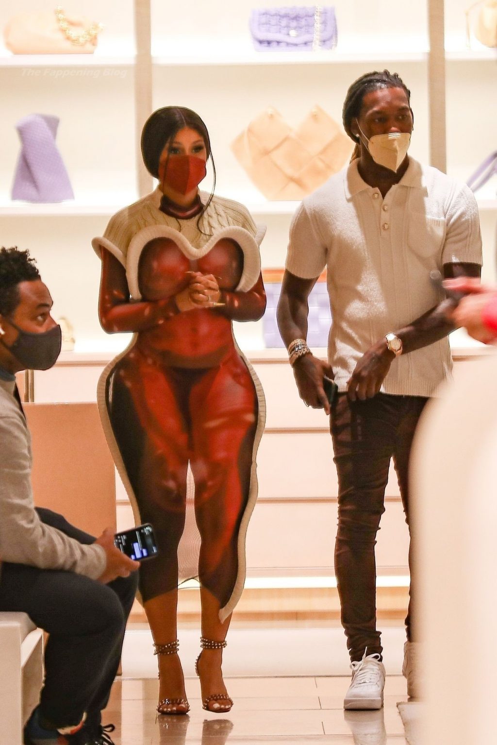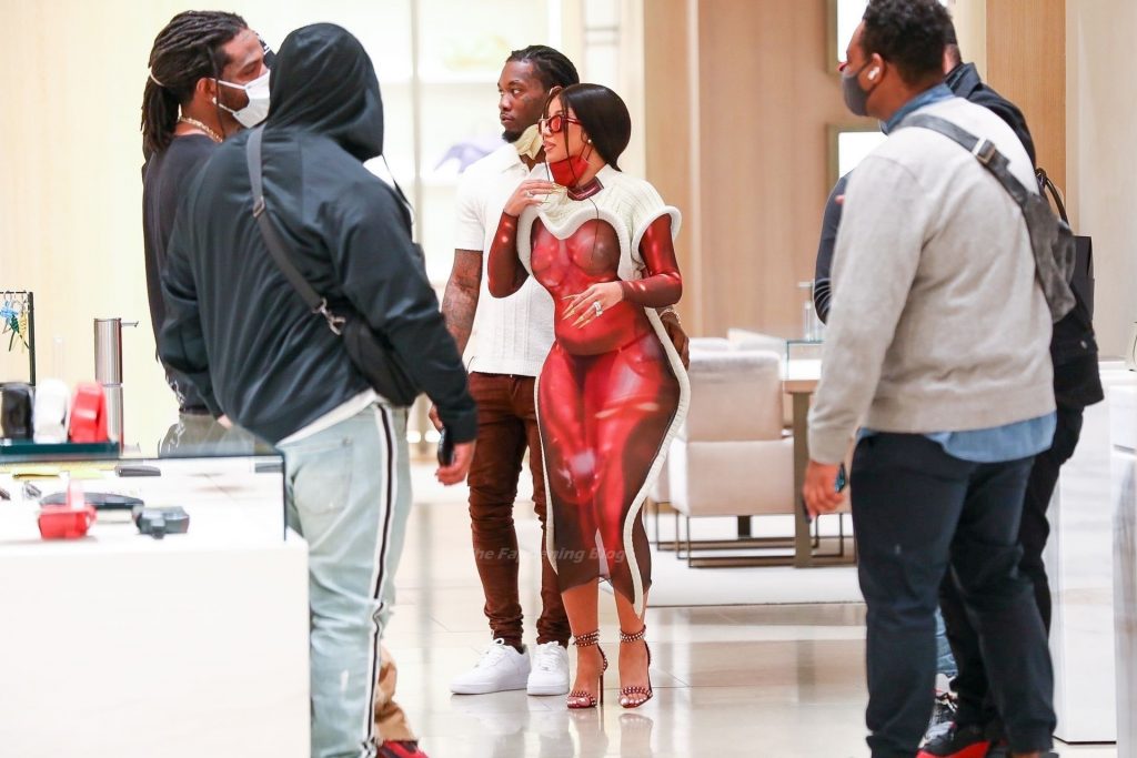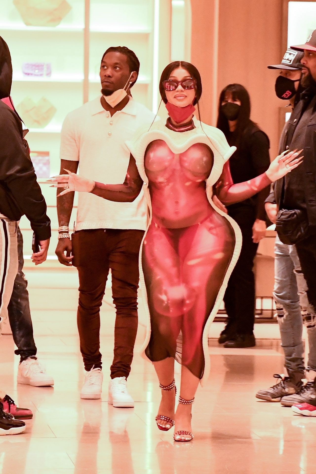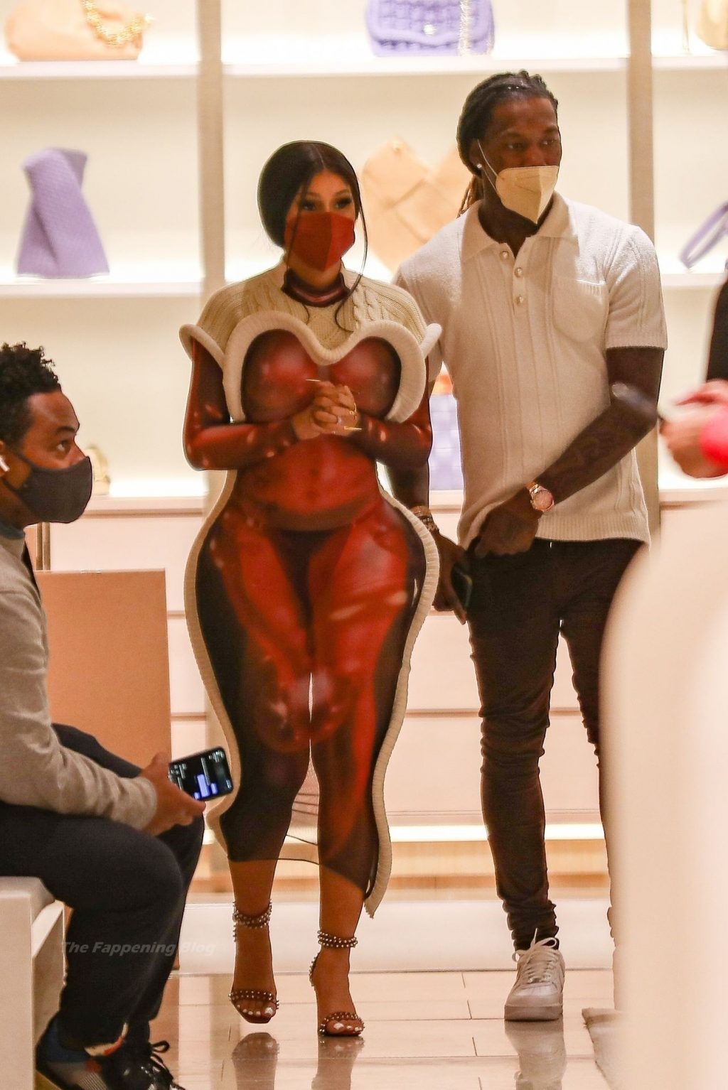 La star du Fappening Cardi B et Offset semblent être de très bonne humeur lors de leurs achats chez Bottega Veneta à Beverly Hills, le 22/01/2021.