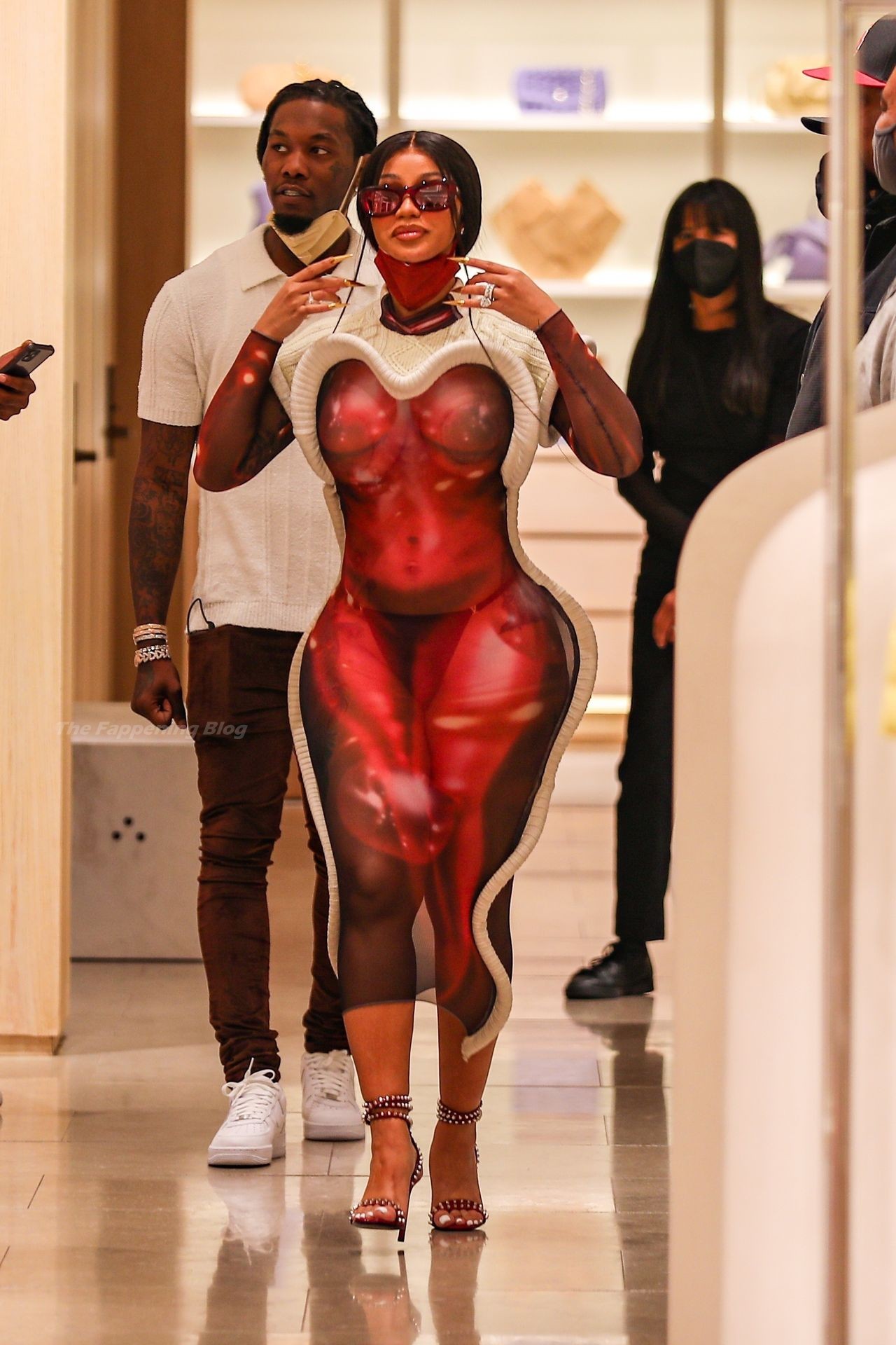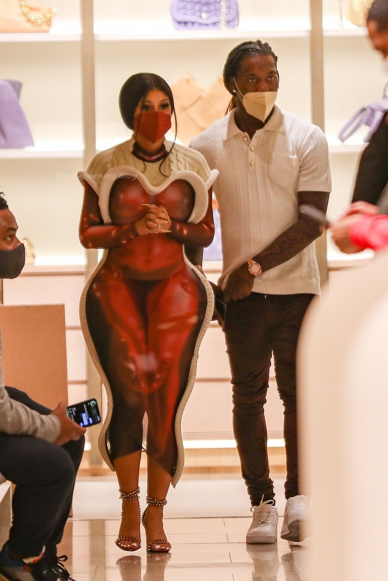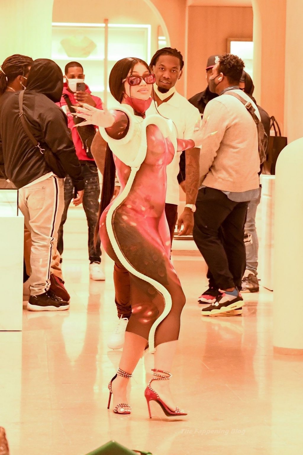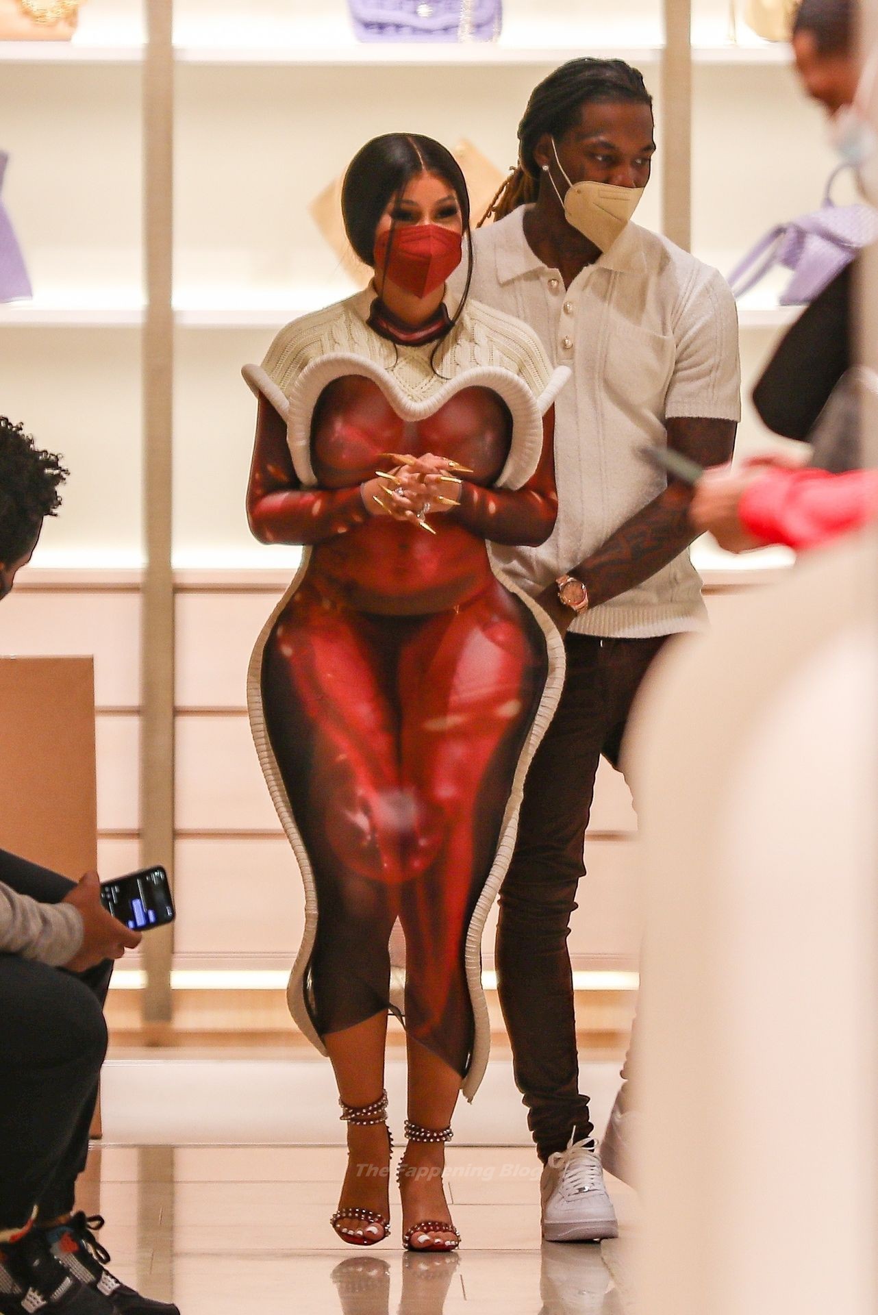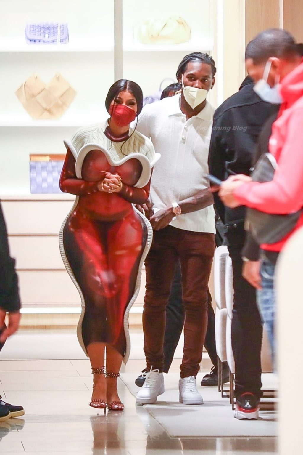 La star du Fappening Cardi B et Offset semblent être de très bonne humeur lors de leurs achats chez Bottega Veneta à Beverly Hills, le 22/01/2021.