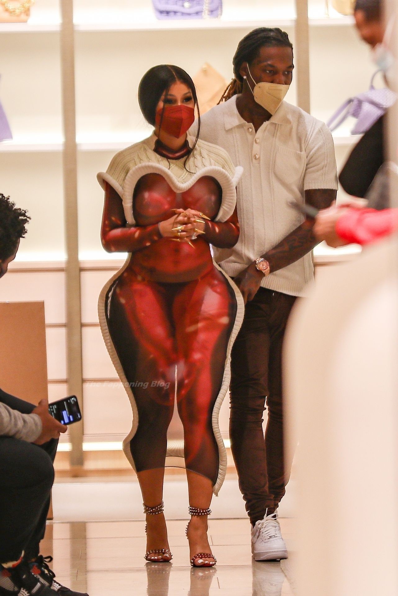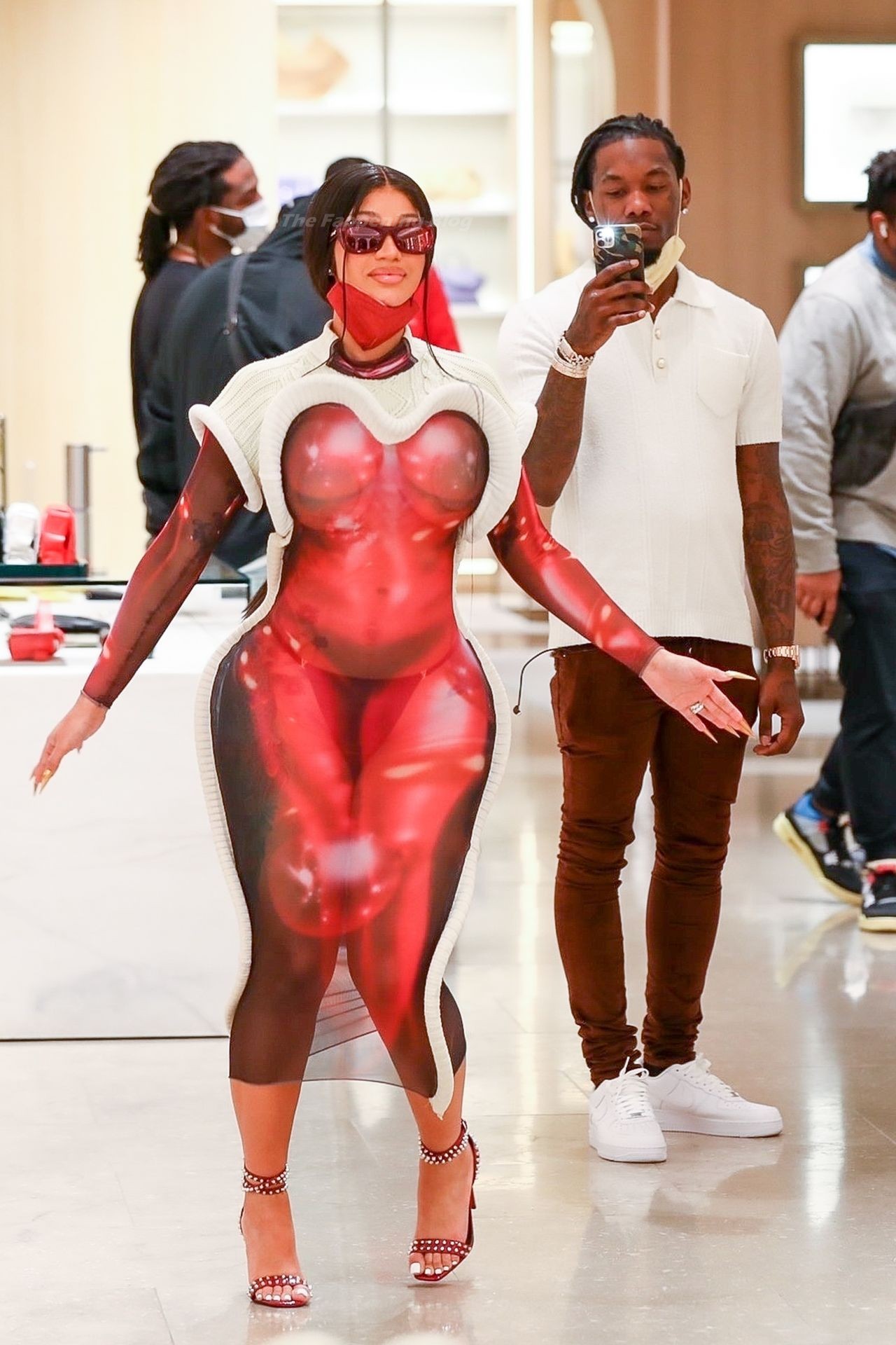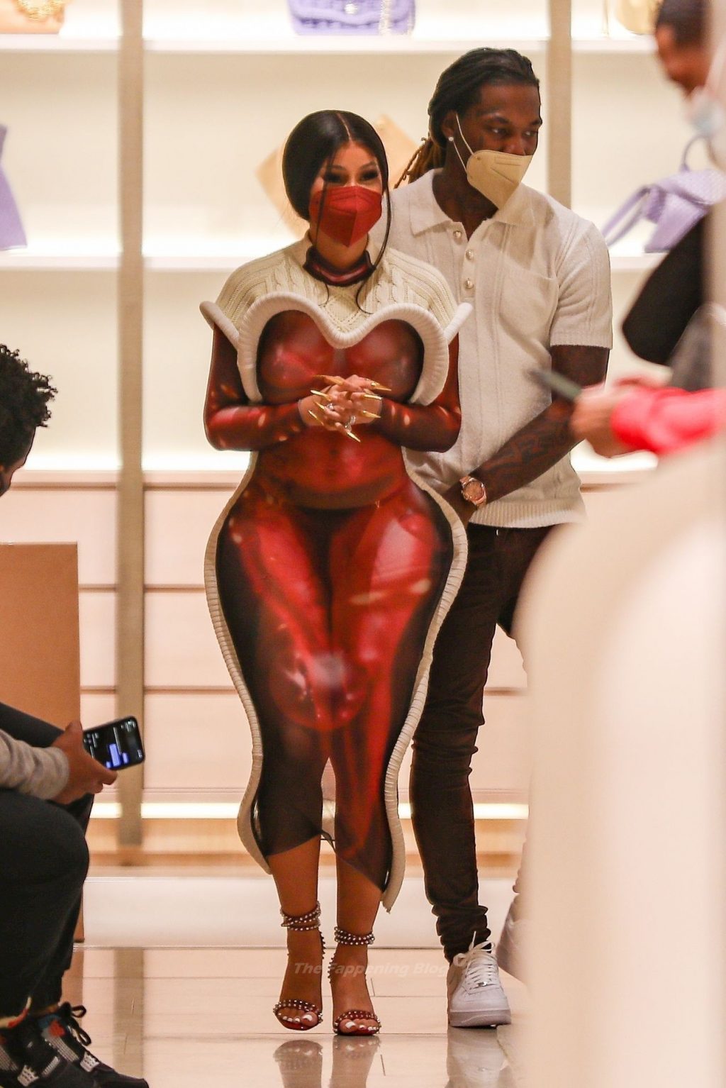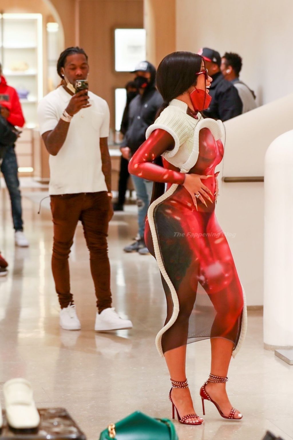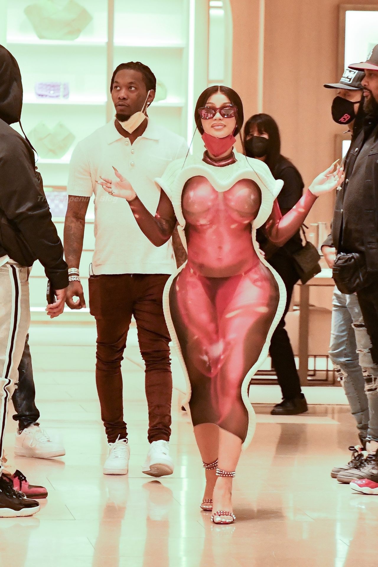 La star du Fappening Cardi B et Offset semblent être de très bonne humeur lors de leurs achats chez Bottega Veneta à Beverly Hills, le 22/01/2021.