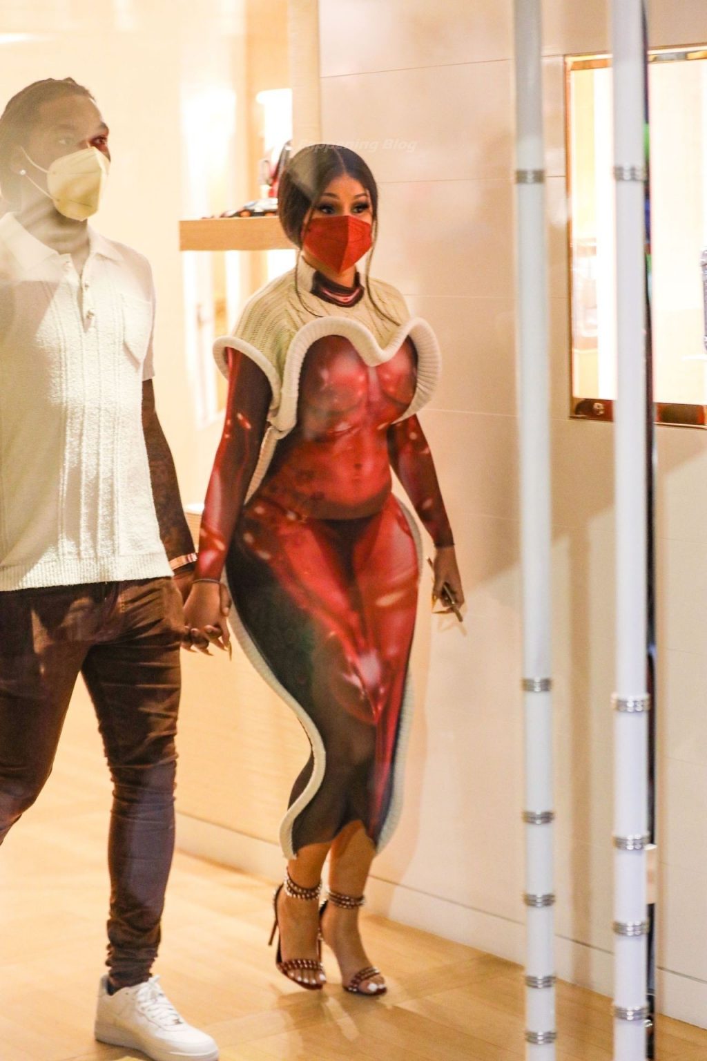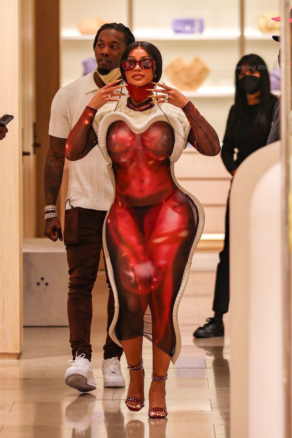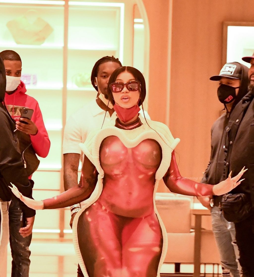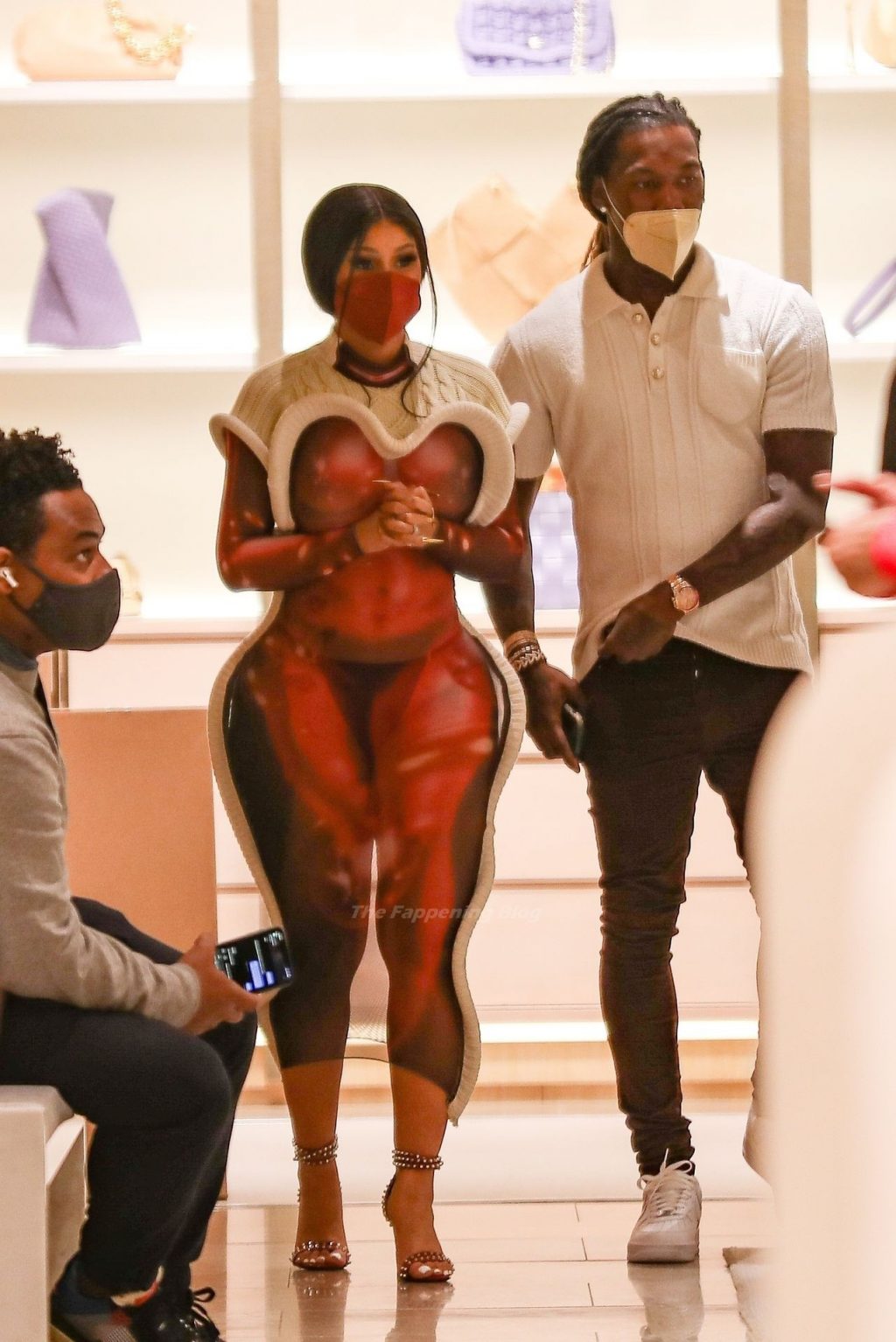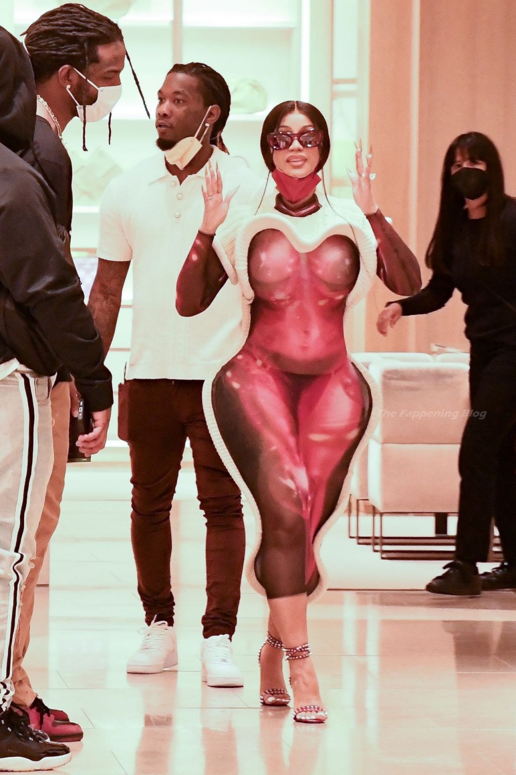 La star du Fappening Cardi B et Offset semblent être de très bonne humeur lors de leurs achats chez Bottega Veneta à Beverly Hills, le 22/01/2021.