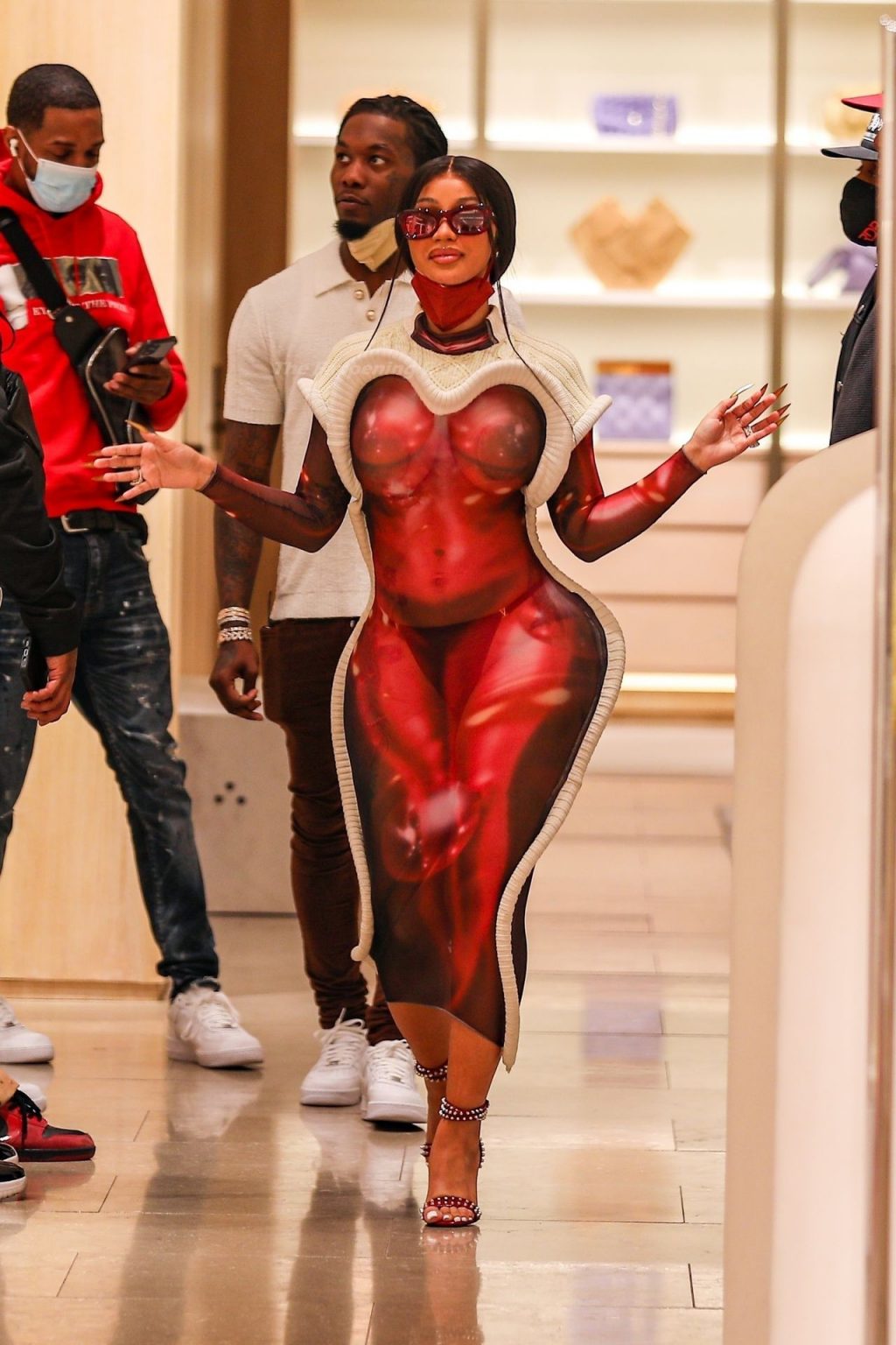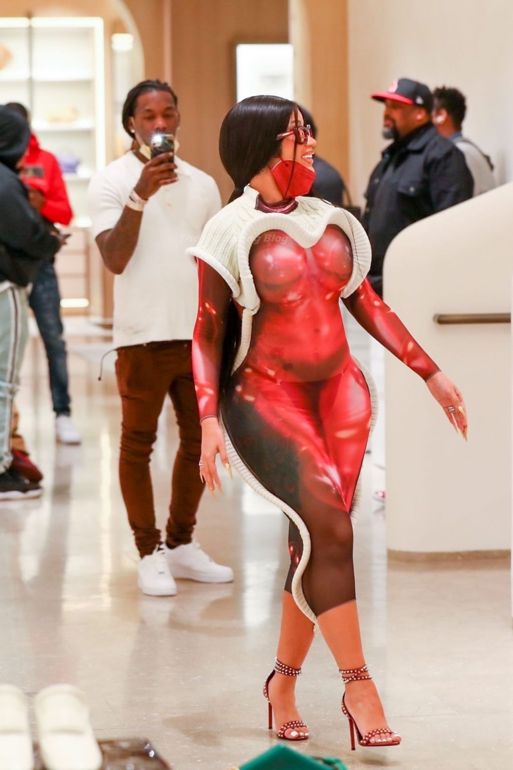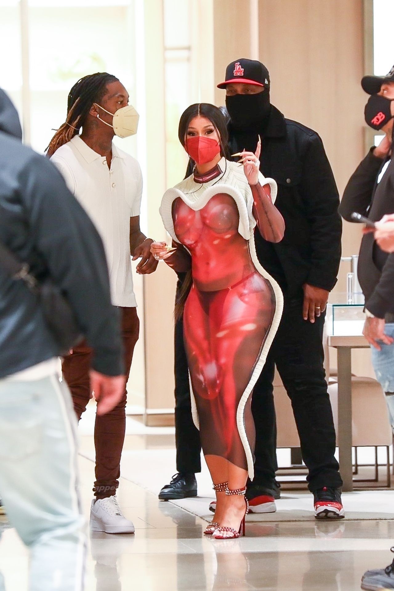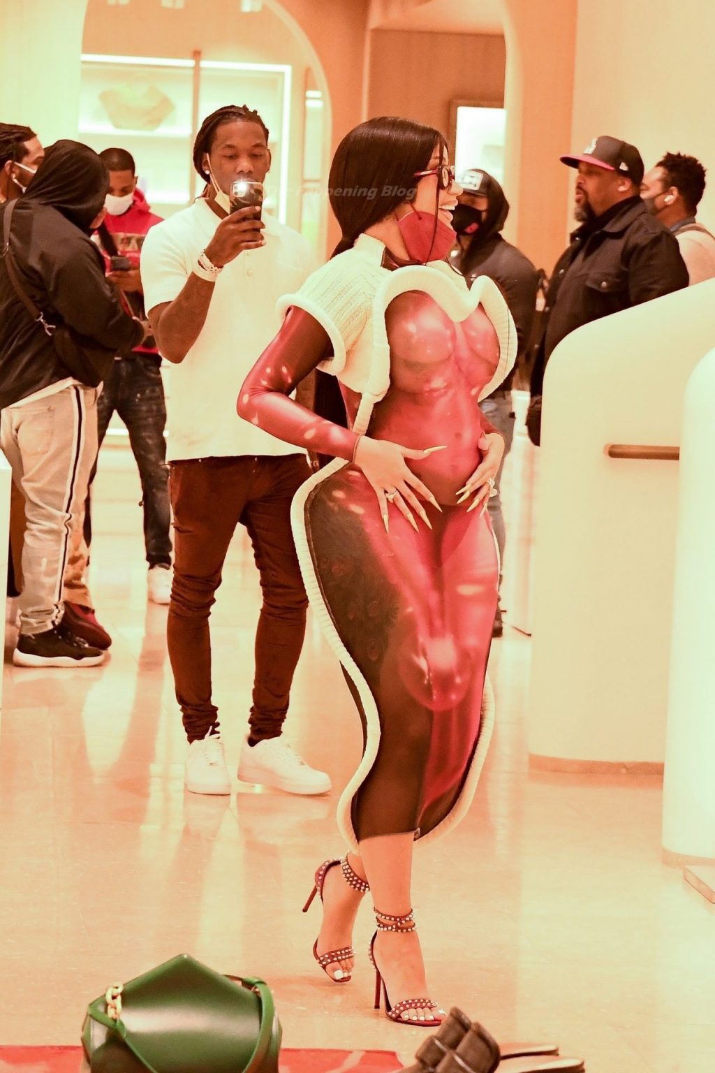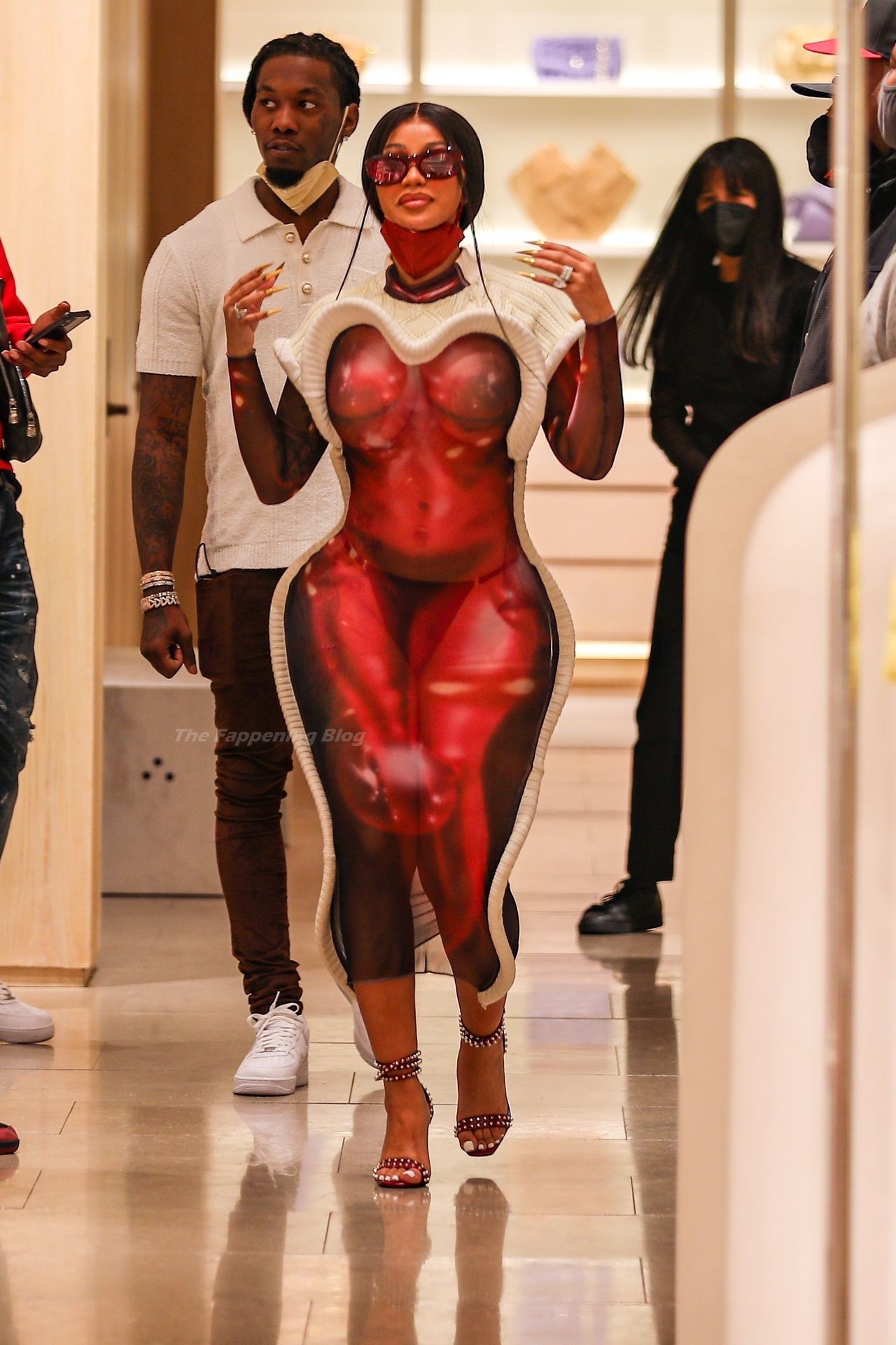 La star du Fappening Cardi B et Offset semblent être de très bonne humeur lors de leurs achats chez Bottega Veneta à Beverly Hills, le 22/01/2021.