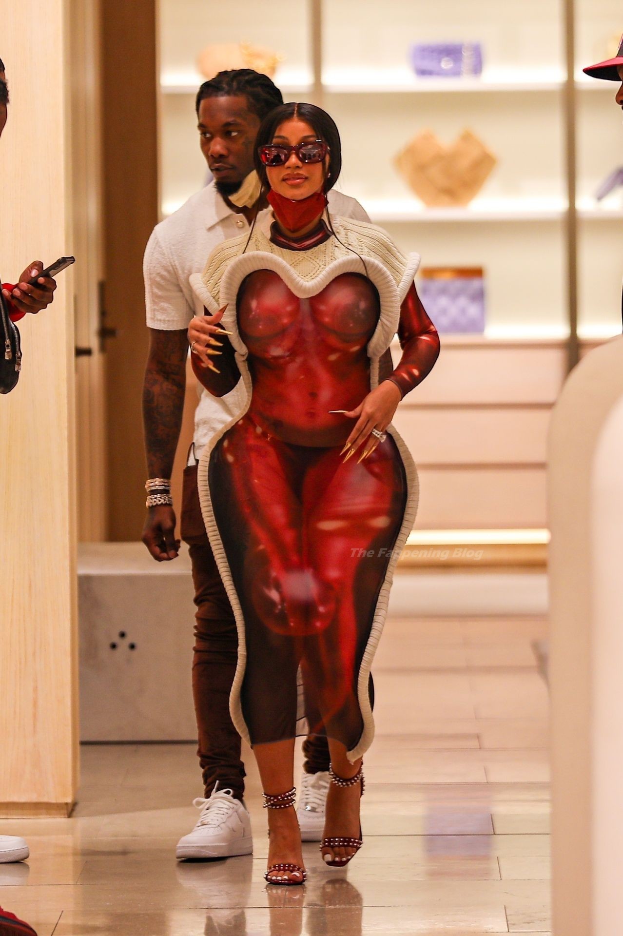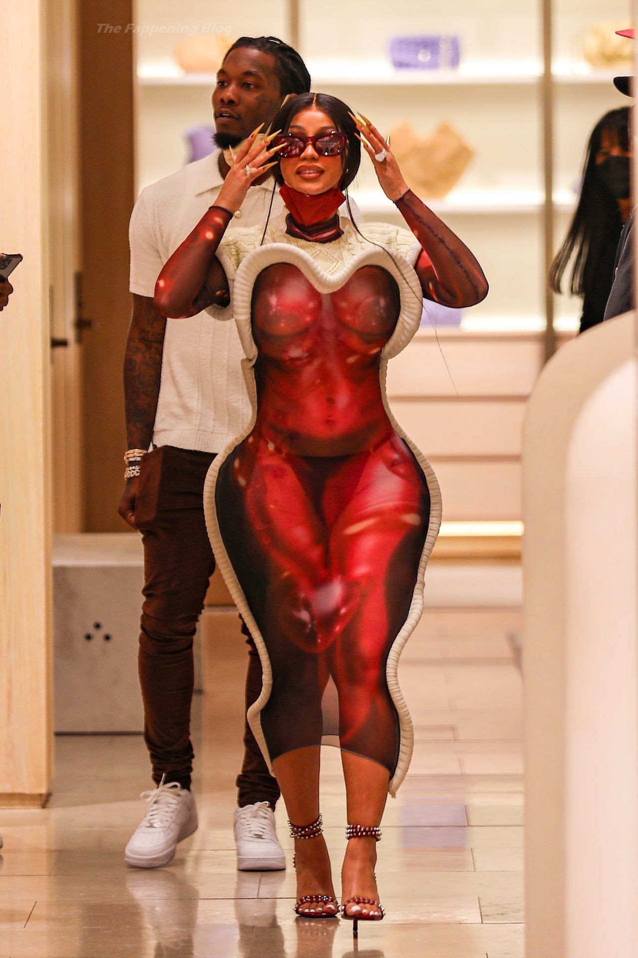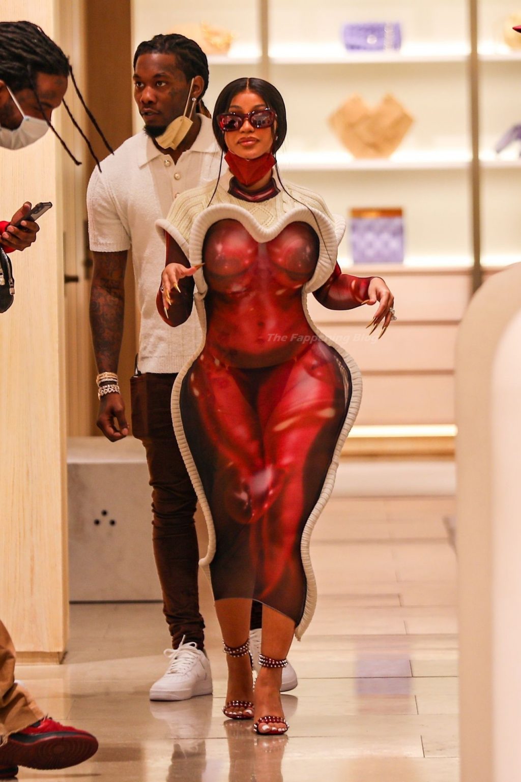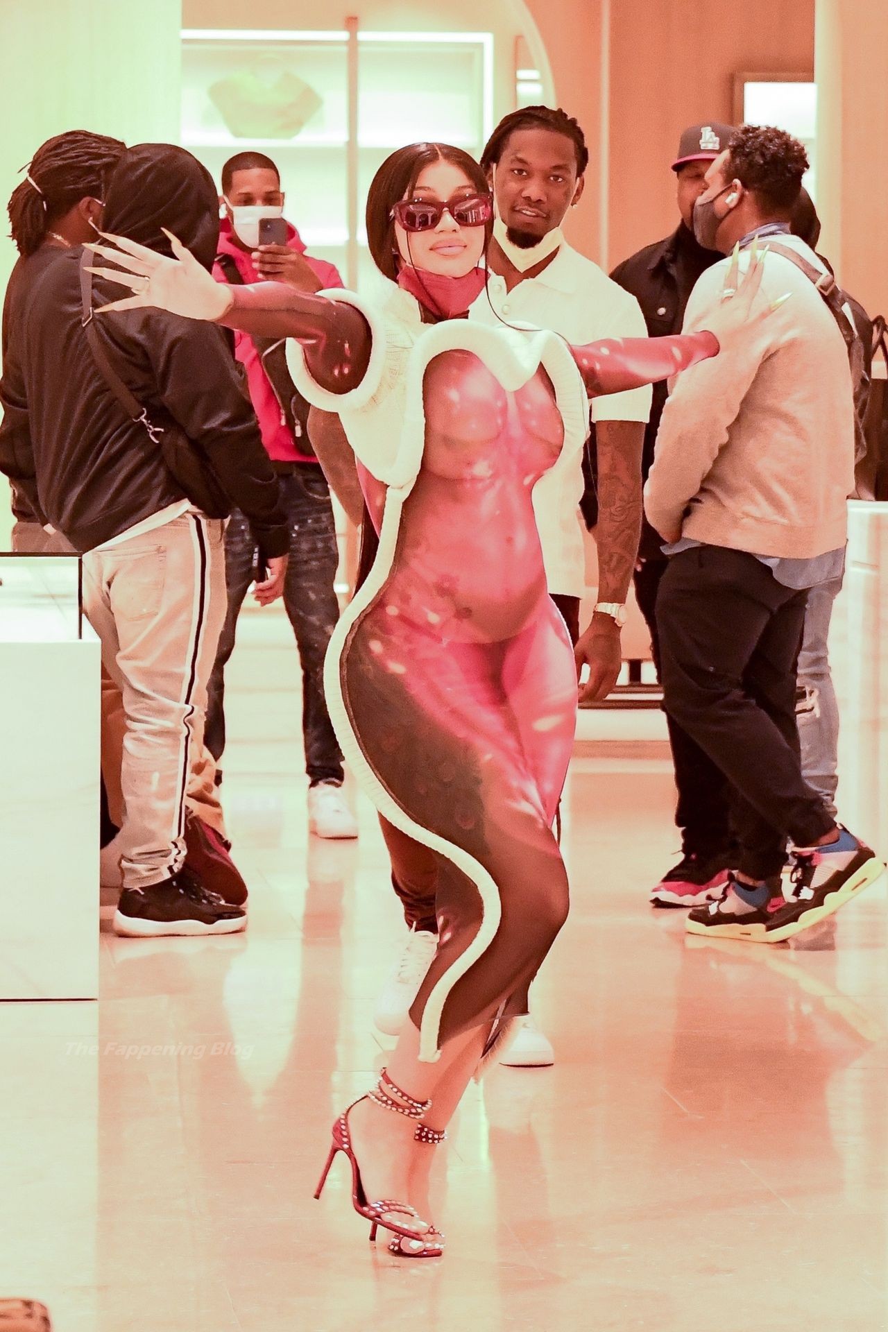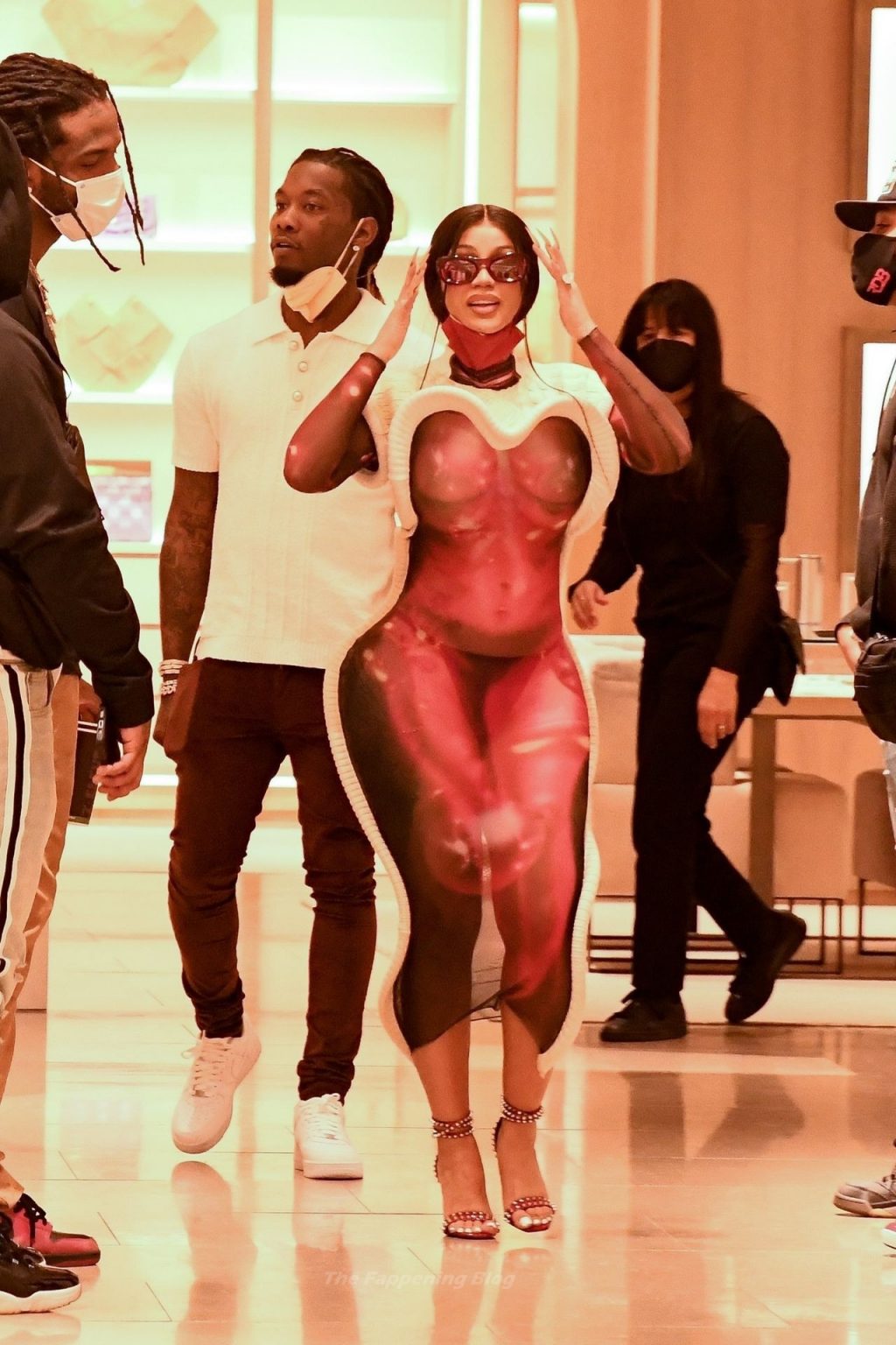 La star du Fappening Cardi B et Offset semblent être de très bonne humeur lors de leurs achats chez Bottega Veneta à Beverly Hills, le 22/01/2021.