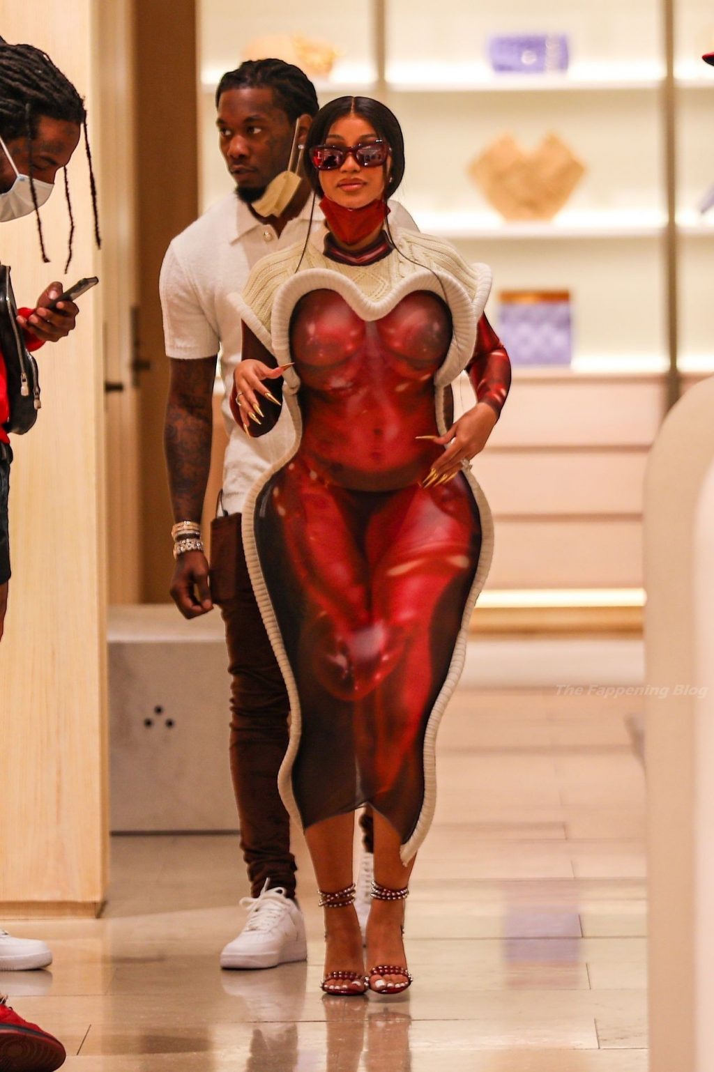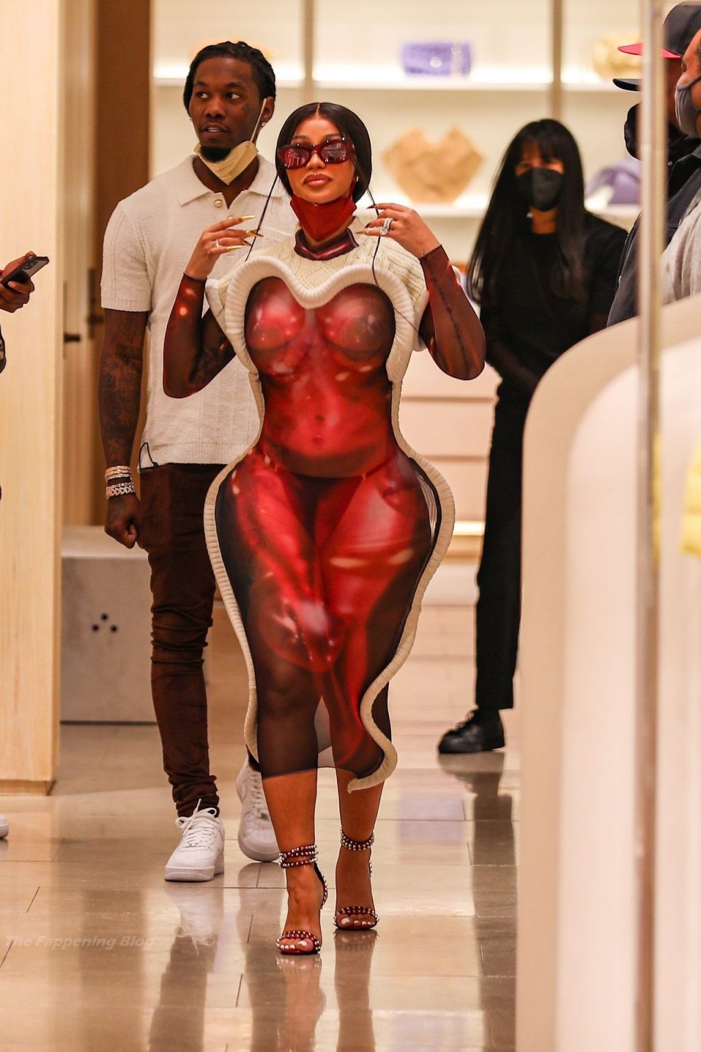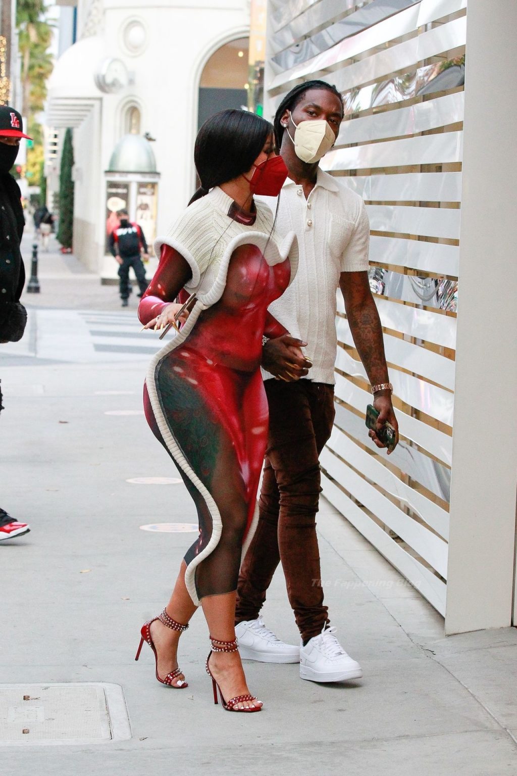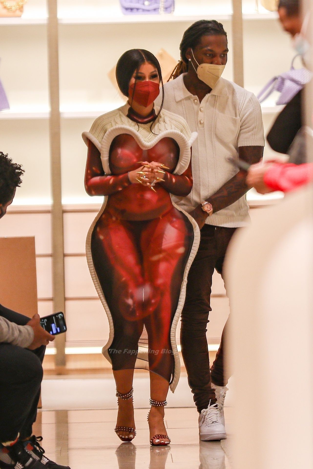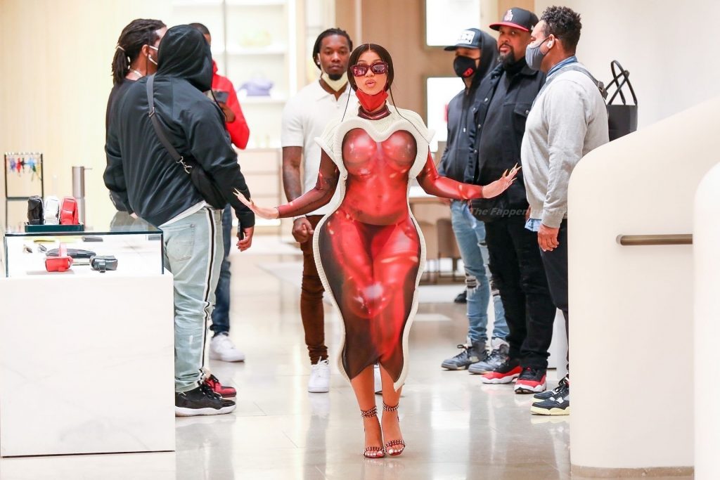 La star du Fappening Cardi B et Offset semblent être de très bonne humeur lors de leurs achats chez Bottega Veneta à Beverly Hills, le 22/01/2021.