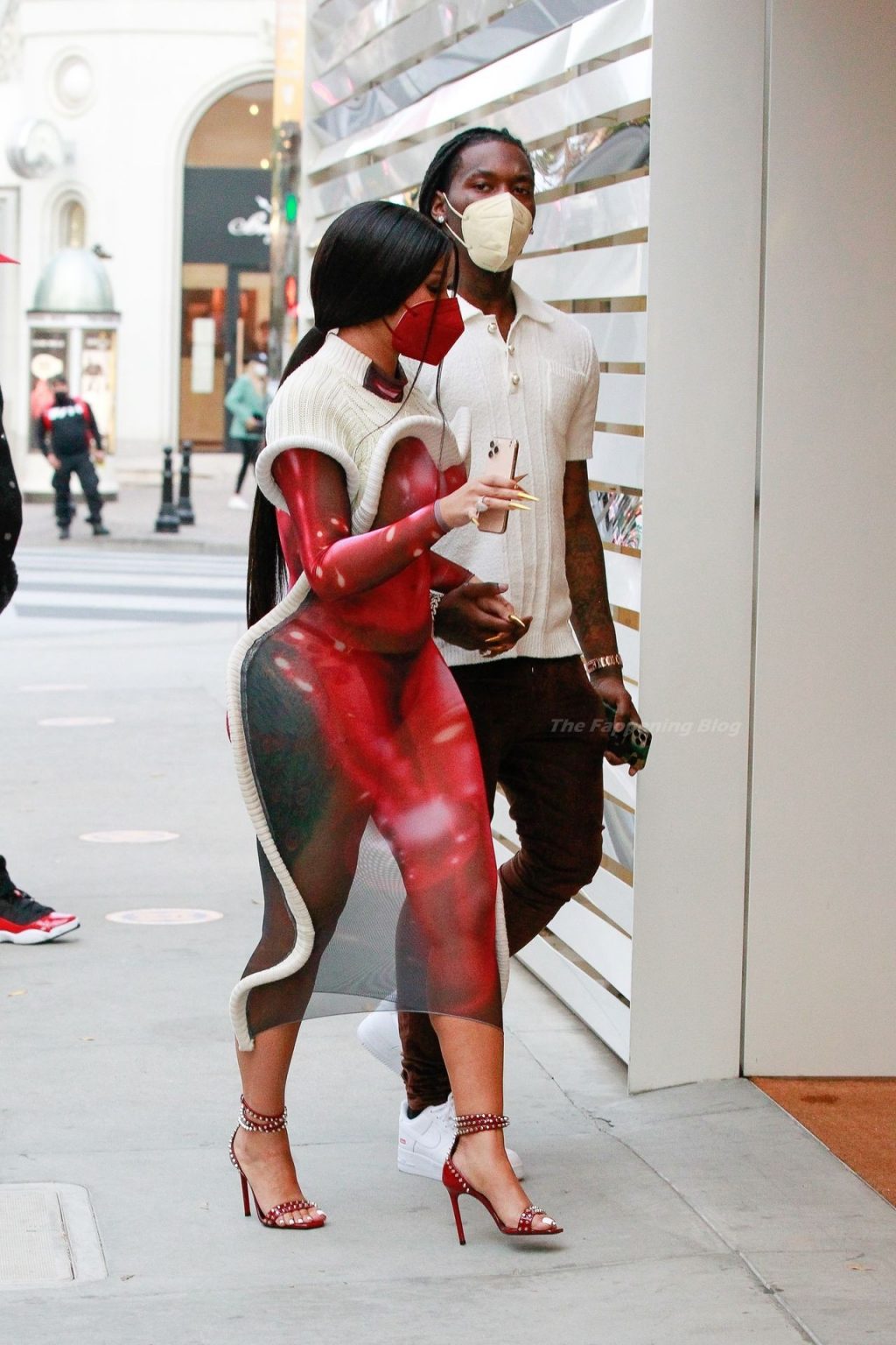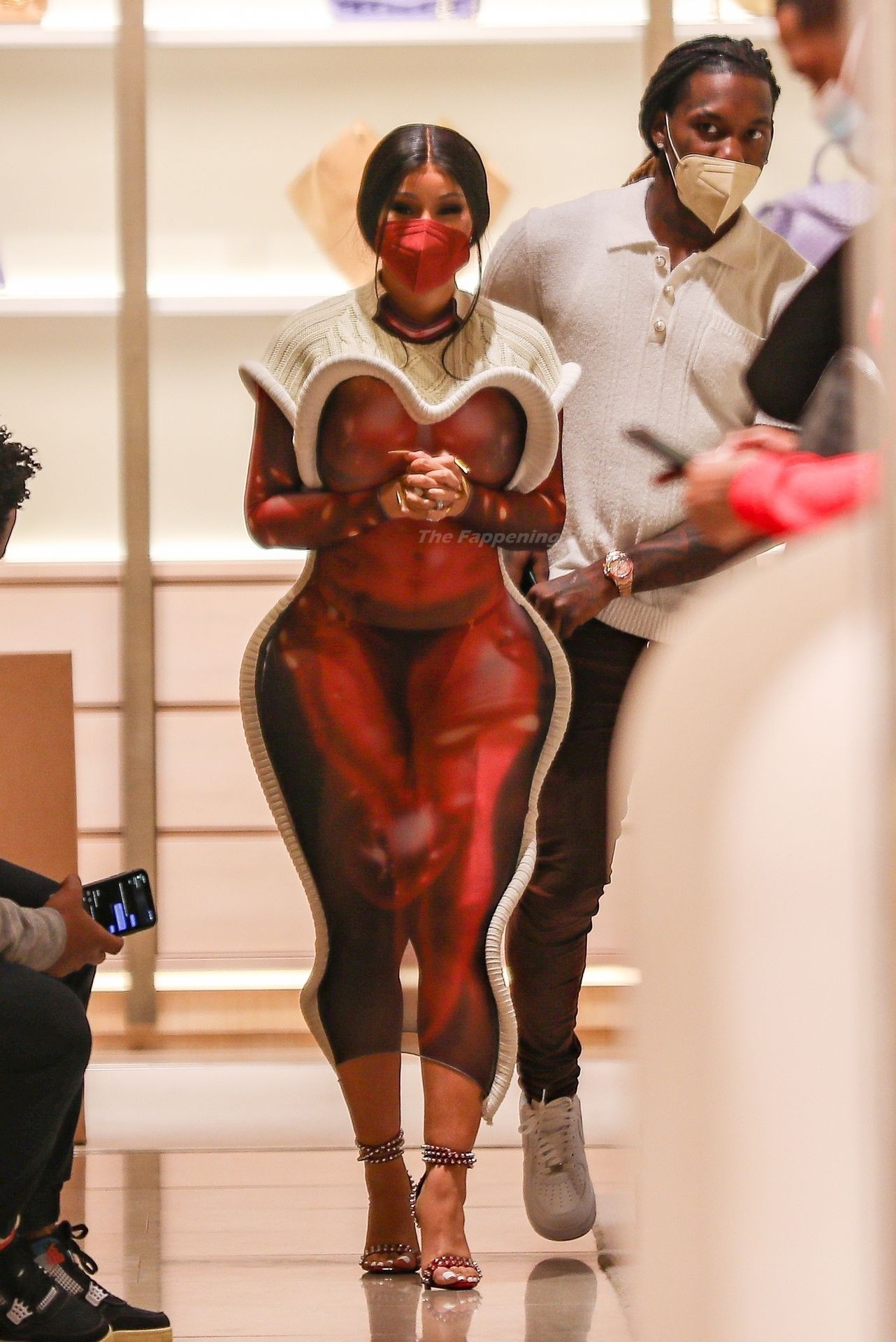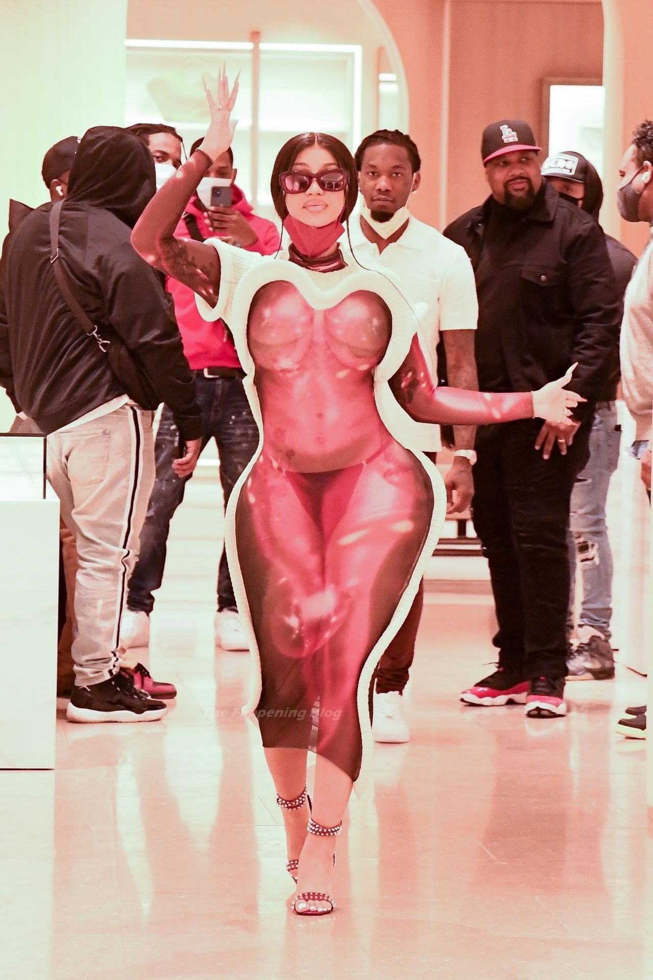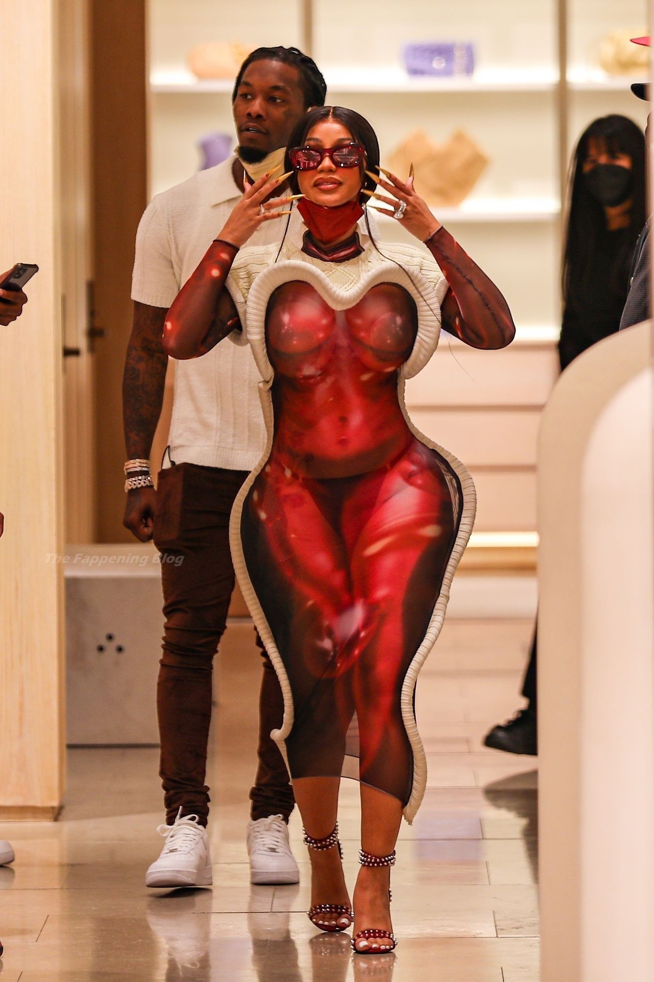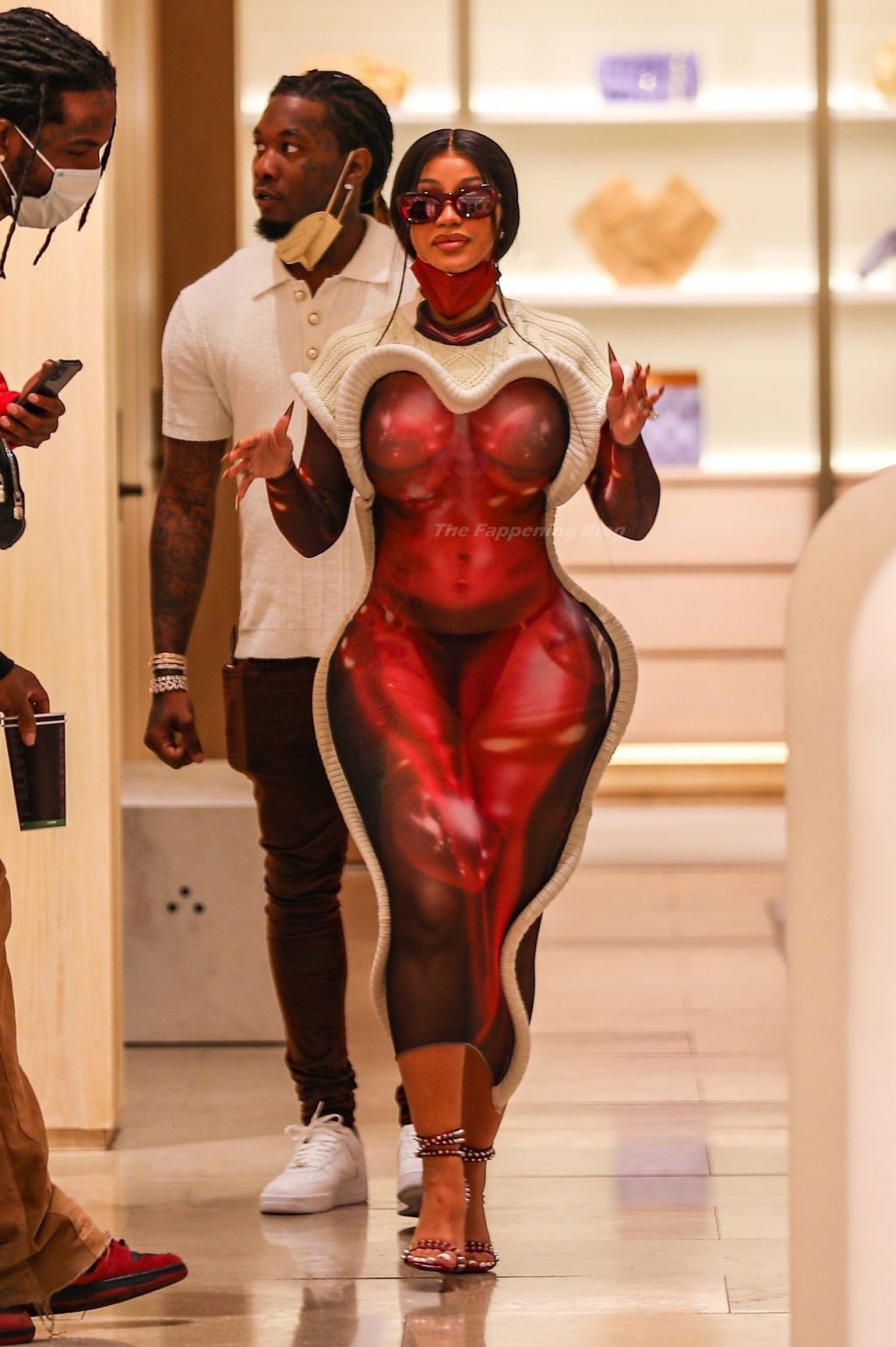 La star du Fappening Cardi B et Offset semblent être de très bonne humeur lors de leurs achats chez Bottega Veneta à Beverly Hills, le 22/01/2021.