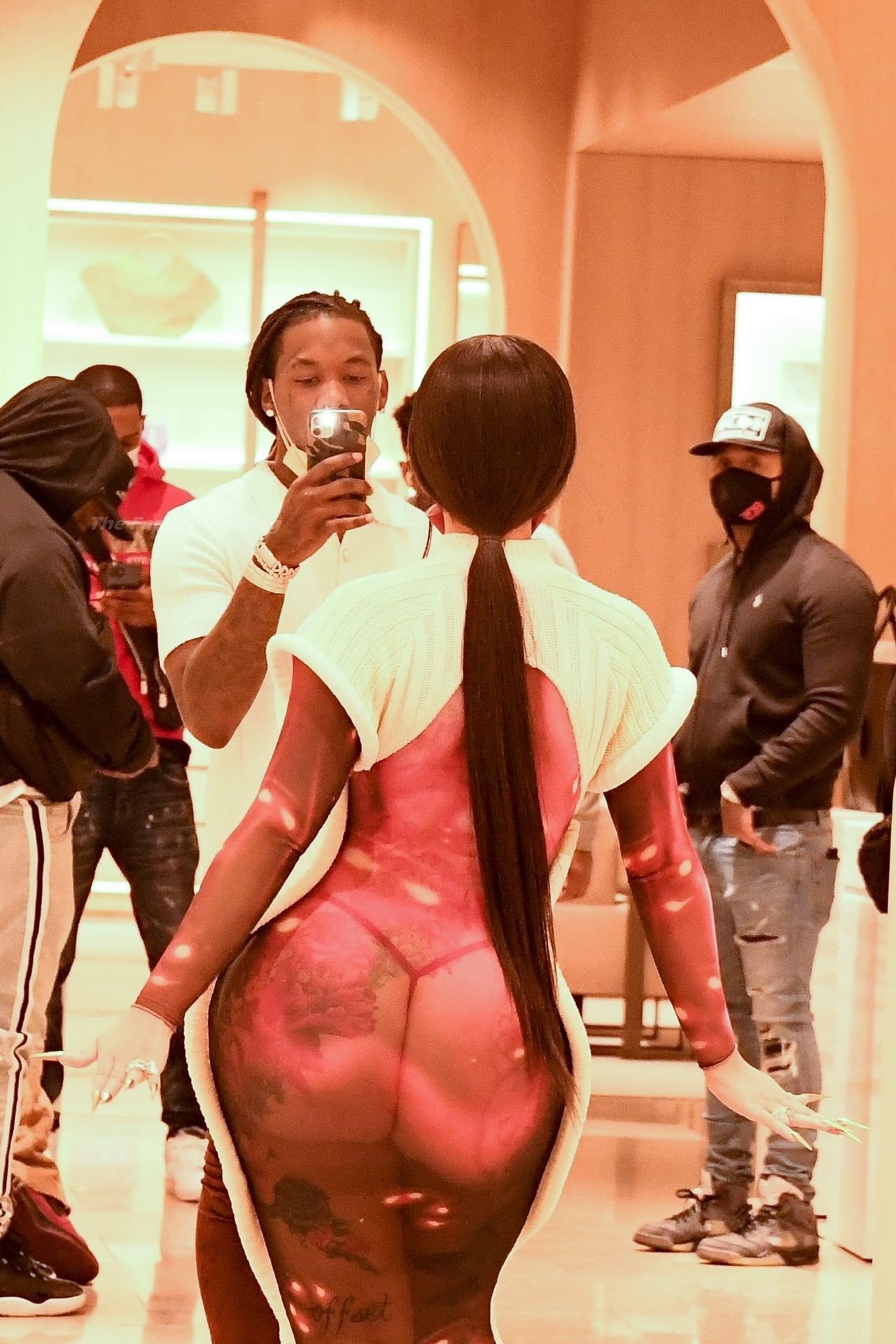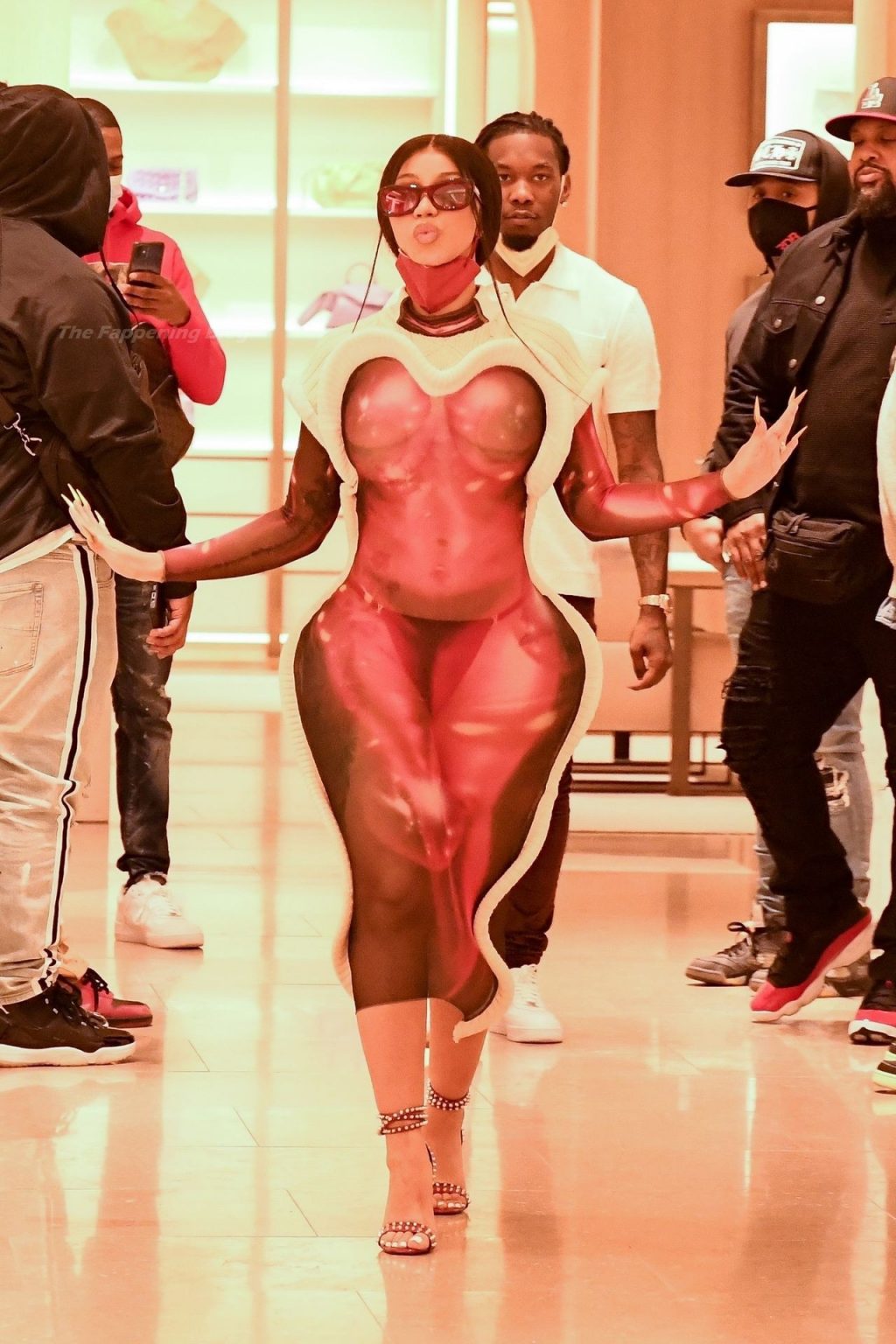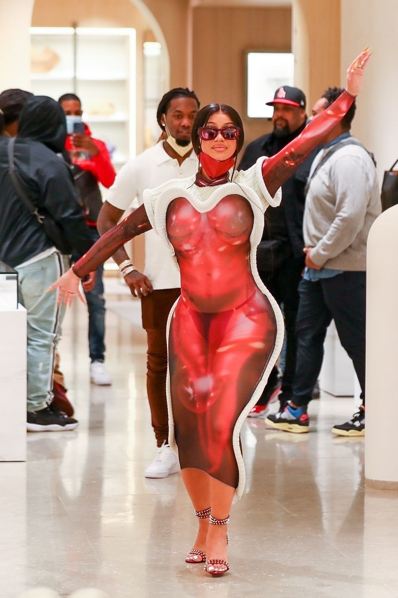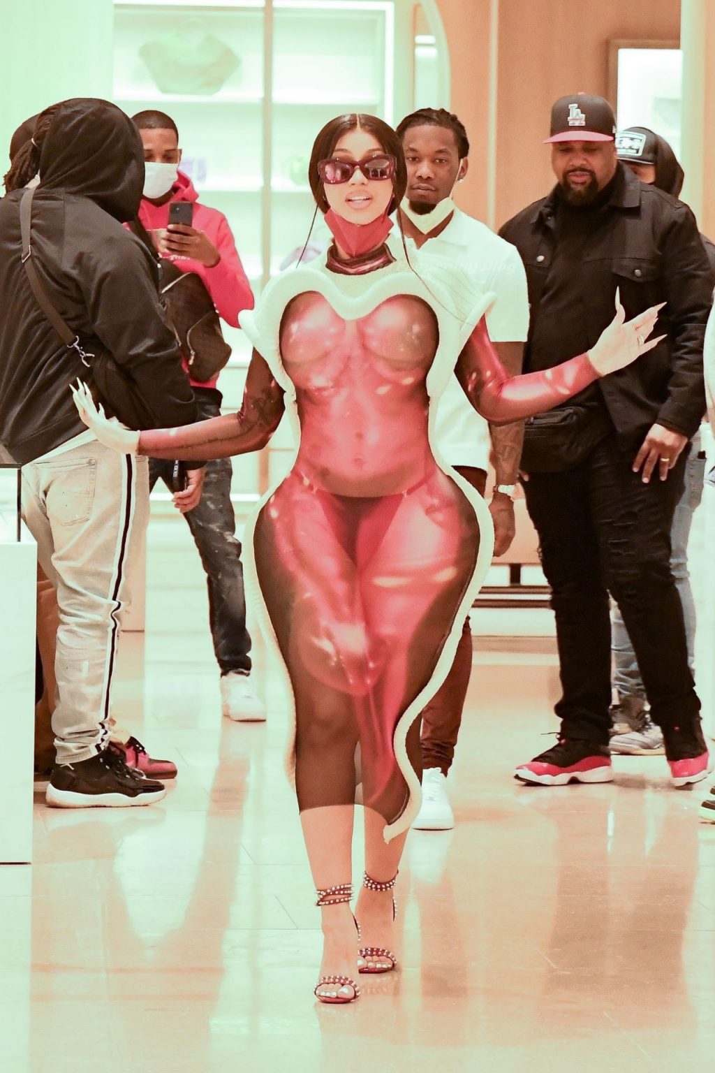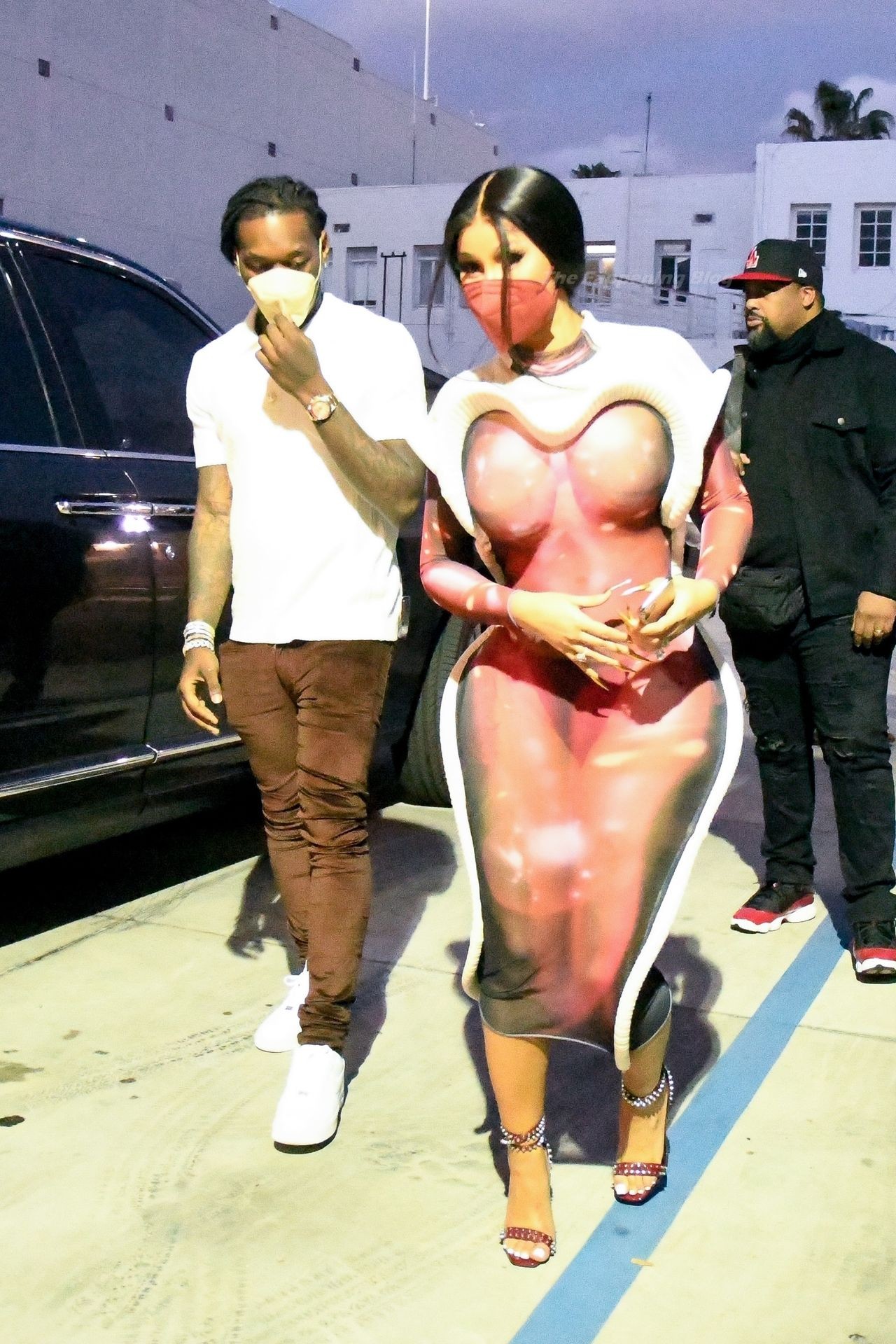 La star du Fappening Cardi B et Offset semblent être de très bonne humeur lors de leurs achats chez Bottega Veneta à Beverly Hills, le 22/01/2021.