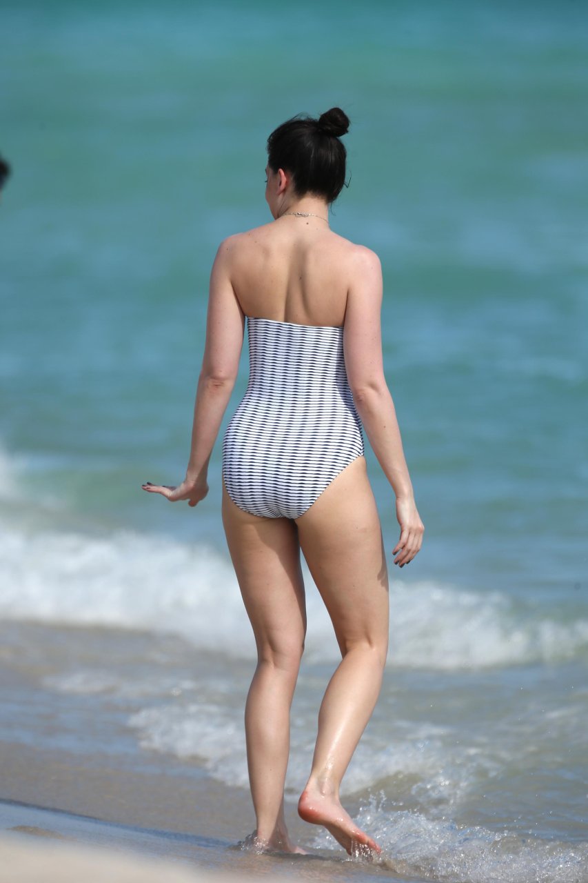 Daisy Lowe porte un maillot de bain grand-mère sur la plage à Miami, 23/12/16. Daisy Lowe est un mannequin anglais. Âge : 27 ans (27 janvier 1989).
