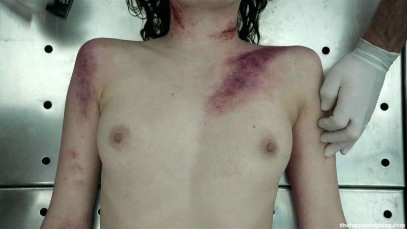 There is Daisy Ridley’s topless scene lying on her back in a morgue! As a result, we have her naked small tits in close view while a couple of medical examiners are looking her over and focus on some marks on the neck!