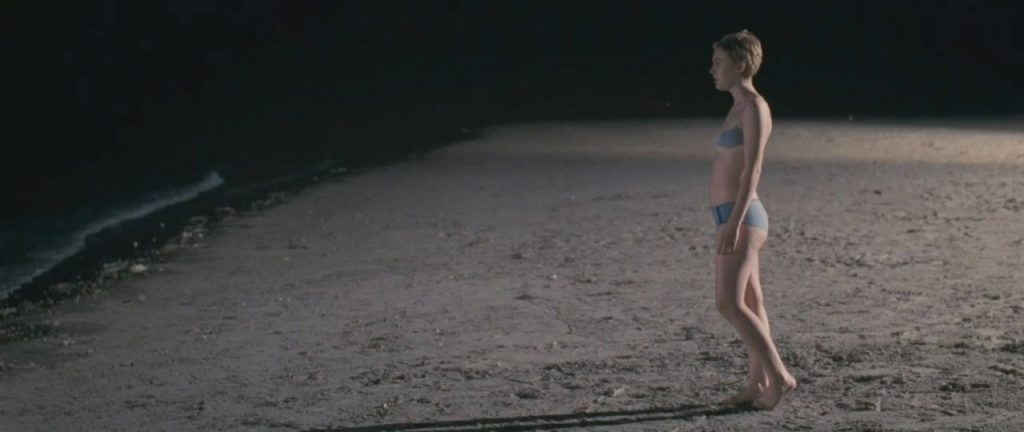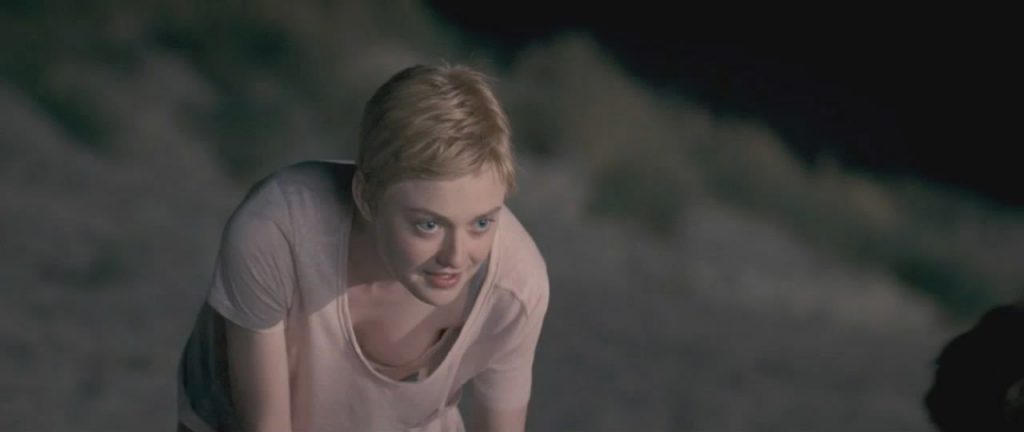 Our next scene is from the Now Is Good movie. Dakota Fanning is undressing on a beach at night, stripping down to her bra and panties. Dakota’s tits are bouncing in her bra.