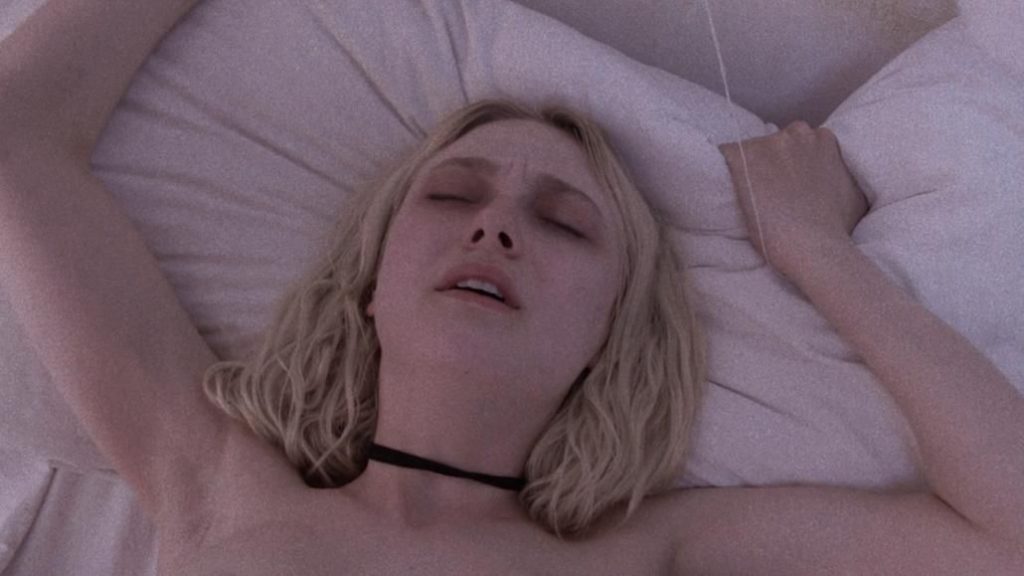 Our next scene of Sweetness is in the Belly movie. Dakota Fanning is climbing into a guy’s lap and kissing him, lifting her dress off and showing some boobs as she is having sex.