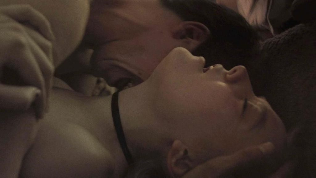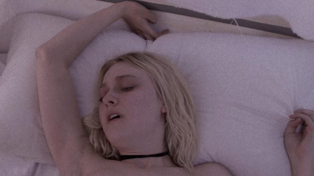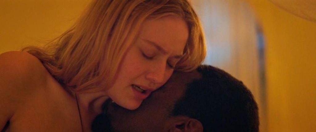 In the next short sex scene, we see Dakota Fanning on her back, breathing hard as she has sex, topless and revealing the top of her tits.